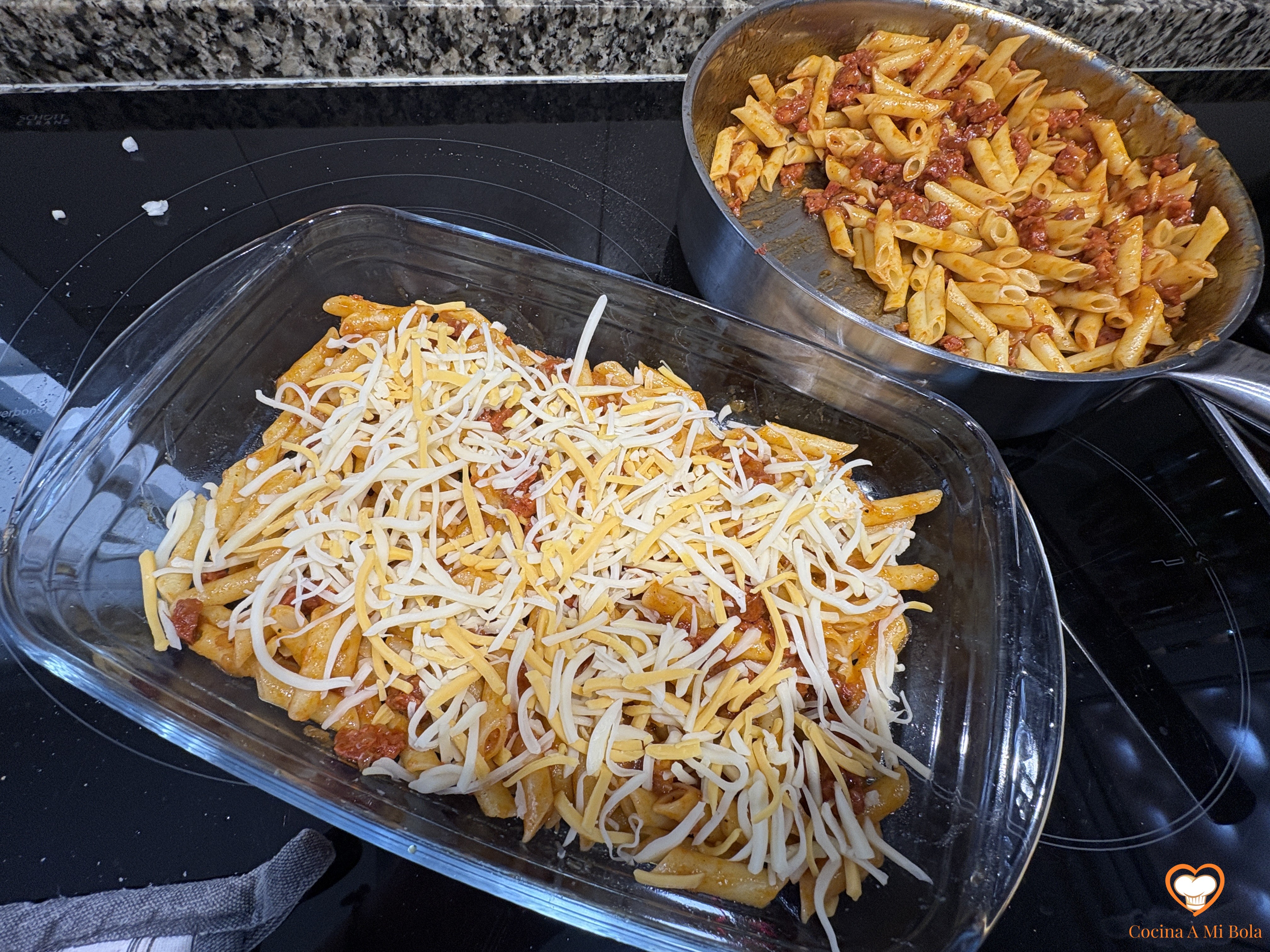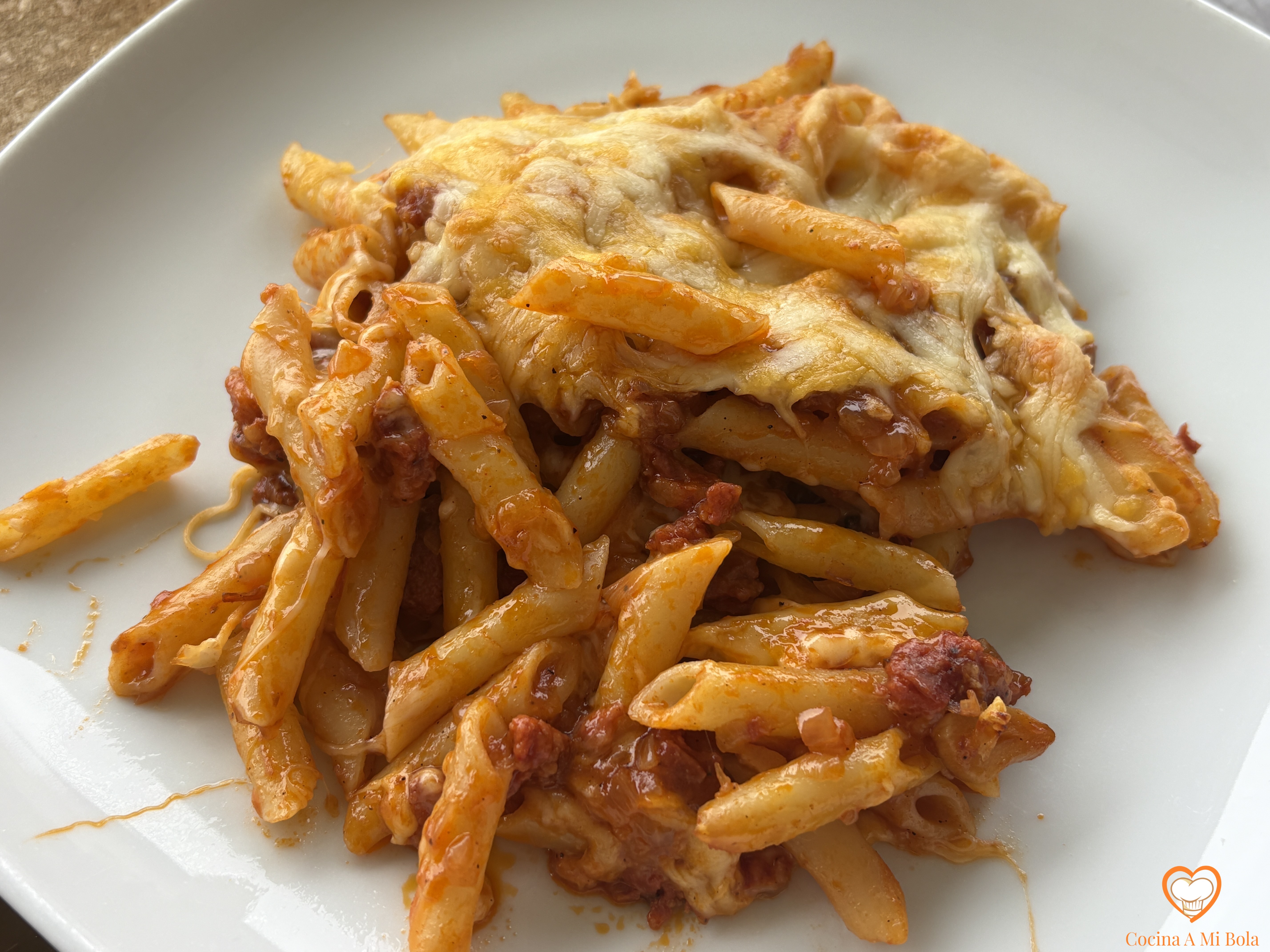 MACARRONES GRATINADOS con chorizo