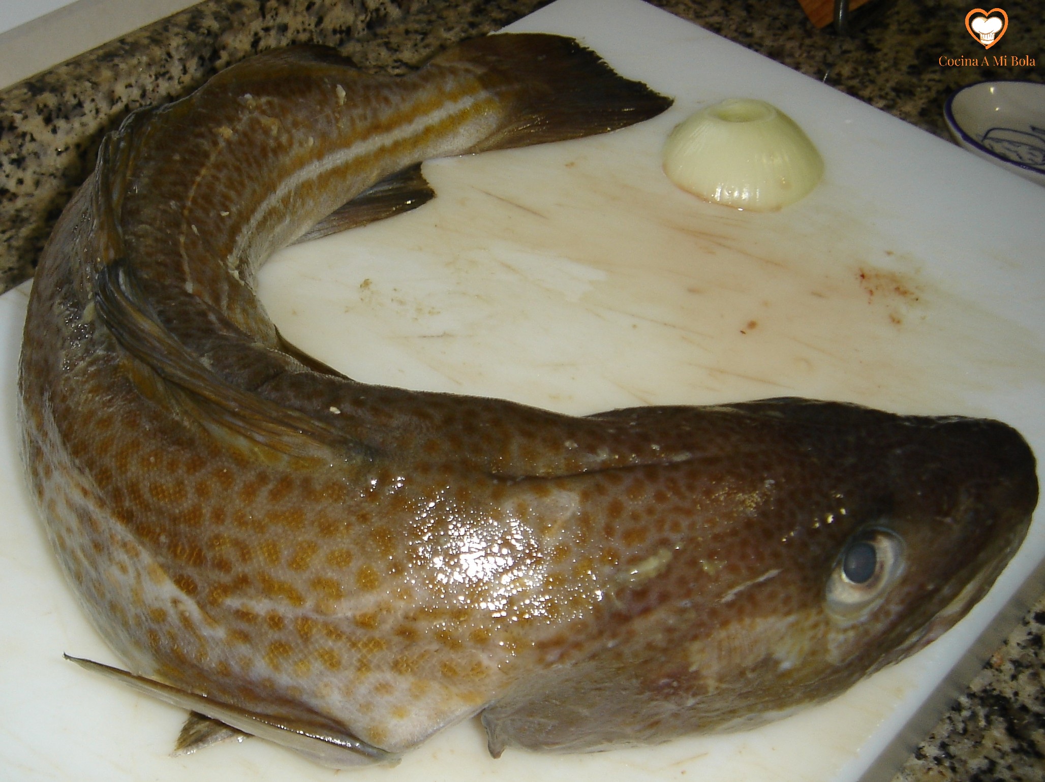 INGREDIENTES: Para 4/6 personas: 1 bacalao de 3 kg, 2 cebollas, aceite de oliva virgen extra, 1 lata de cerveza de 33 cl, laurel, pimienta negra molida y sal.
