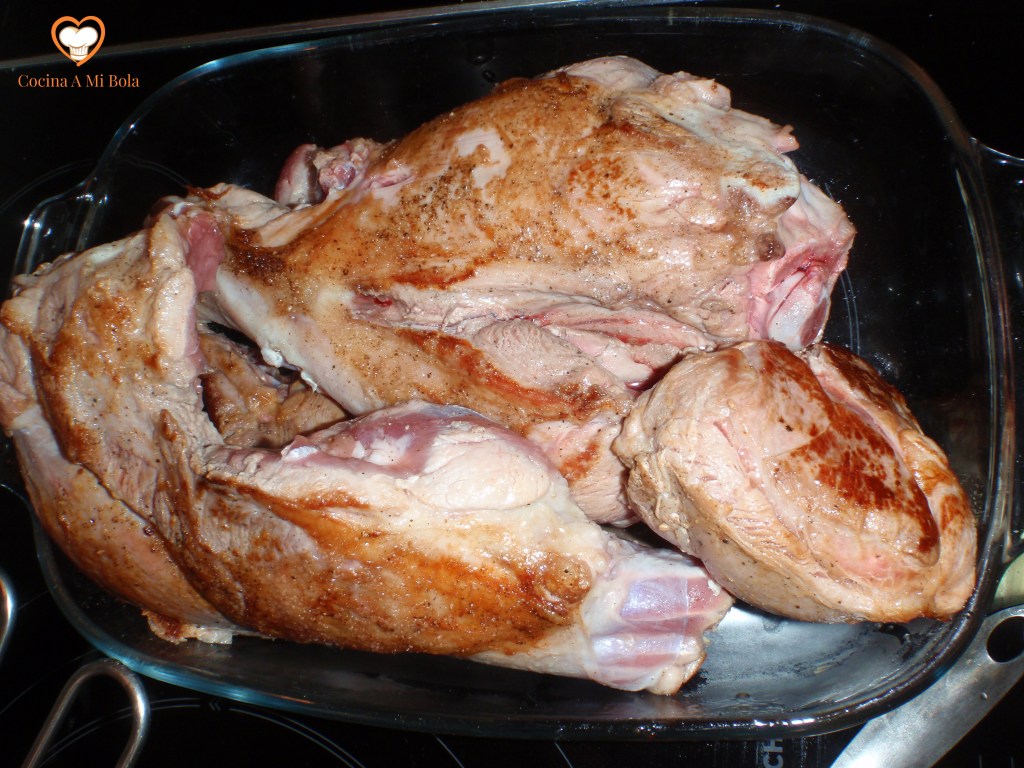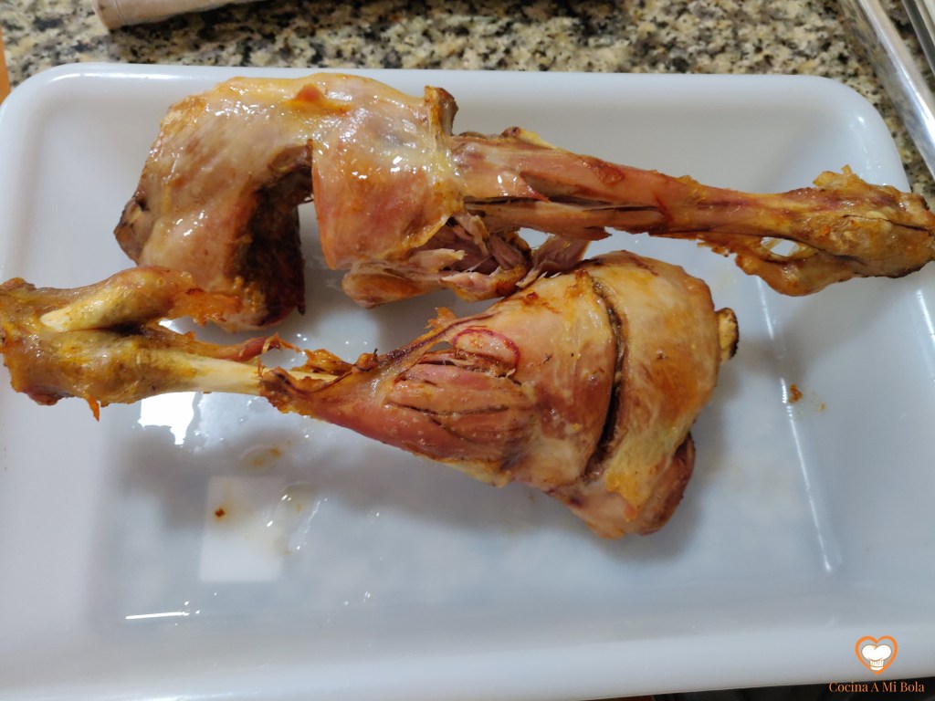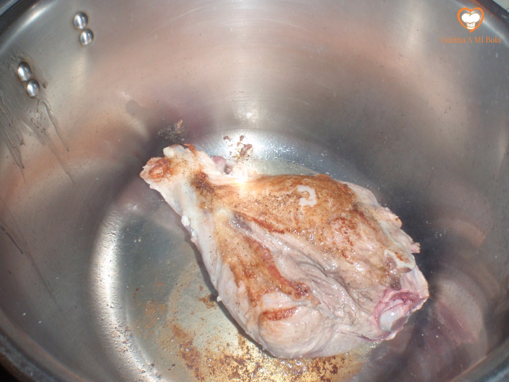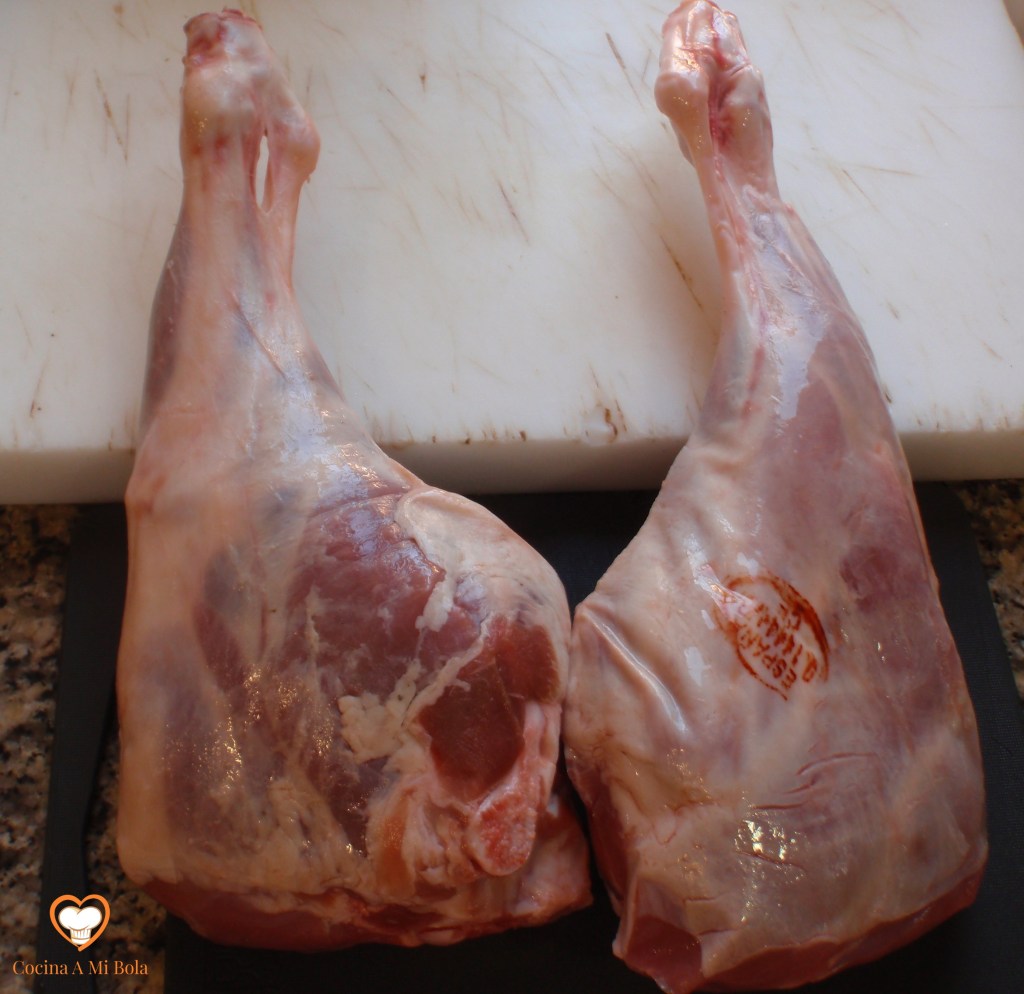 TERCERO.- Vamos con el cordero. Puedes hacerlo al horno, aunque para esta receta me gusta más la olla express. Tan sólo tienes que hacerle un buen tajo en la molla principal hasta alcanzar el hueso y si no te cupieran en la olla, corta el muñón por su coyuntura.