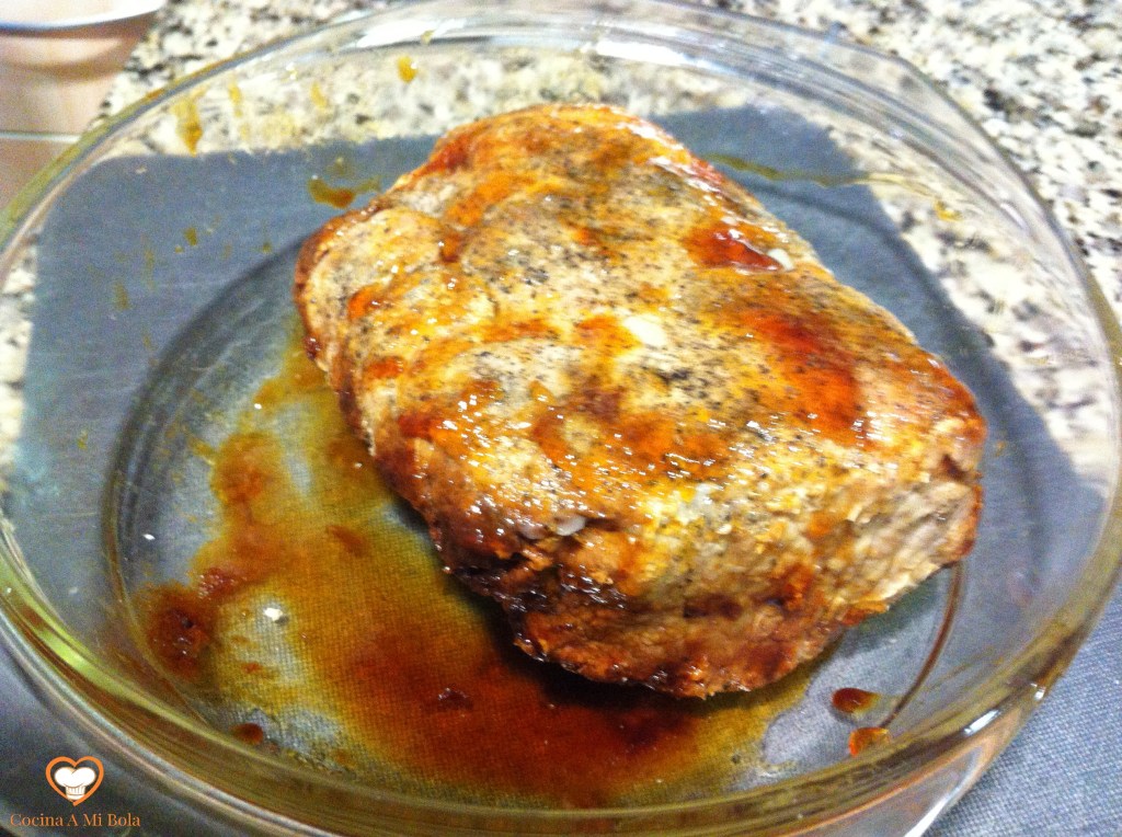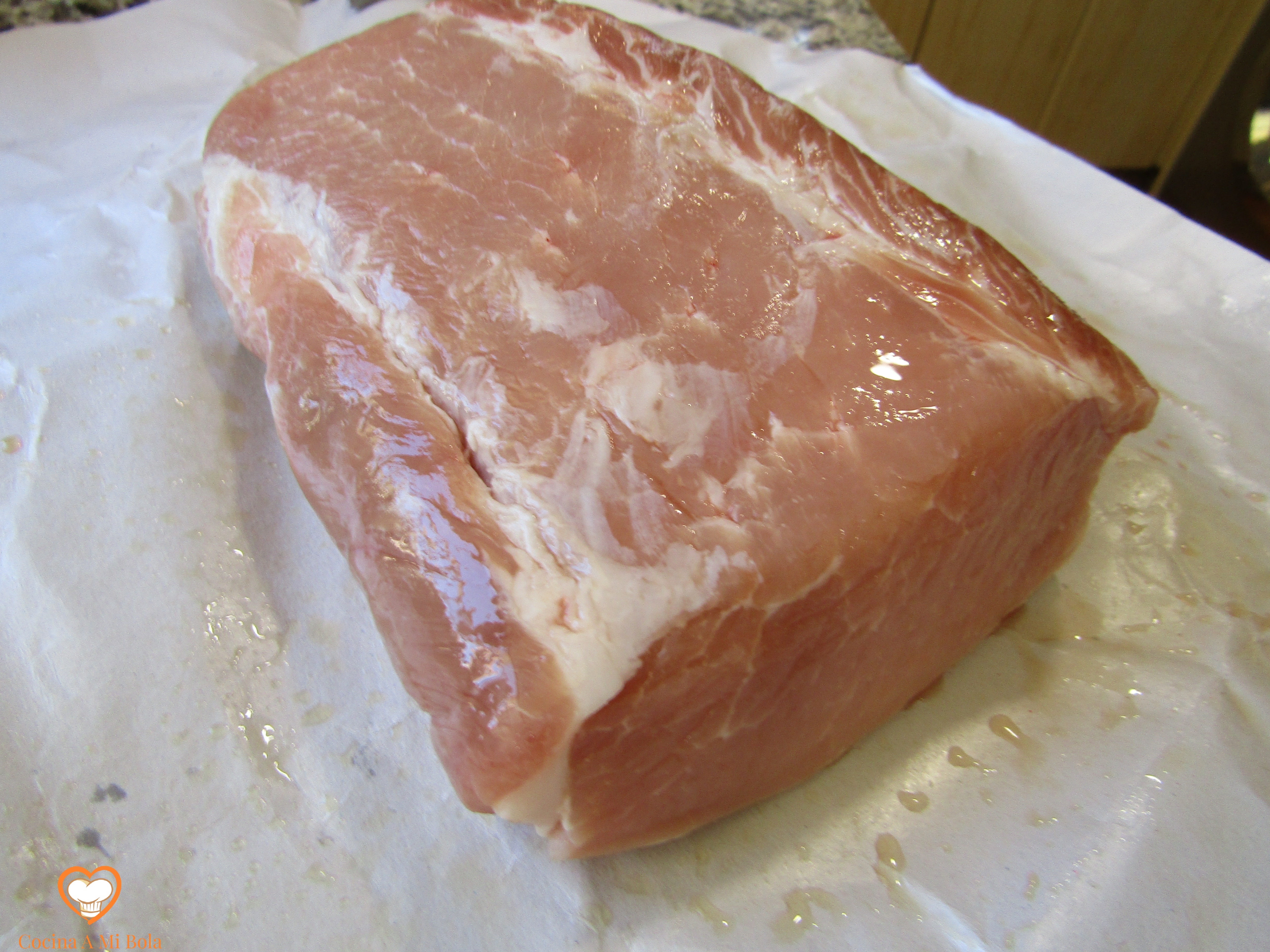 SEGUNDO.- Embadurnarlo generosamente con sal y pimienta negra molida. Frotar bien con las manos con un poco de aceite de oliva para que penetre lo más posible y quede adherido todo a la carne. Me refiero al exterior de la pieza. Si lo que tenemos es un trozo del lomo, no hagáis esto con los extremos que no son sino el interior ya cortado.