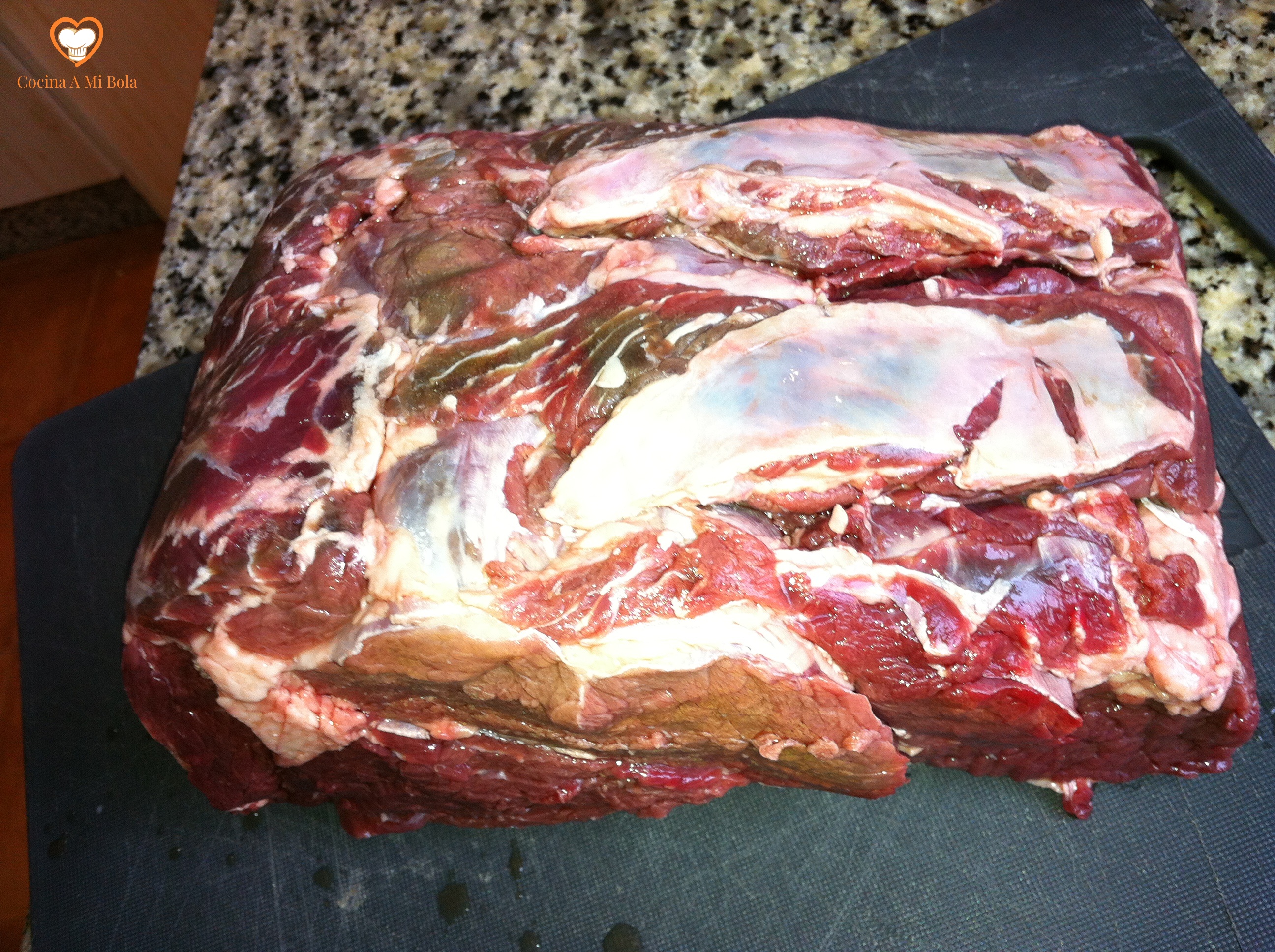 INGREDIENTES: Una pieza de lomo alto de ternera de unos 2 kg aprox., 4 cebollas, 8 dientes de ajo, pimienta negra molida, sal, laurel, aceite de oliva virgen extra, 200 cc de jerez seco, agua.