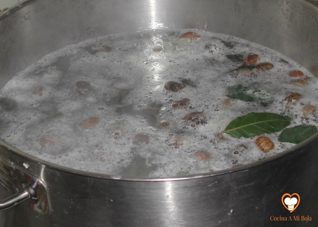 SEGUNDO.-  Se cuecen los caracoles en un recipiente al que añadiremos tres o cuatro puñados de sal y dos hojas de laurel. Habrán de hervir durante diez minutos tras lo cual, se escurren bien, se lavan una vez más si se desea y se reservan.