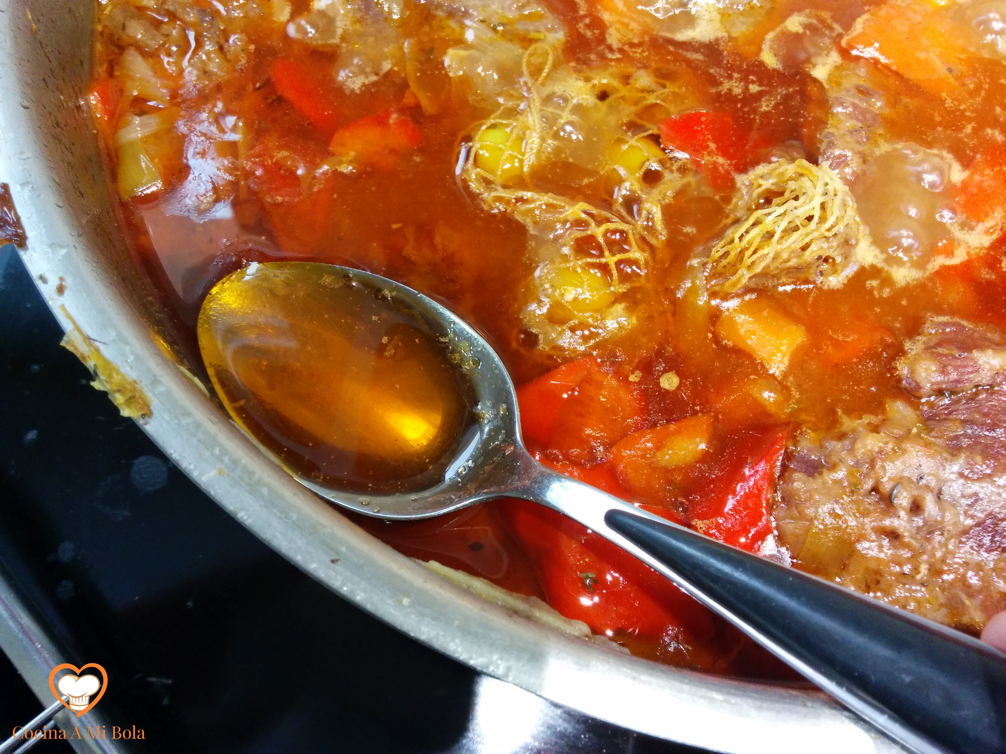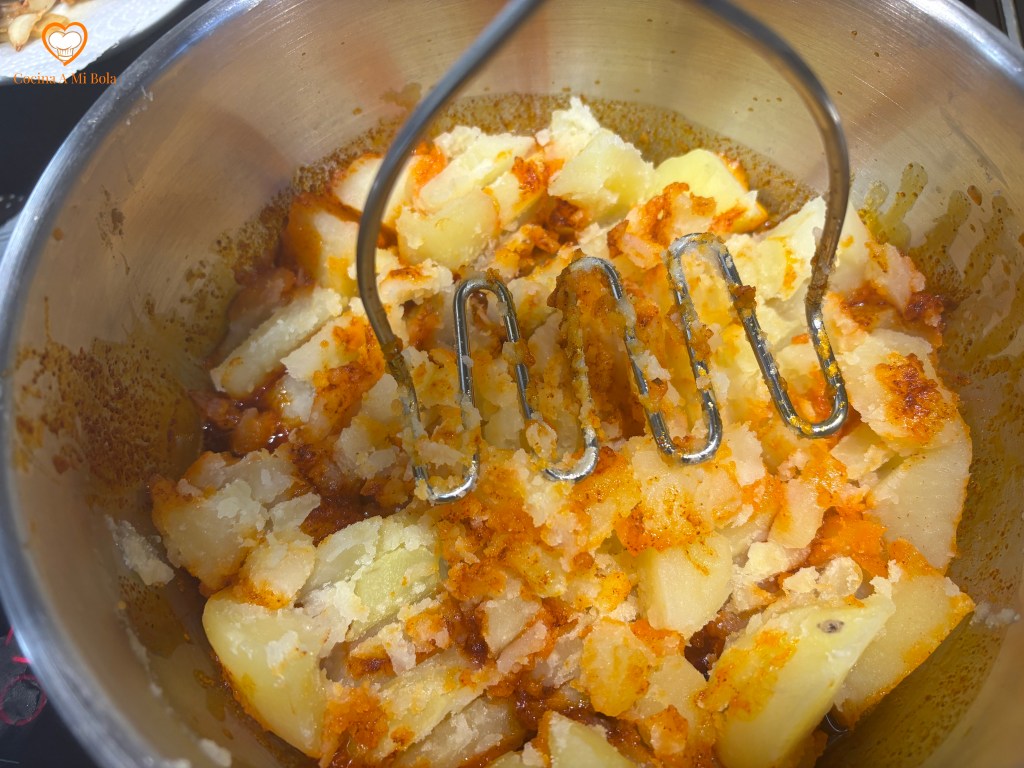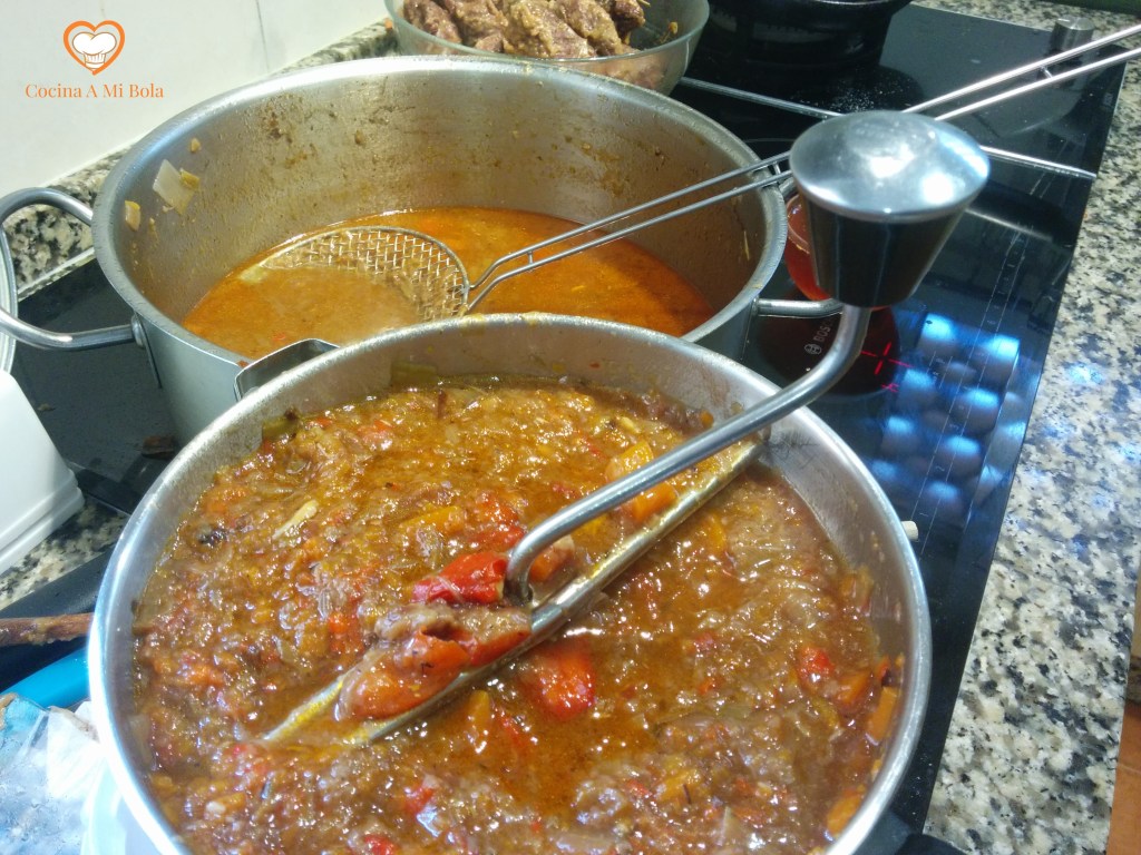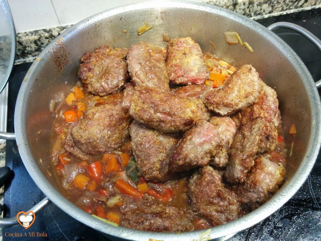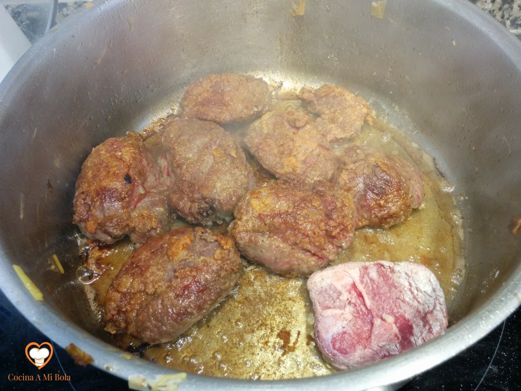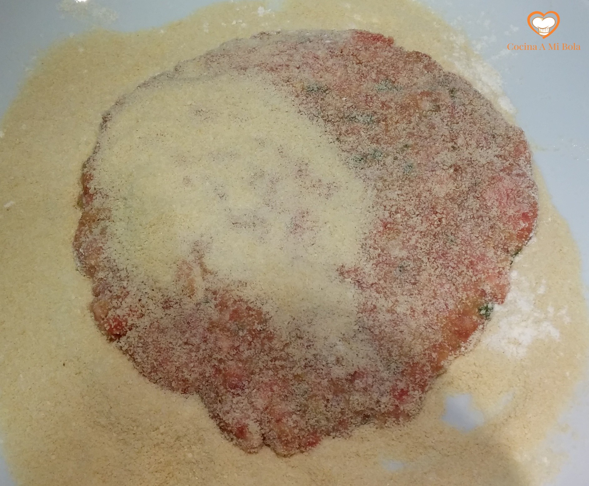 CUARTO.- Dependiendo de si, a pesar del aviso anterior, te ha quedado demasiado blando, puedes corregirlo a base de echar a la carne pan rallado y moverlo bien. Verás como la amalgama se hace más densa; y si siguiera siendo excesivo, pasa toda la carne a un colador y déjalo escurrir una rato.