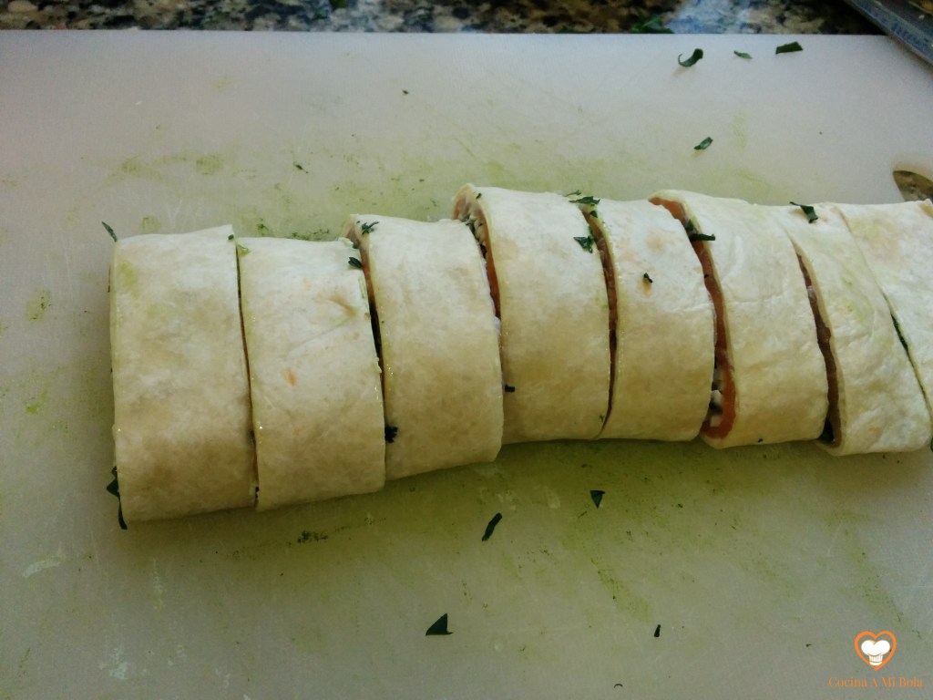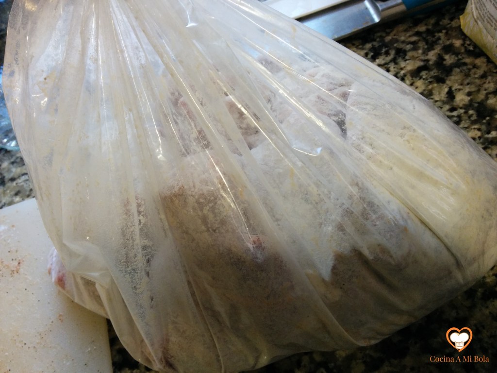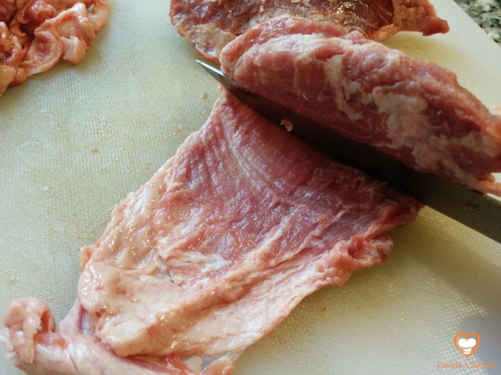SEXTO.- Corta el papel de aluminio de forma que individualicemos cada filete y prepara también un plato con pan rallado.