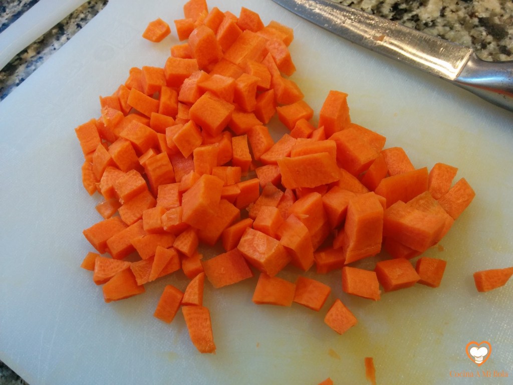 SEGUNDO.- Ahora tomamos cada una de las lonchas de jamón y las vamos cortando en trozos pequeños, que ponemos en un bol.