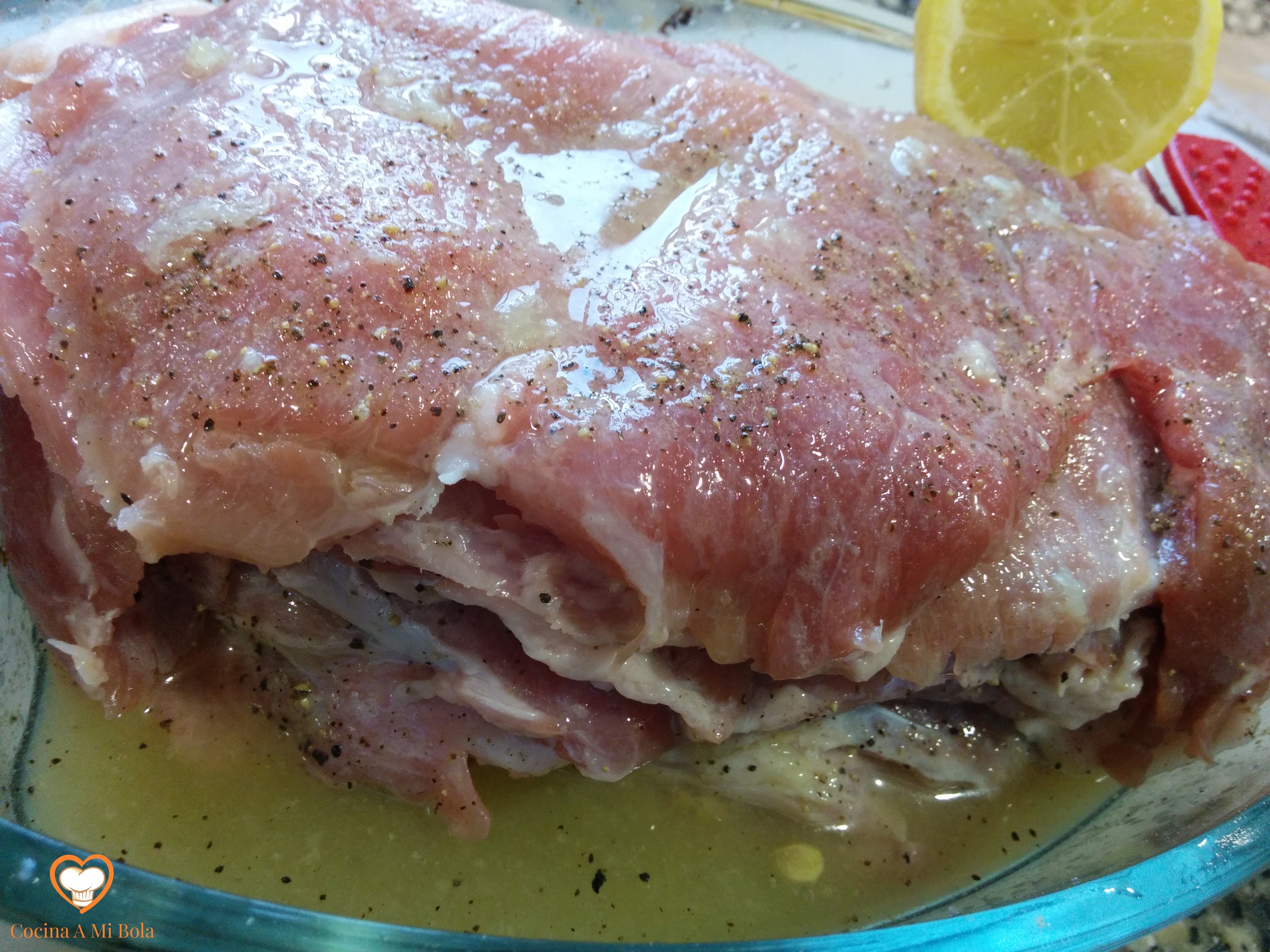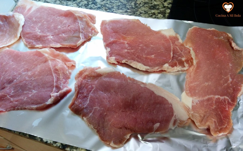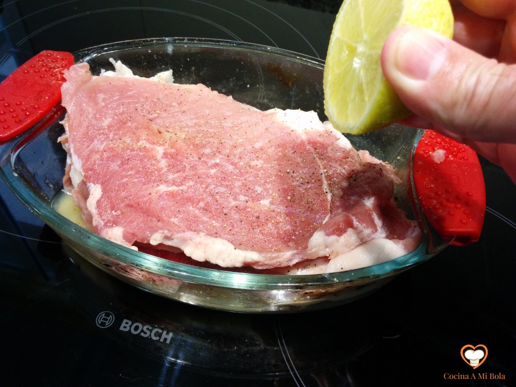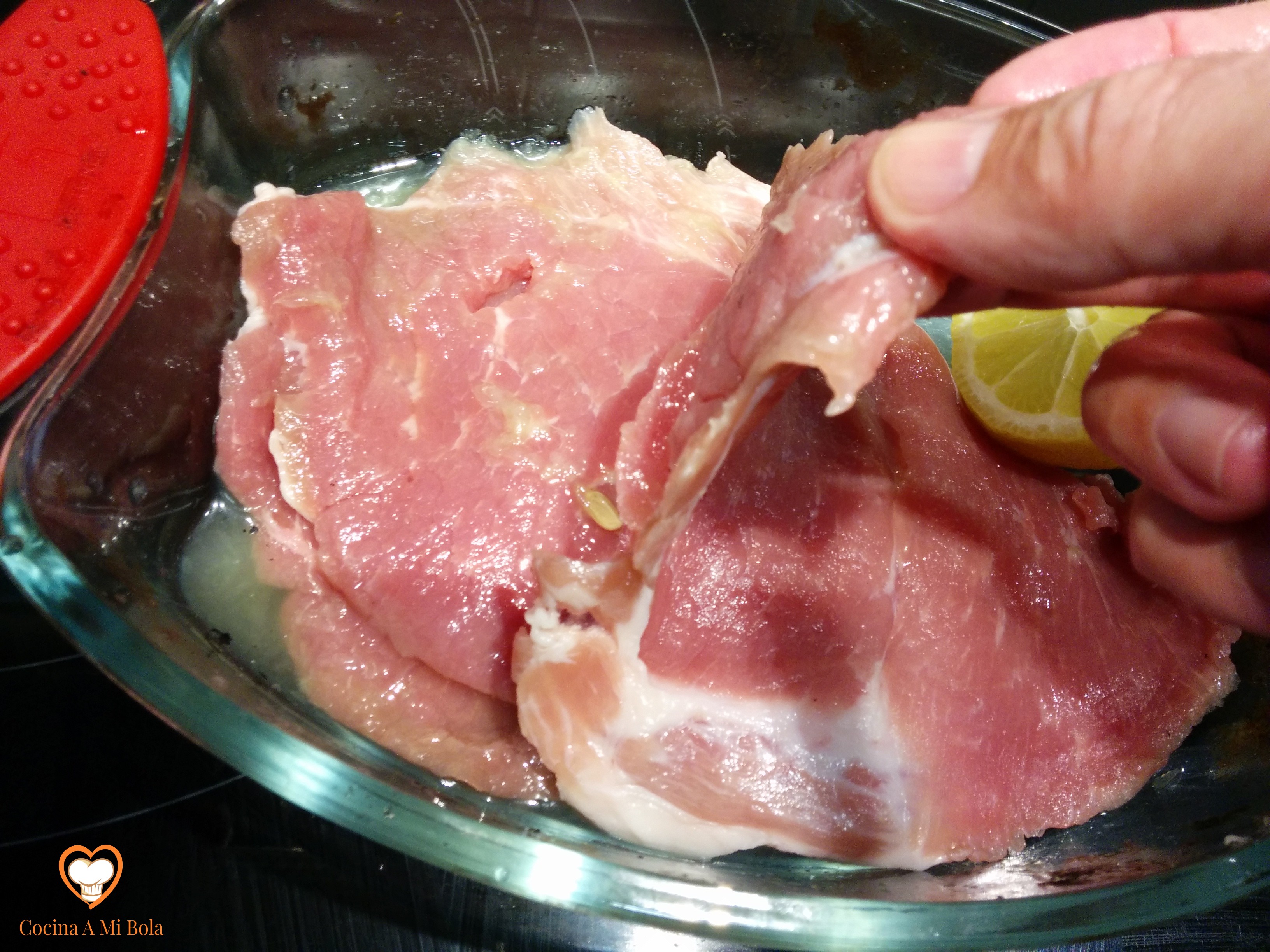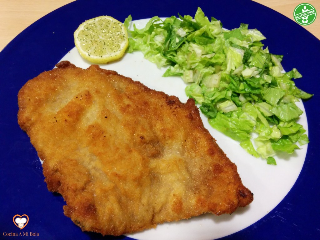 INGREDIENTES: 6 filetes de jamón de cerdo, 2 limones, 1 huevo, harina de arroz, harina de garbanzo, pan rallado sin gluten, pimienta negra molida, sal y aceite de oliva.