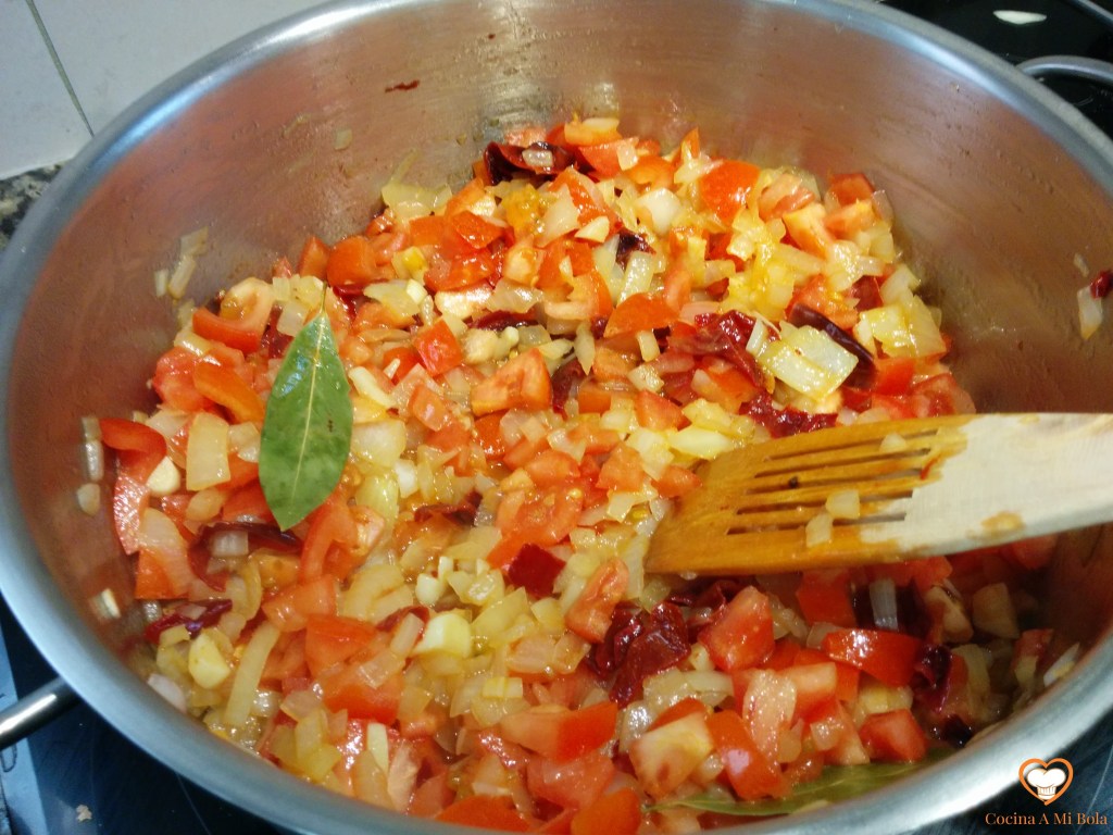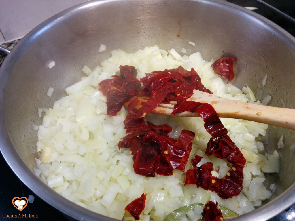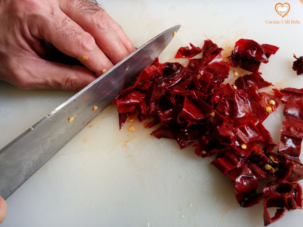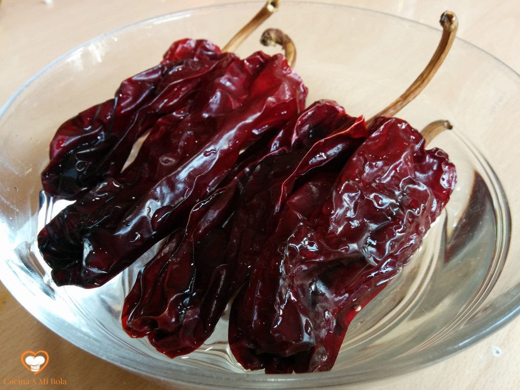 PRIMERO.- Un par de horas antes de empezar, pon en agua caliente los pimientos choriceros para que se rehidraten.