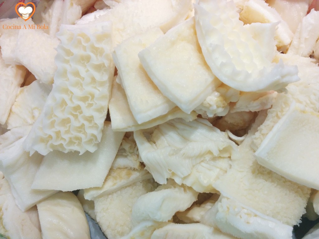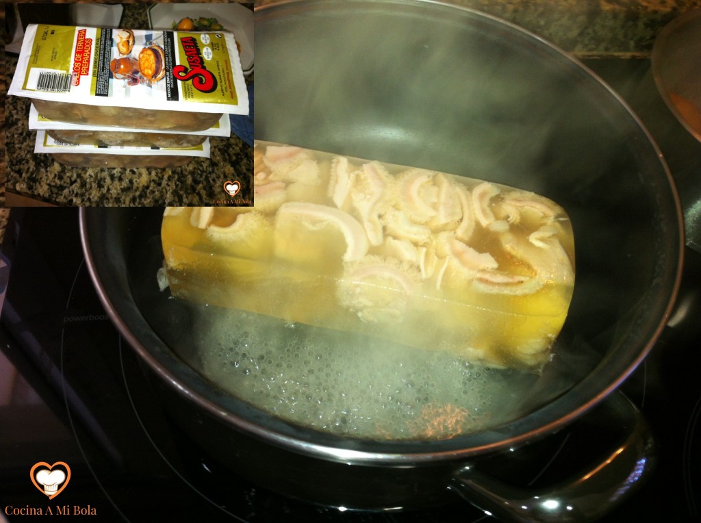 Y para los que no sintáis la curiosidad de hacerlos desde el principio, partiremos de unos callos ya troceados y cocidos. Hay en el mercado español varias marcas que los presentan precocidos en paquetes de kilo en su propio jugo de cocción, pero no guisados: