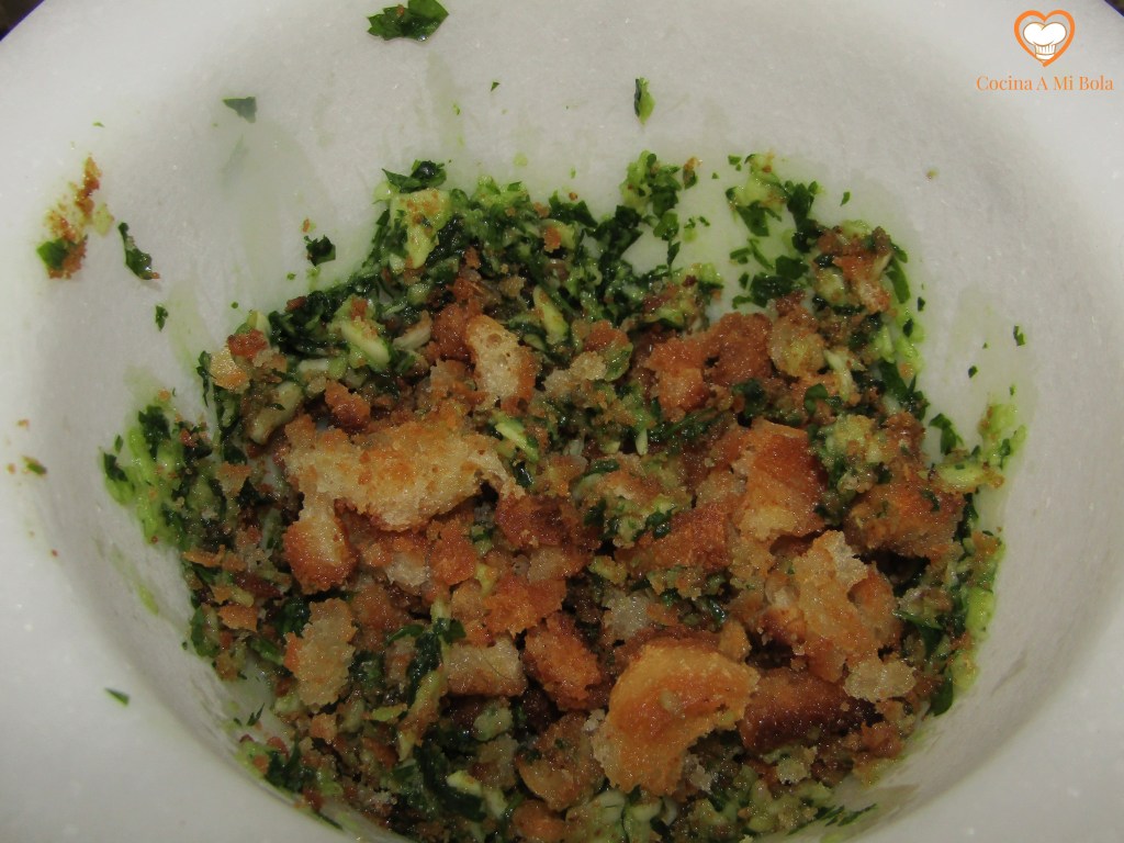 QUINTO.- Para terminar el relleno ya sólo falta agregar la bechamel al bacalao y mezclar todo bien, rehogándolo a fuego lento un par de minutos. Puedes consultar cómo se hace una salsa bechamel haciendo click aquí.