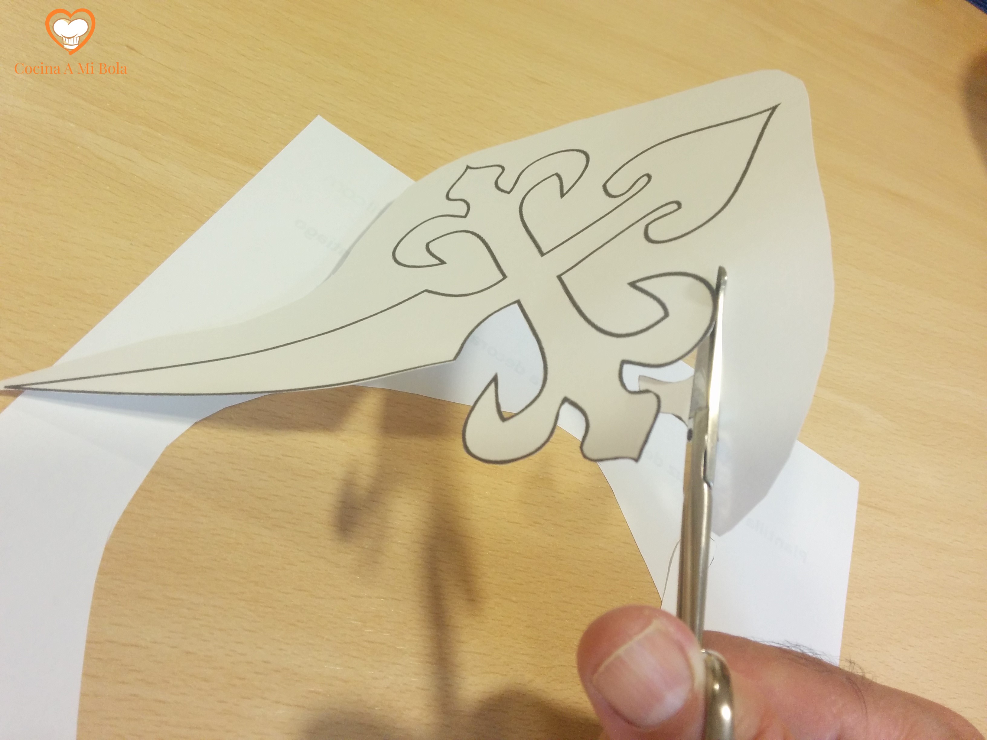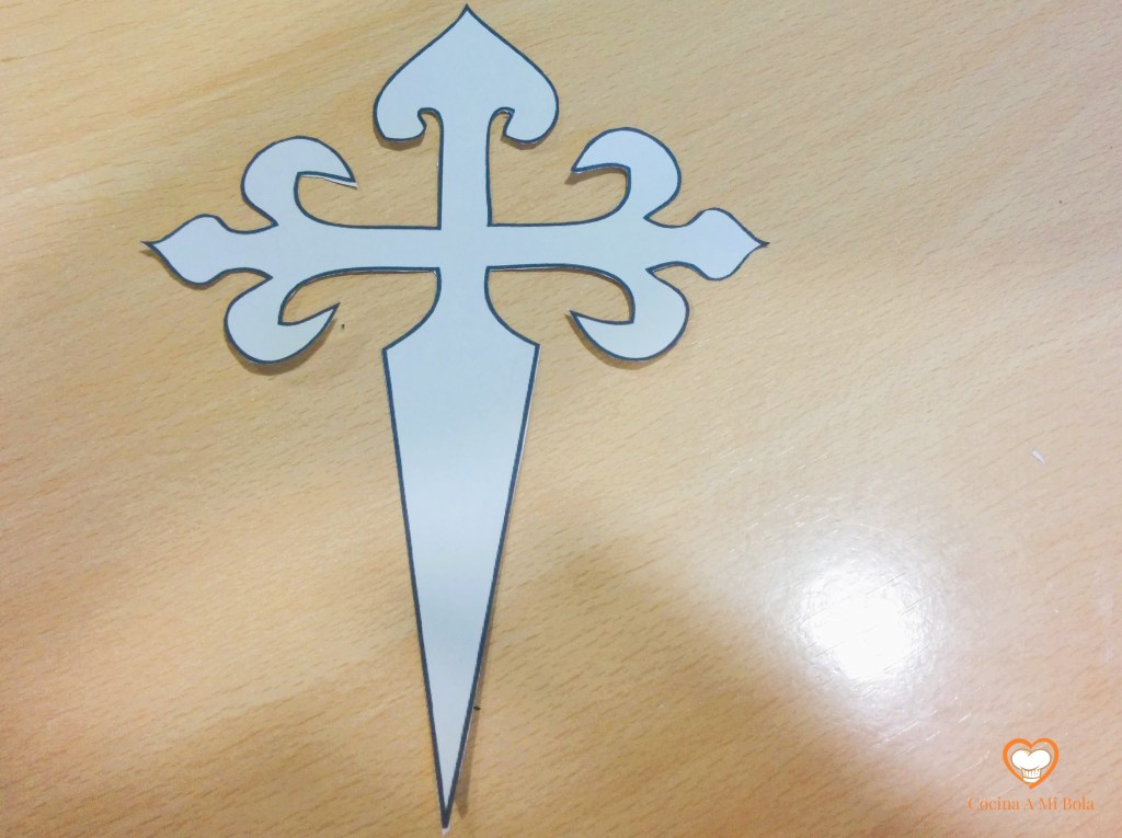 SEXTO.- Mientras tanto, busca en Internet una cruz de Santiago como la de la foto, imprímela y recorta. Podría poner un link a una plantilla, pero dependería de la supervivencia de esa página que es ajena a cocina a mi bola.