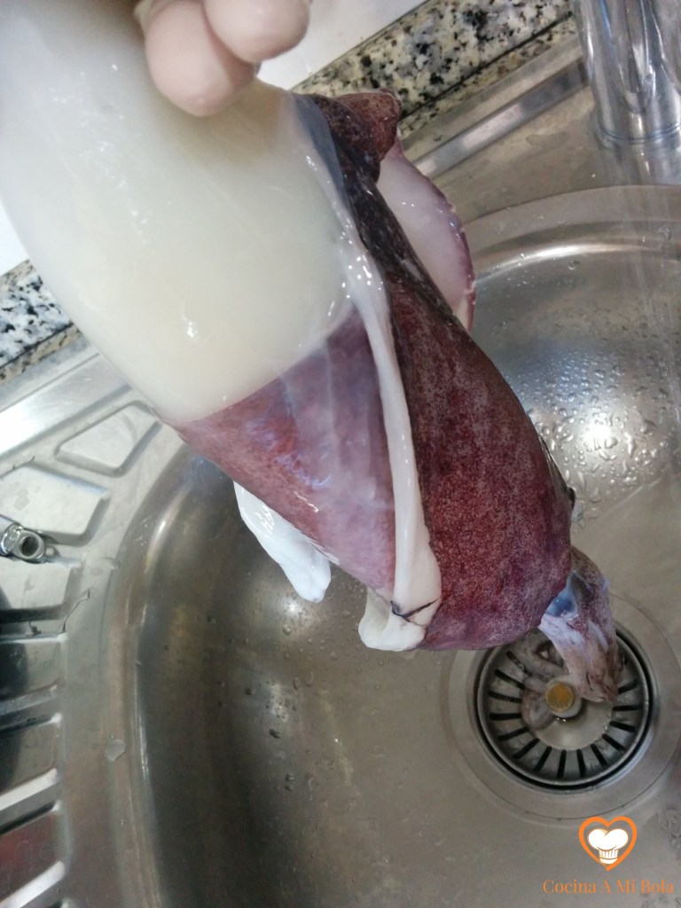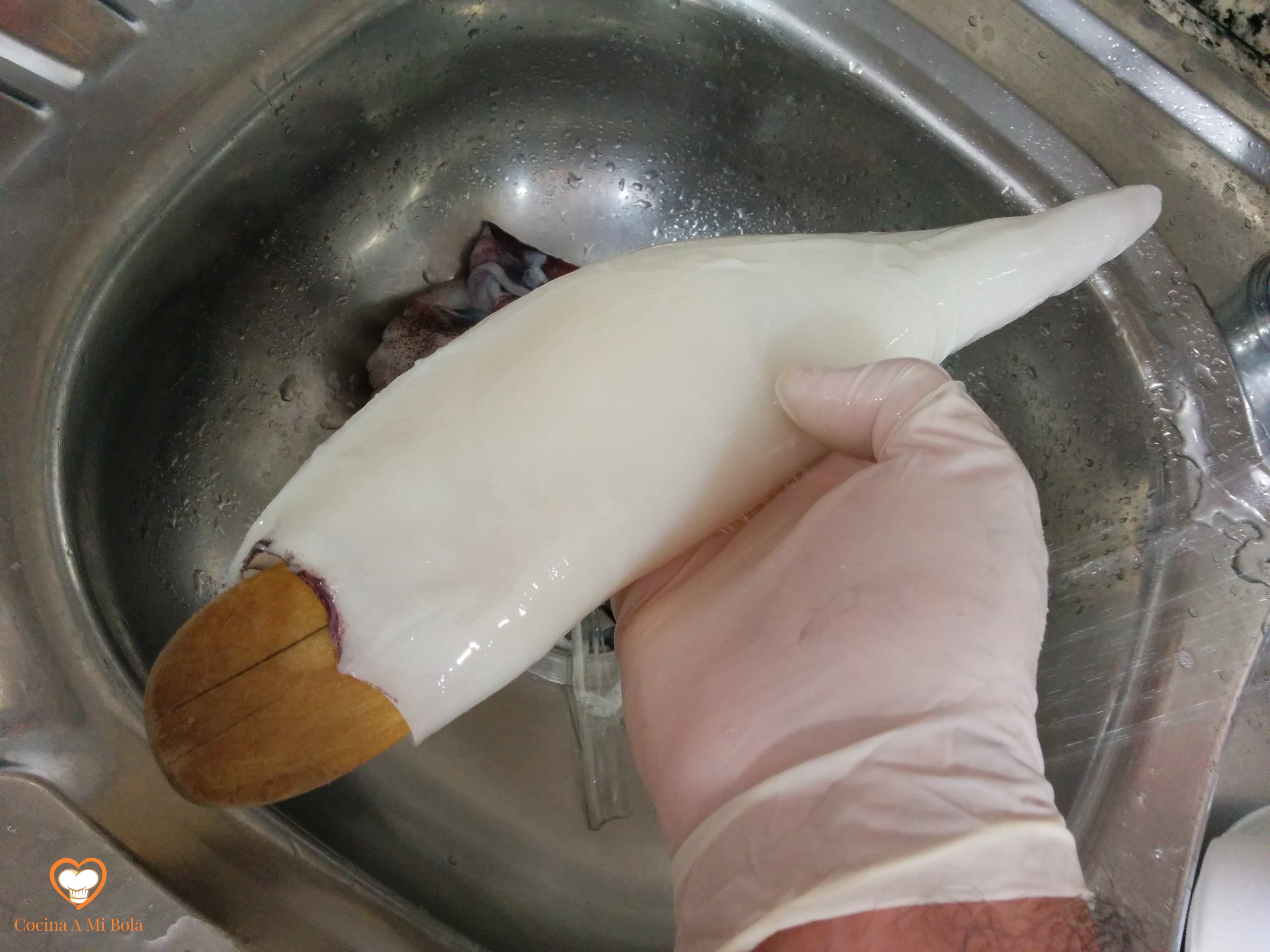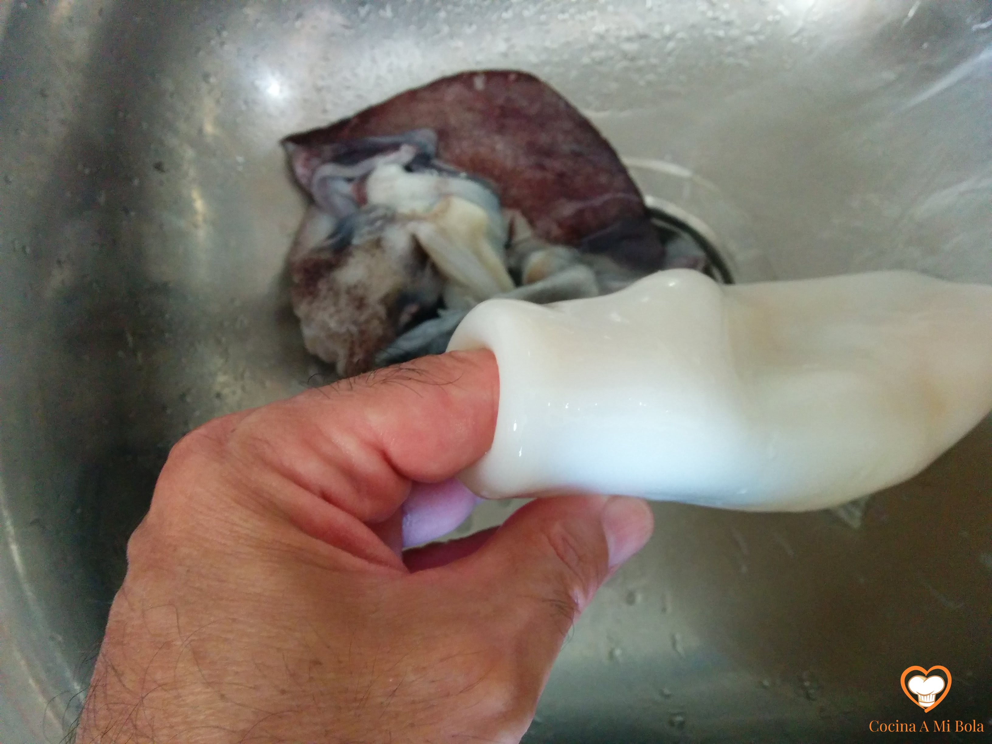 El primer paso y más importante es su limpieza. Tengo que reconocer que cuando tomo por ahí calamares de cualquier tipo y no están bien limpios por dentro, me da cierto reparo, así que vamos a explicar cómo se limpian para que queden impecables.