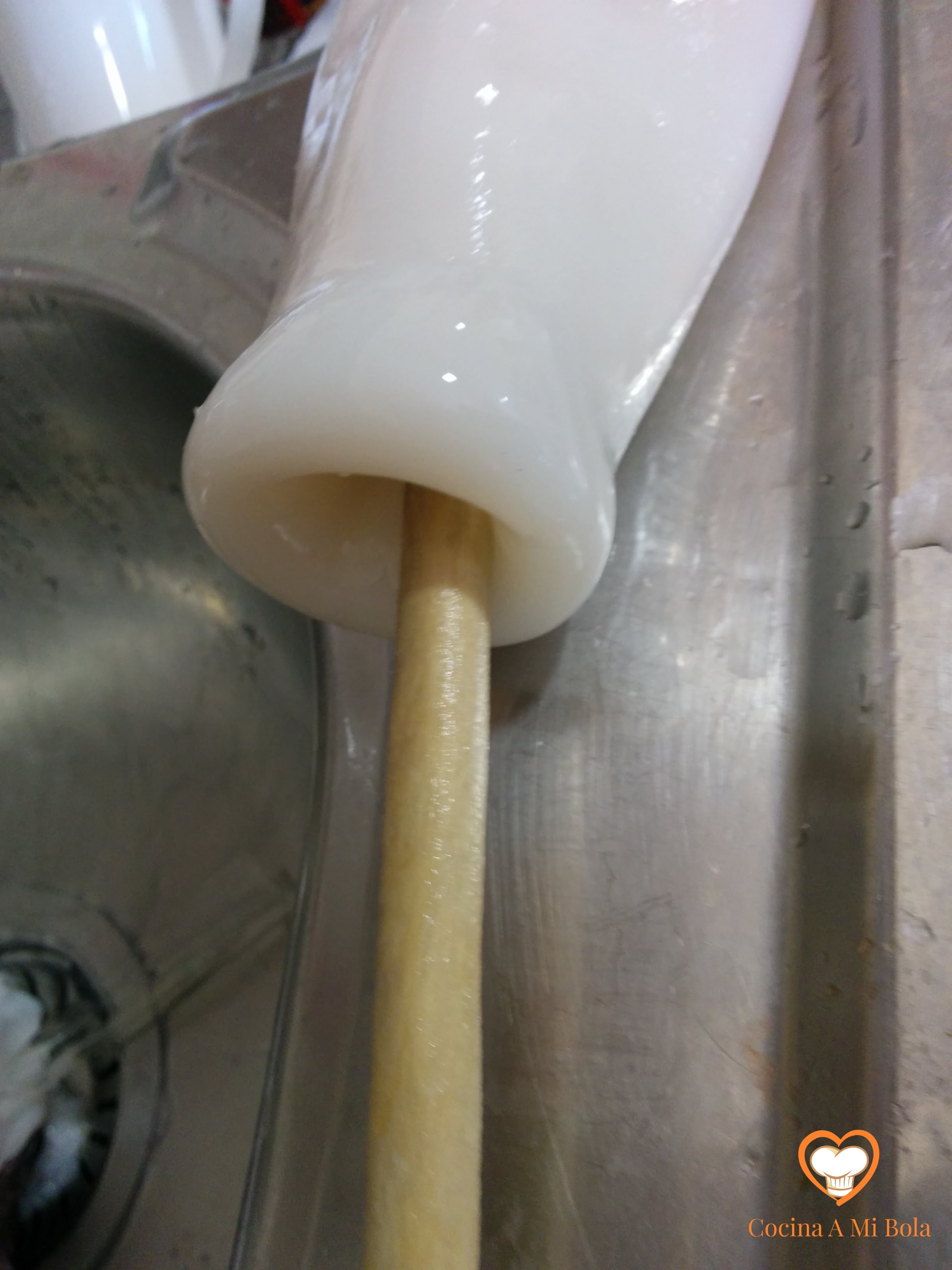 TERCERO.- Lo siguiente es limpiar bien el tubo por fuera, ya libre de la telilla exterior. Trata de arrancarle con las manos unos pellejos blanquecinos que tienen adheridos.