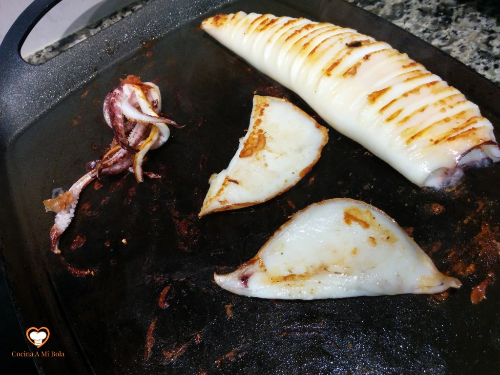 PREVIO.- El calamar grande es el ideal para hacer a la plancha porque a pesar de la pérdida de volumen que sufre, tiene grosor más que suficiente para soportarlo sin que nos deje el plato medio vacío.