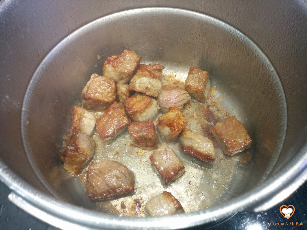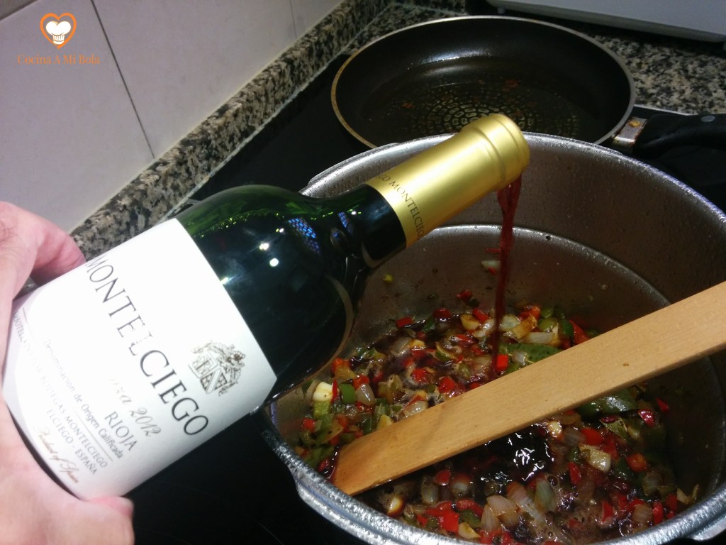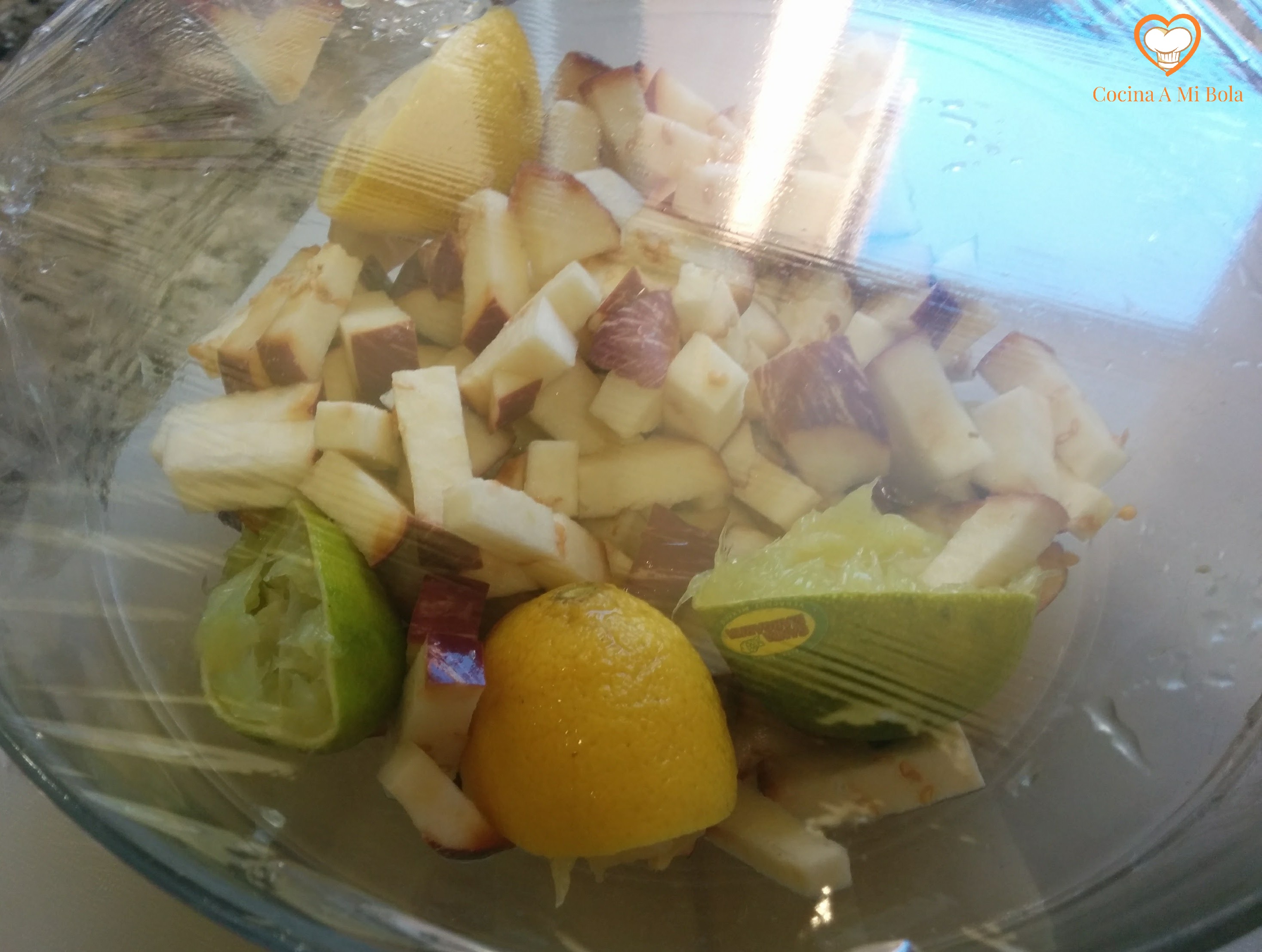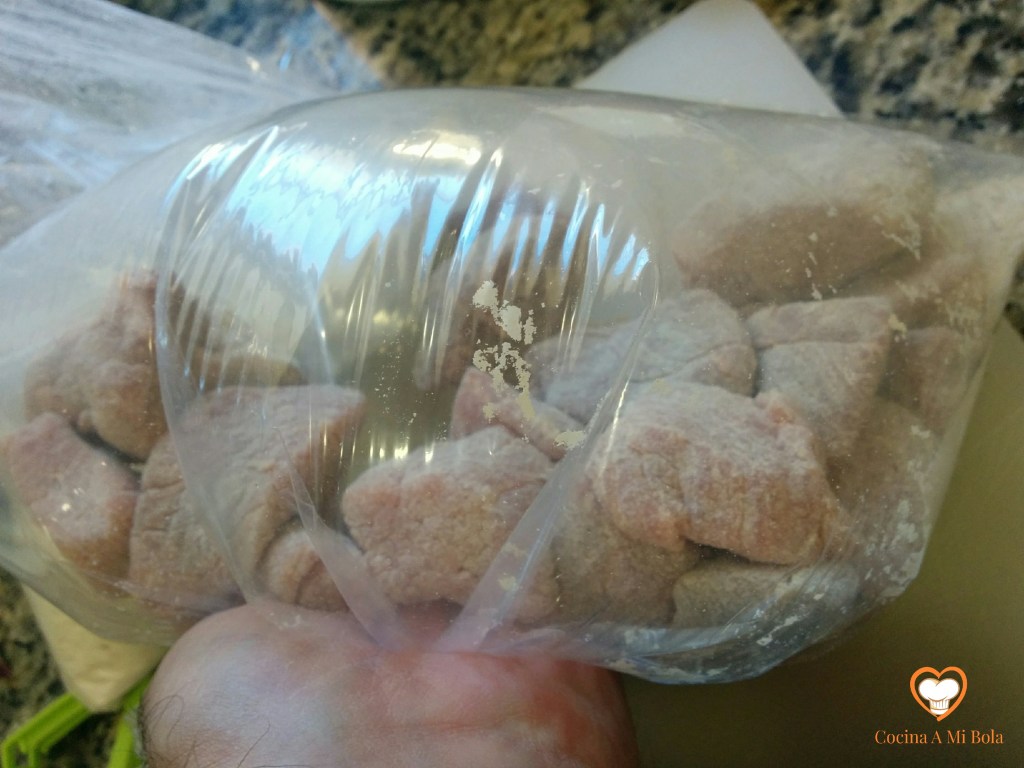 SEXTO.- Aplanamos la carne sobre el fondo del bol y lo cubrimos con un film de cocina pero en contacto con la propia carne para que no se seque. Si podemos dejarlo macerar al menos una hora, será estupendo porque así la carne se impregna de la mezcla de aromas, todos ellos muy potentes que aportan tanto la cebolla, como el ajo, como las hierbas, como las especias.