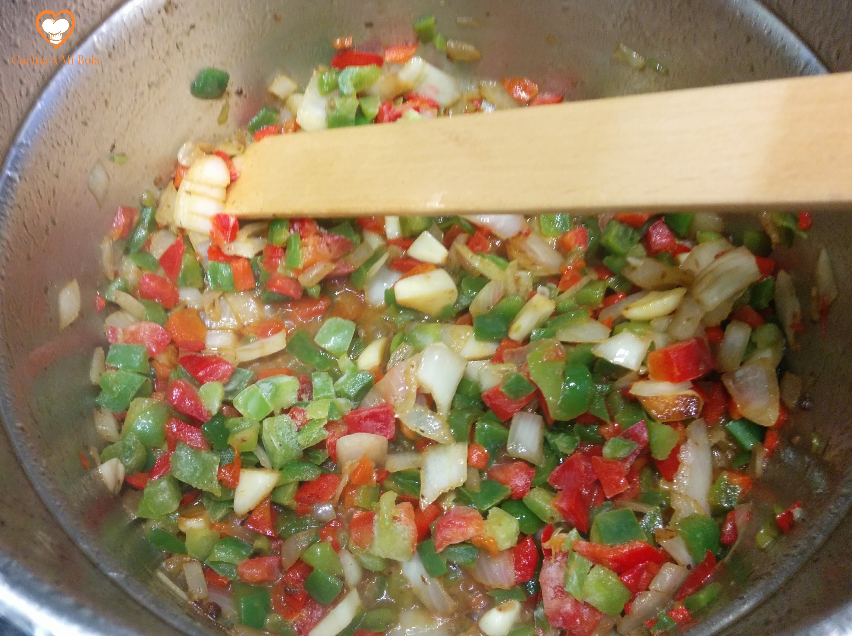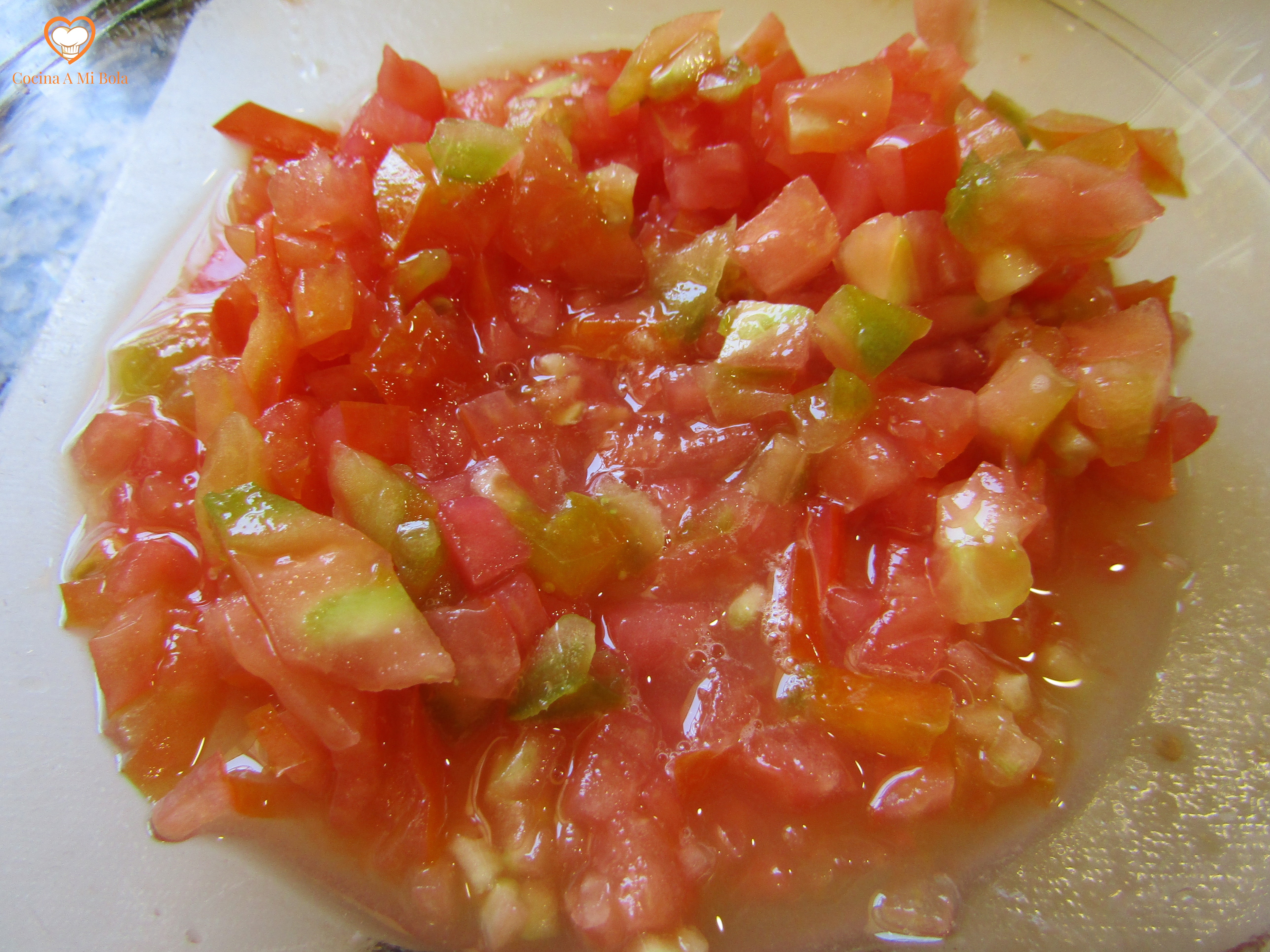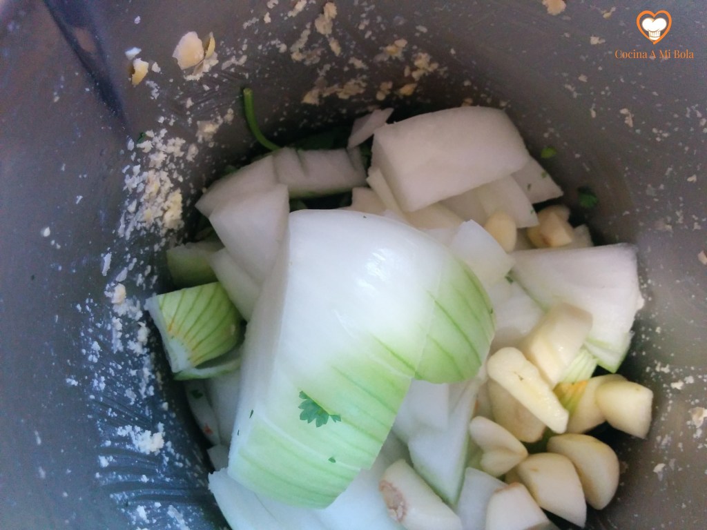 SEGUNDO.- Pica muy fino media cebolleta, incluso la parte más próxima a las hojas que, aun siendo blanca, ya tiene trazos más verdosos.