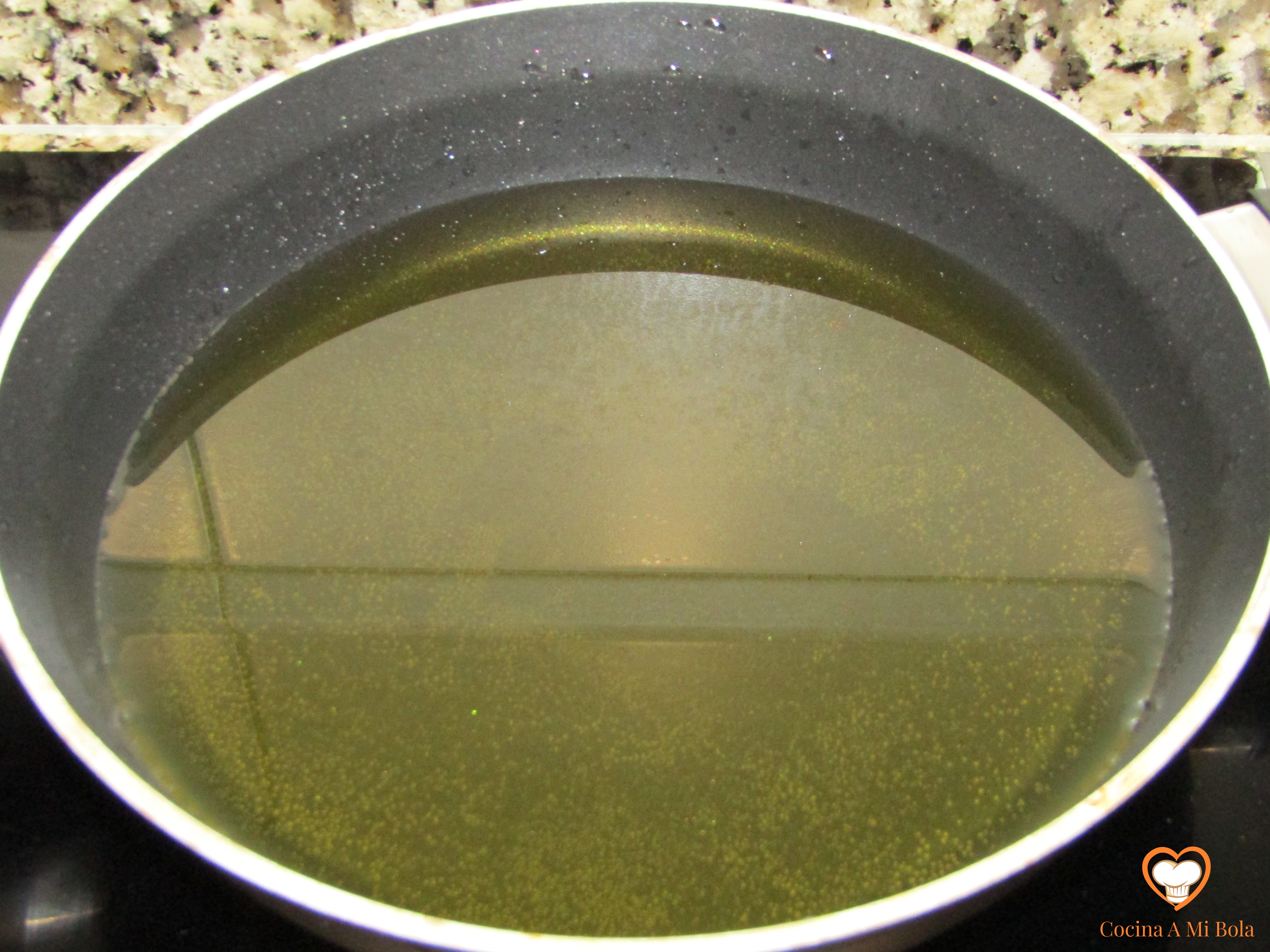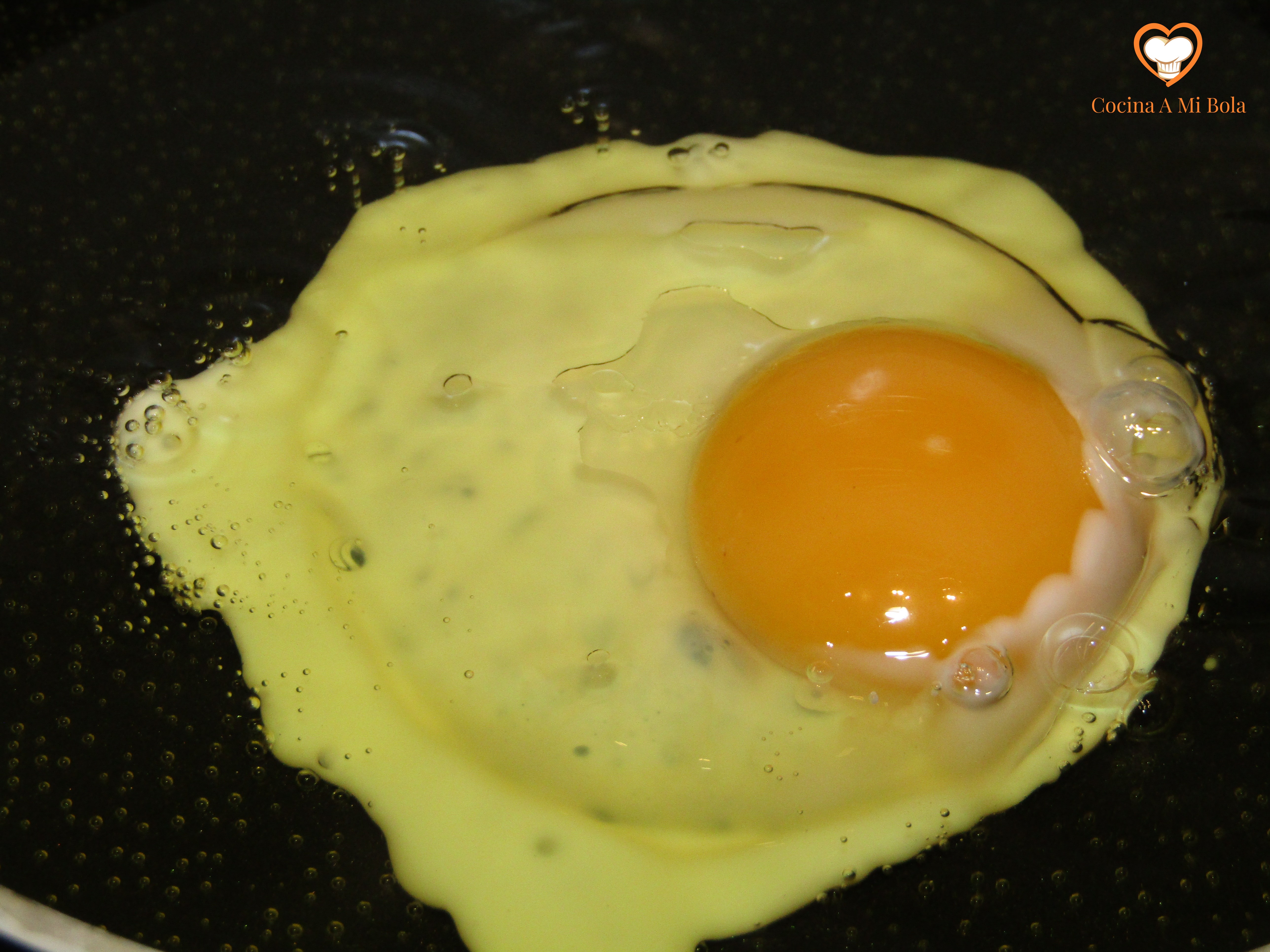 QUINTO.- En esa sartén y en ese mismo aceite, bajando un poco el calor, freiremos el huevo procurando no hacerlo demasiado y que en ningún caso se cuaje la yema.