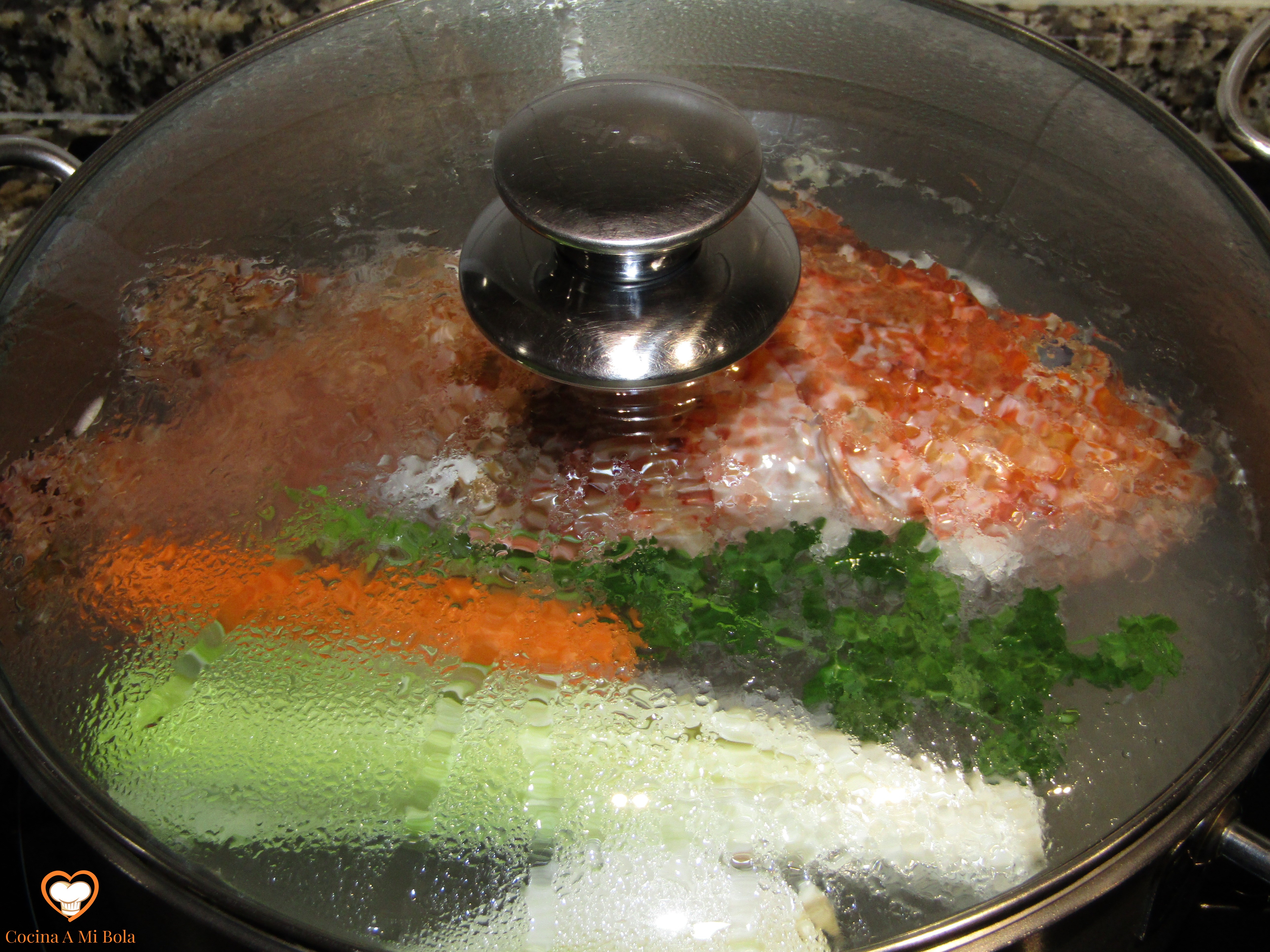 SEPTIMO.- Si el jugo de los pimientos no ha dado lo bastante de sí como para alcanzar el nivel citado, podemos echar un poco de agua, pero muy poco y sólo si fuera el caso. Cerramos la olla y si es de las rápidas, unos 15 minutos tras la salida del vapor a fuego bajo.