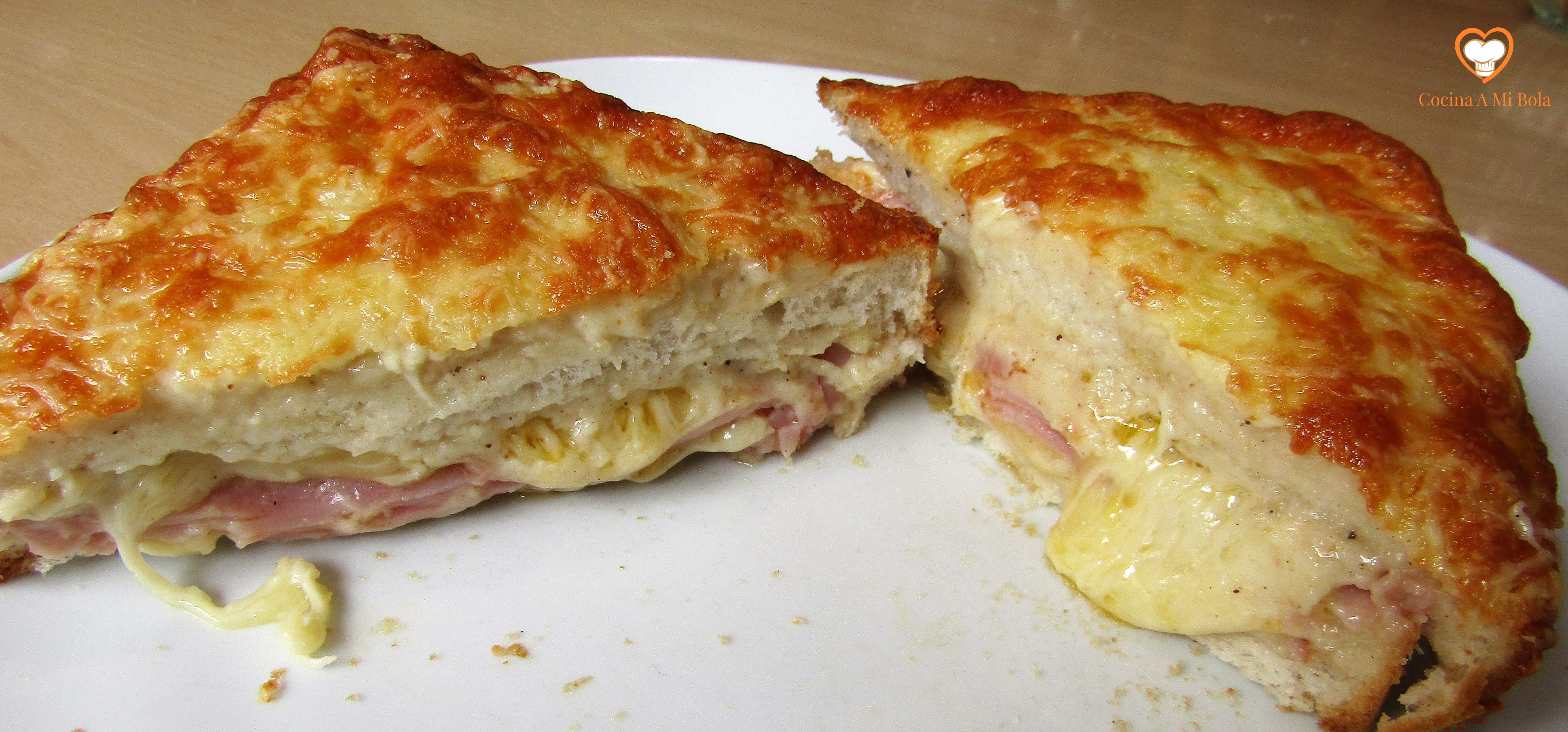 INGREDIENTES: 2 rebanadas de pan de molde gruesas, jamón cocido (si es ahumado, mejor), queso fundible para rallar: Gruyere, Emmental, Cheddar, Gouda o Maasdam, o una buena mezcla de todos o algunos de ellos, salsa bechamel.