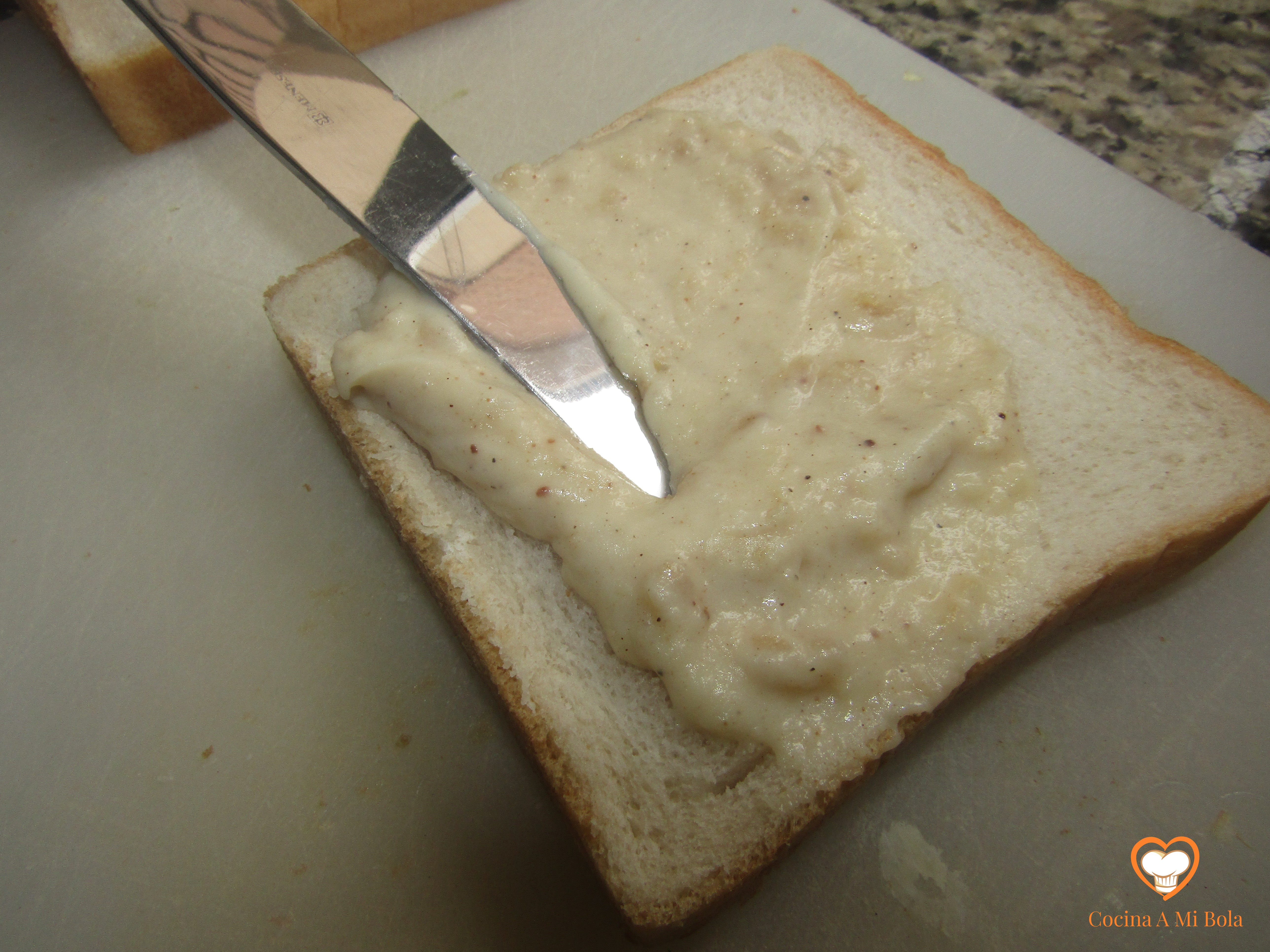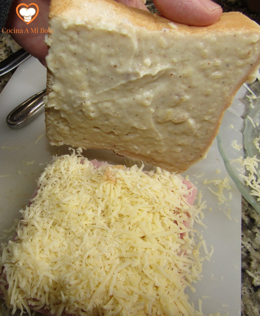 SEXTO.- Untamos la otra rebanada de salsa bechamel (sin abusar) y la colocamos encima, dejando la parte untada en su interior.