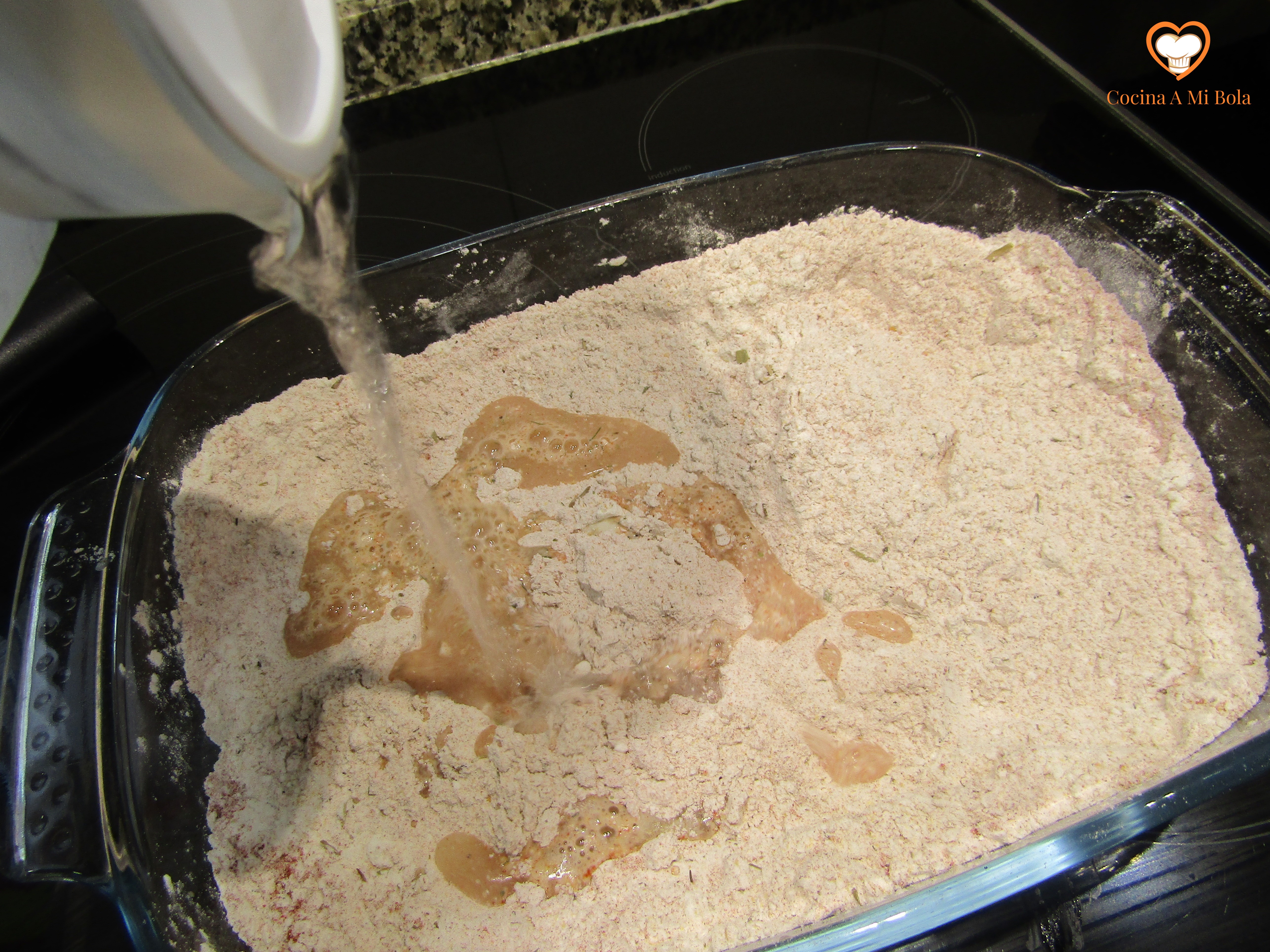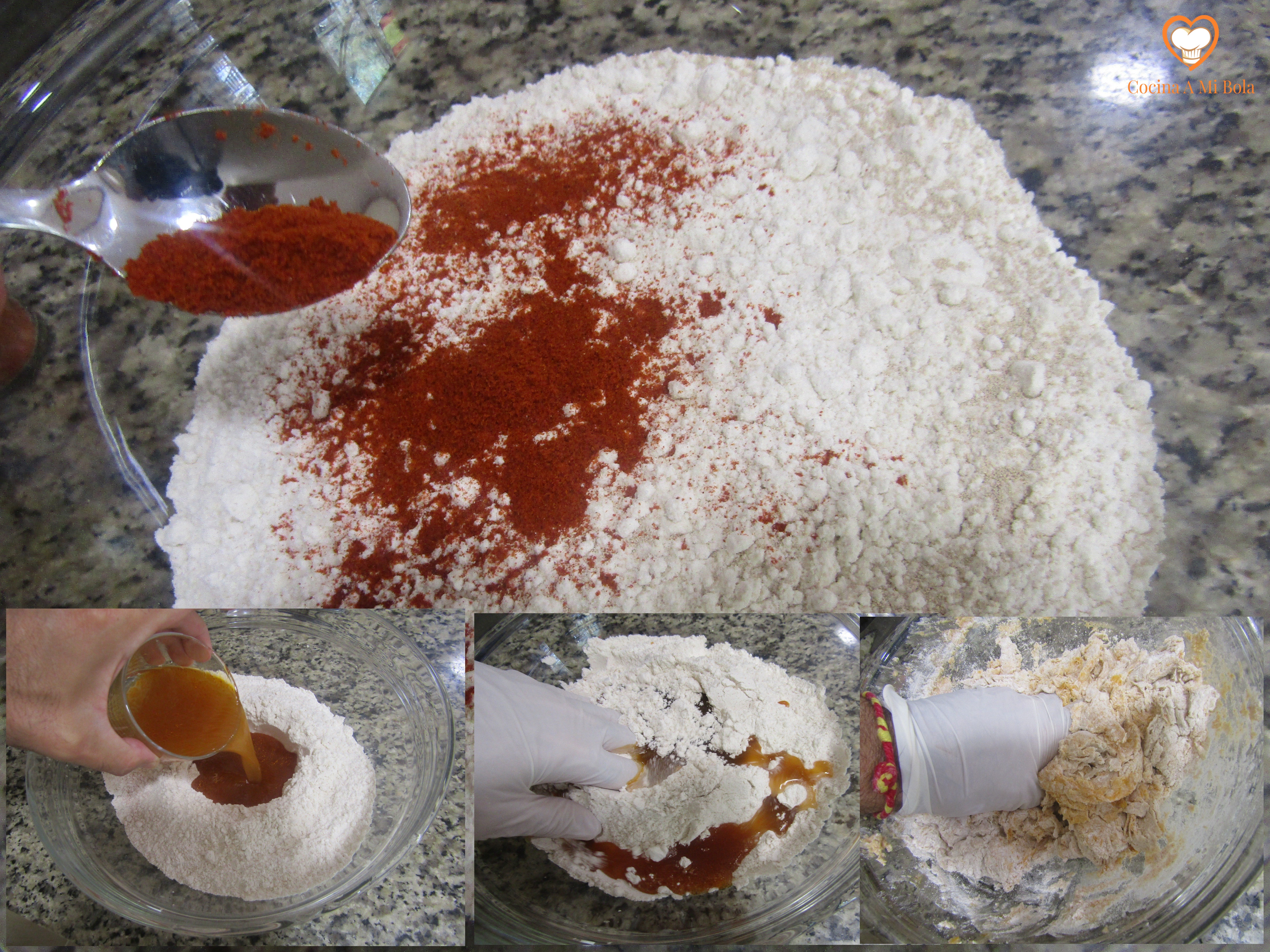 PREVIO.- Yo estoy completamente seguro que en el establecimiento a que hago referencia no elaboran el rebozado como yo estoy explicando, básicamente porque intuyo que se limitan a echar a la harina sus “polvos mágicos importados” y listo. Pero tras unas cuantas pruebas, creo que esta fórmula que os propongo se le asemeja bastante. En todo caso, ya sabéis que nunca intento imitar una receta al detalle, sino que me limito a interpretarla “a mi bola”.