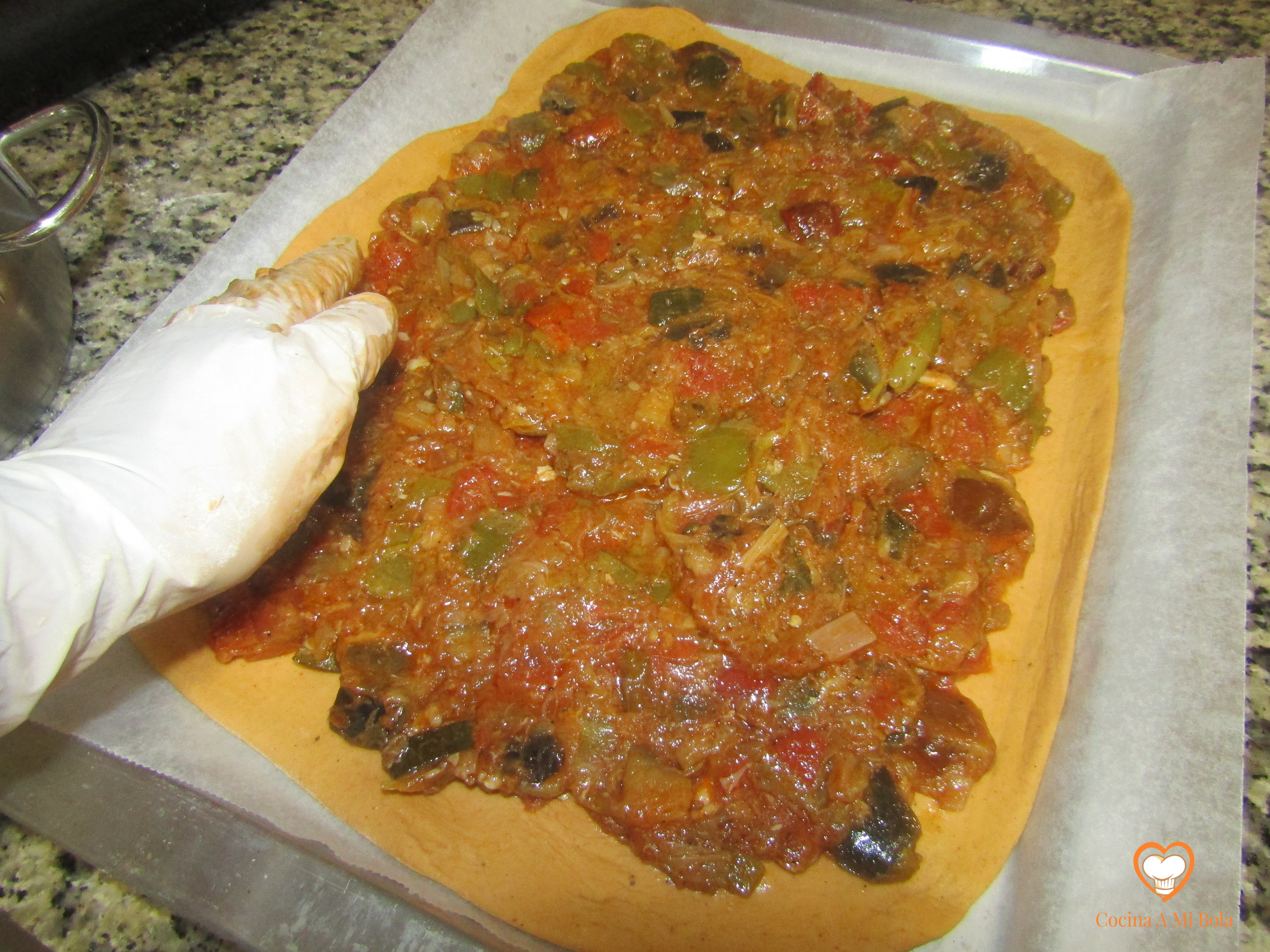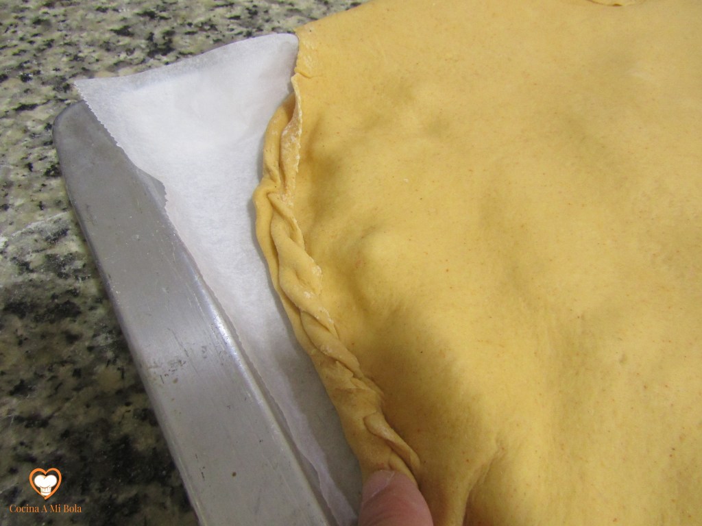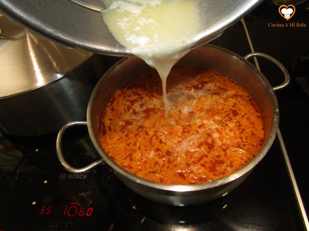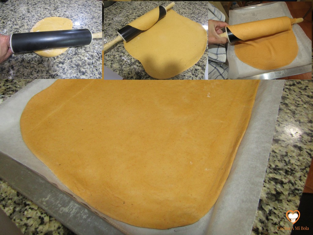 CUARTO.- Echa el agua muy poco a poco y mezcla bien hasta que consigamos una pasta bastante densa y sin grumos de color anaranjado. Repásala por todas partes con los dedos para cerciorarte que no hay grumos.
