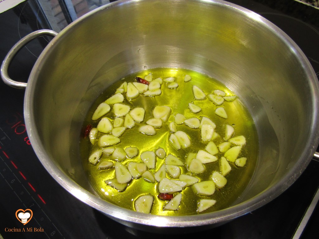 SEXTO.- Transcurrido el tiempo, (normalmente al día siguiente) empezaremos con la fritura, que no es fácil, así que… concentración. Es bueno que cuando echemos los muslos a la sartén estén muy fríos, así que procura tenerlos en la nevera hasta última hora.