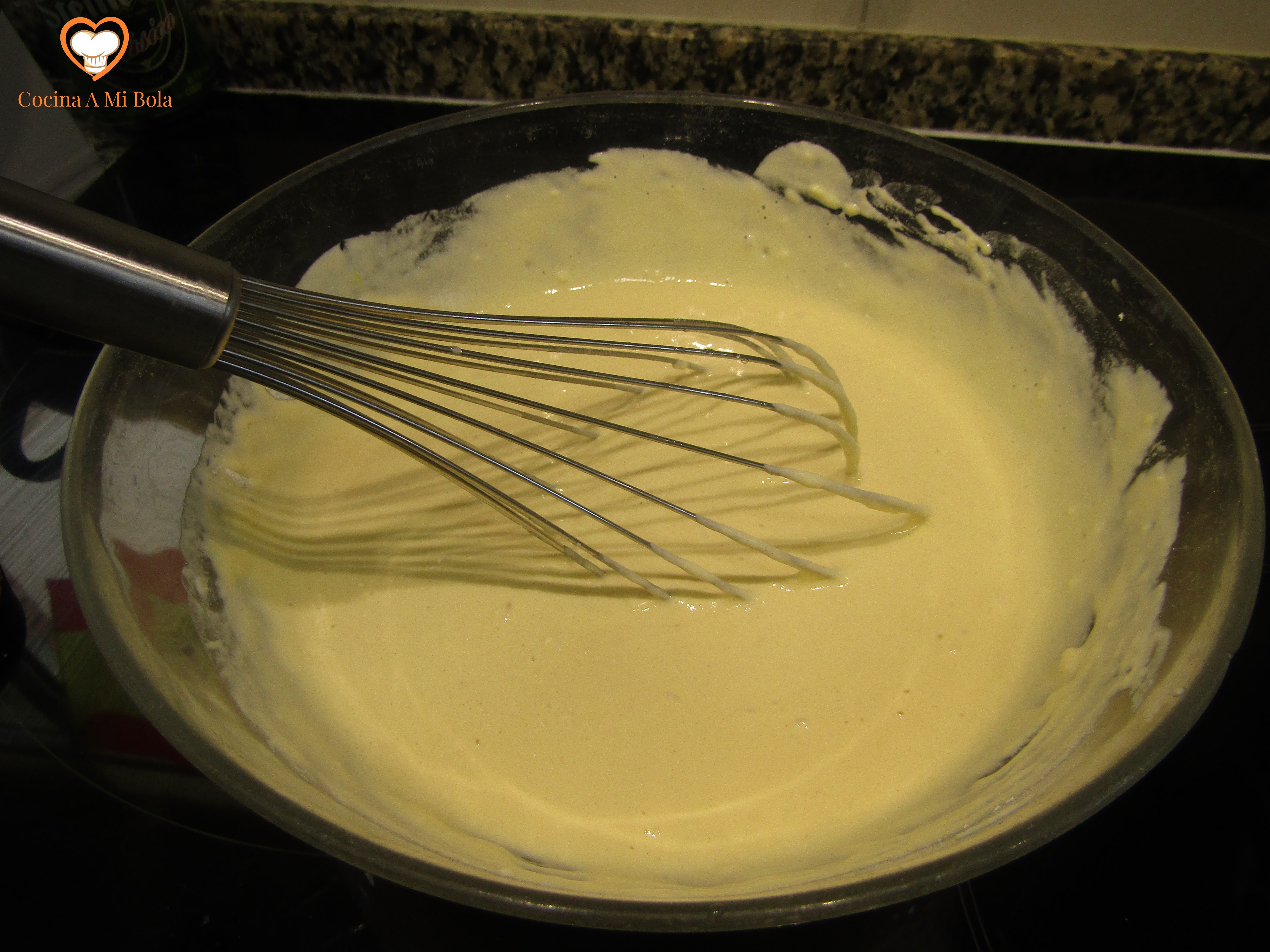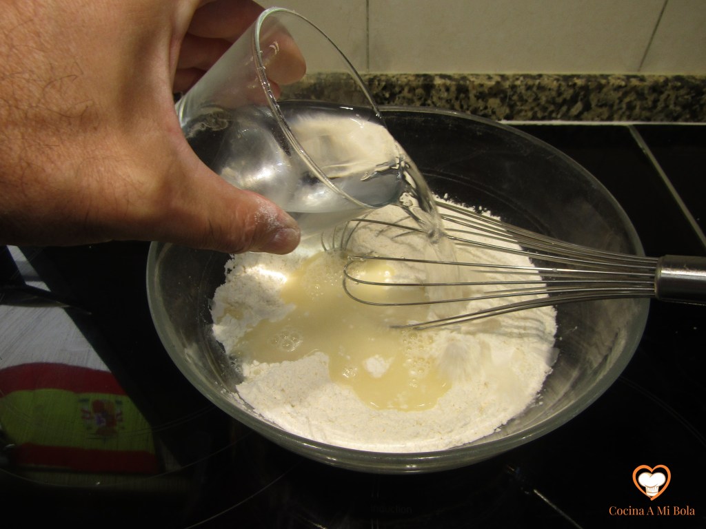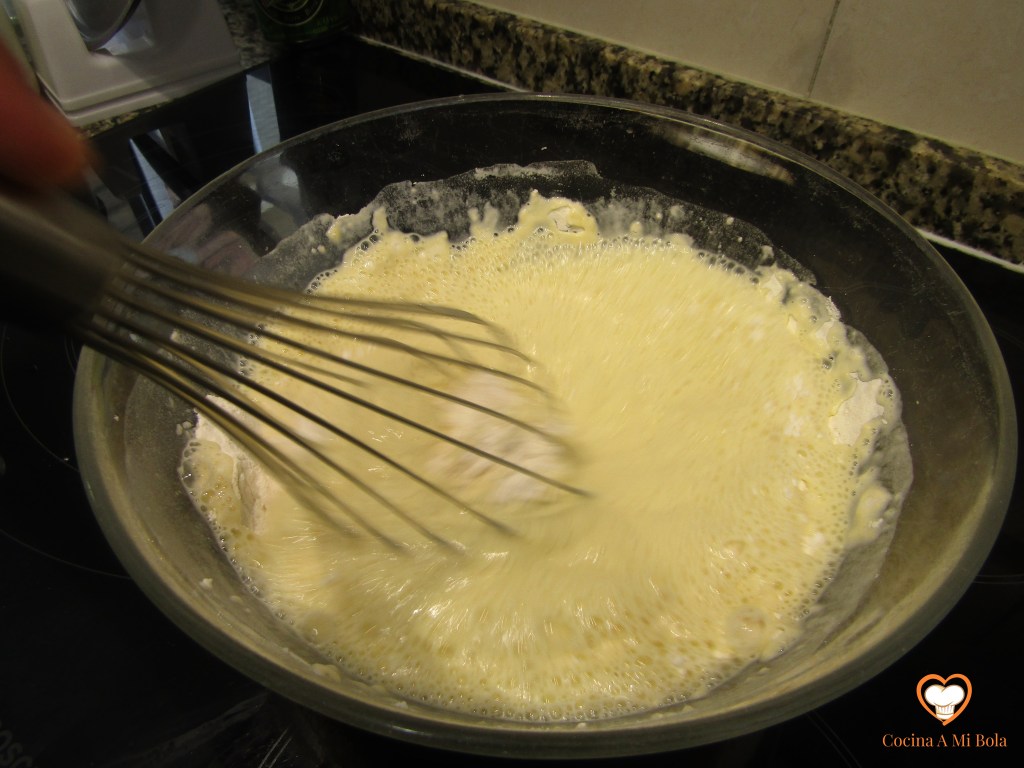 SEXTO.-  Haz la tempura con agua muy fría y mézclalo bien para que no queden grumos. Sigue las instrucciones del fabricante de la harina porque cada marca tiene su proporción, pero procura que sea más densa que ligera.  Pon pimienta negra molida y mezcla bien.