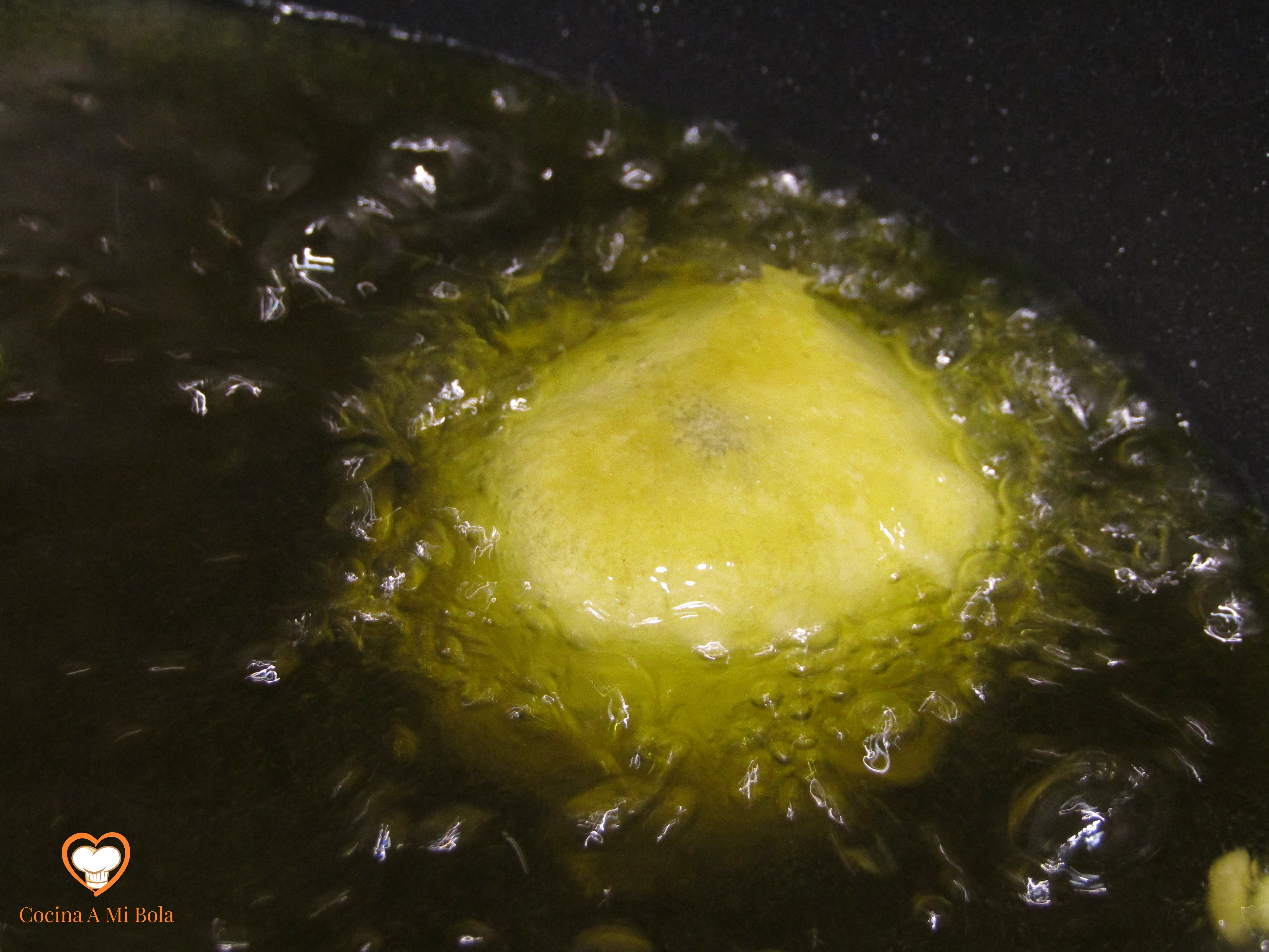 SÉPTIMO.- Pon aceite de oliva abundante en una sartén honda. Caliéntalo a unos 190ºC, es decir, bastante caliente.