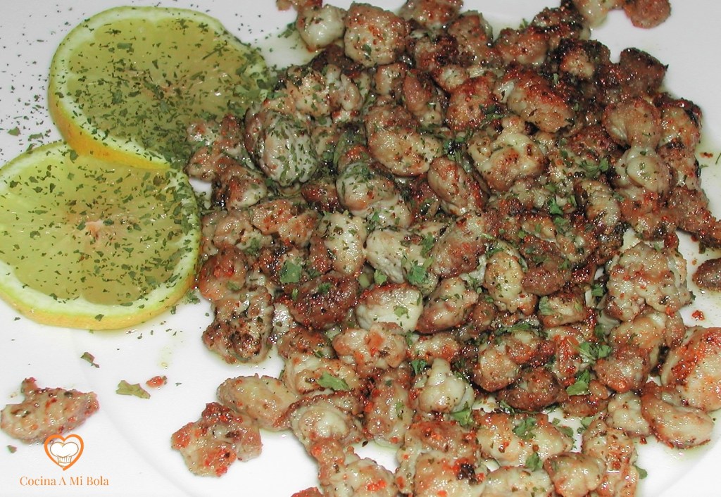 INGREDIENTES: 500 gr de mollejas de cordero, 5 dientes de ajo, perejil picado, aceite de oliva virgen extra, sal, pimienta negra molida y unas gotas de zumo de limón.