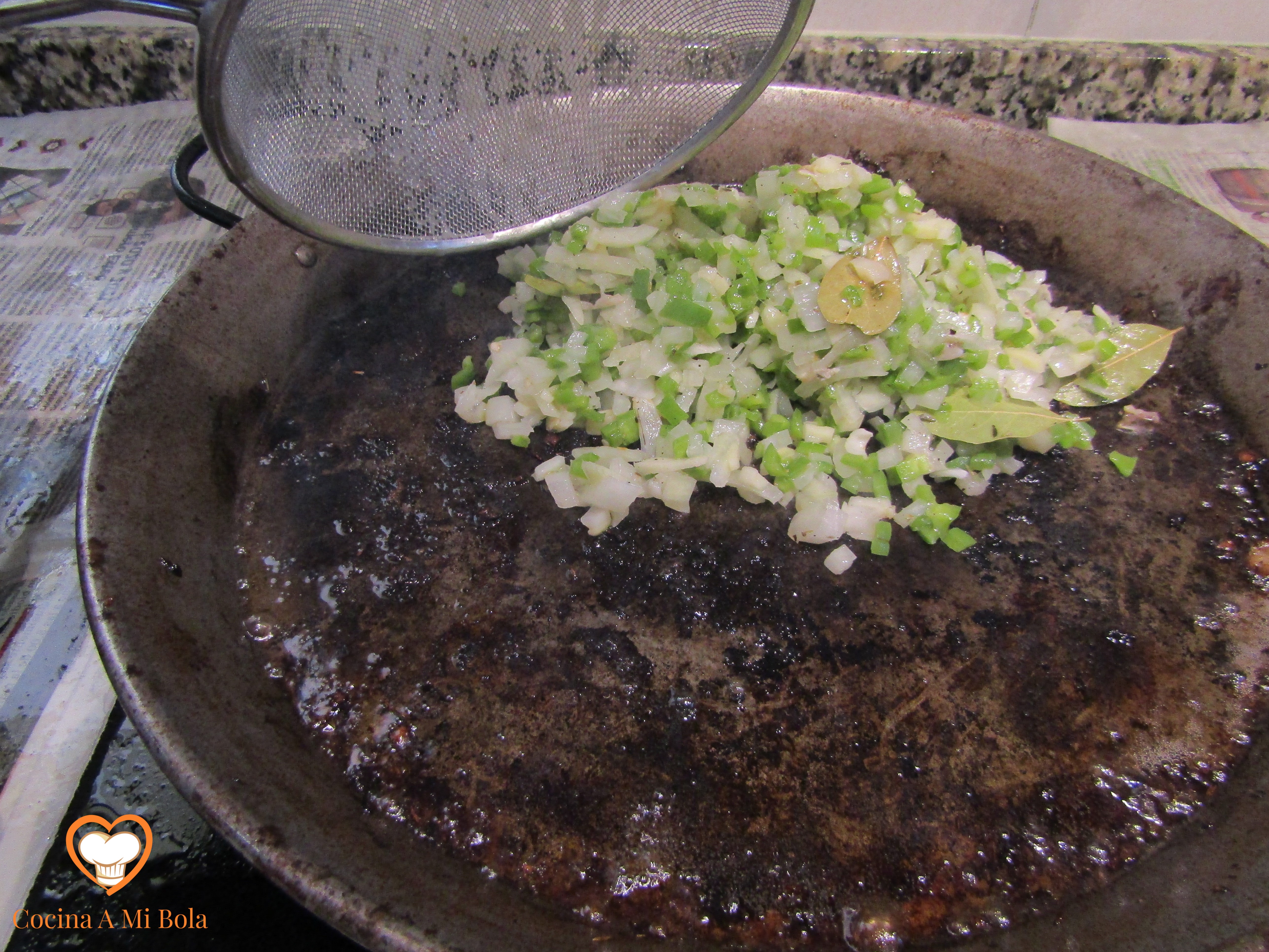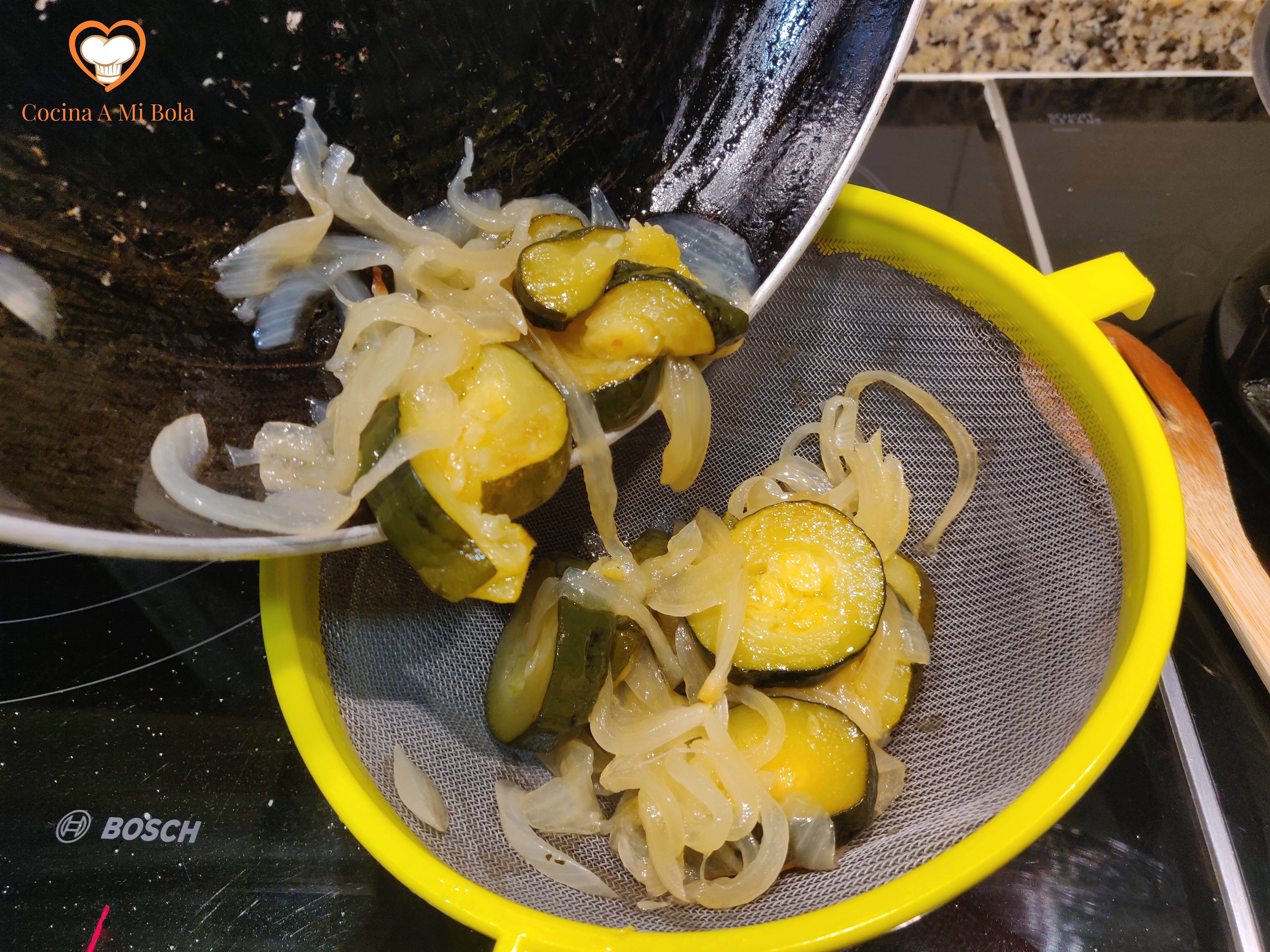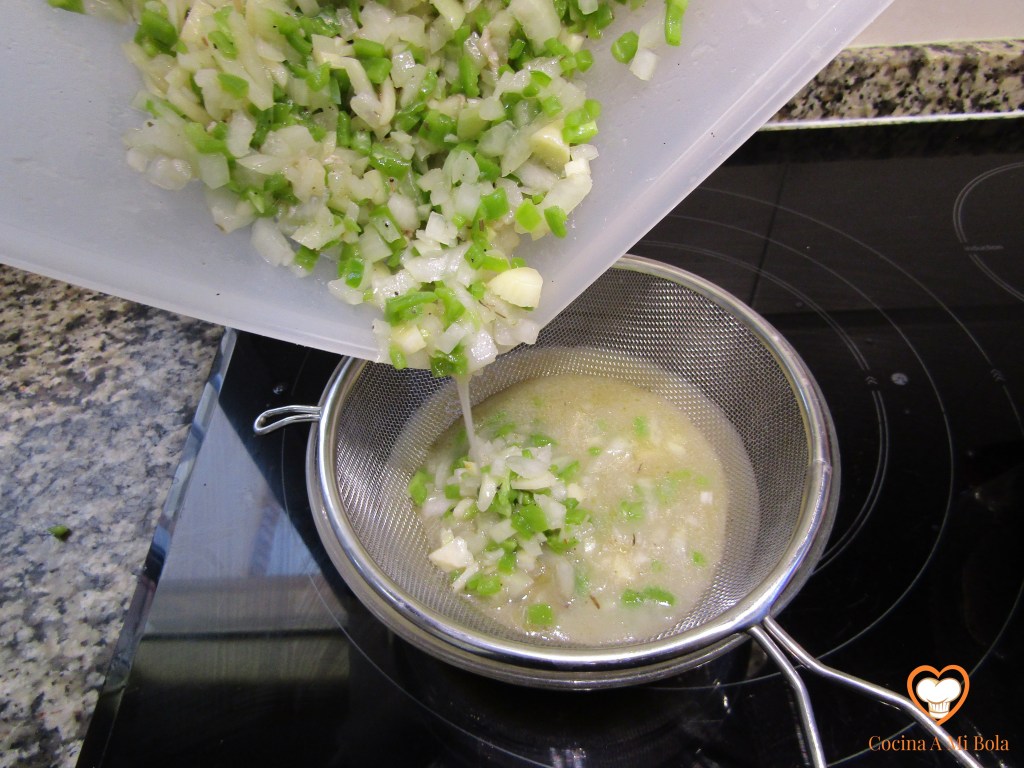 CUARTO.- Cuando la verdura esté hecha, pásala a un colador sobre un bol para que escurra todo su jugo y el aceite que te puede servir para cualquier guiso que vayas a hacer en breve y si no, pues deshazte de ello.