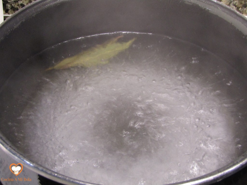 PRIMERO.- Ponemos agua a hervir en una olla grande con dos o tres hojas de laurel y bastante sal; unos 80 gramos por litro más o menos. Para cocer este marisco hemos de tener en cuenta si aún está vivo porque si es el caso, debemos ponerlo en el agua fría, mientras que si ya no vive, los echaremos en el agua una vez empiece a hervir. Es muy importante que los mariscos en general y éste en particular cuezan en agua muy abundante, así que si quedan muy apretados en nuestra olla más grande, será mejor hacerlo en distintas tandas. Tapamos para que alcance el hervor lo antes posible y desde ese momento, los tendremos unos 15 minutos para un buey de unos 900 gramos, a fuego bajo pero sin que pare la ebullición. 12-13 minutos si son de 700 gr aprox. Y cuando se cumpla el tiempo los meteremos en agua fría para cortar la cocción. Deja que se enfríen para poderlos manipular.