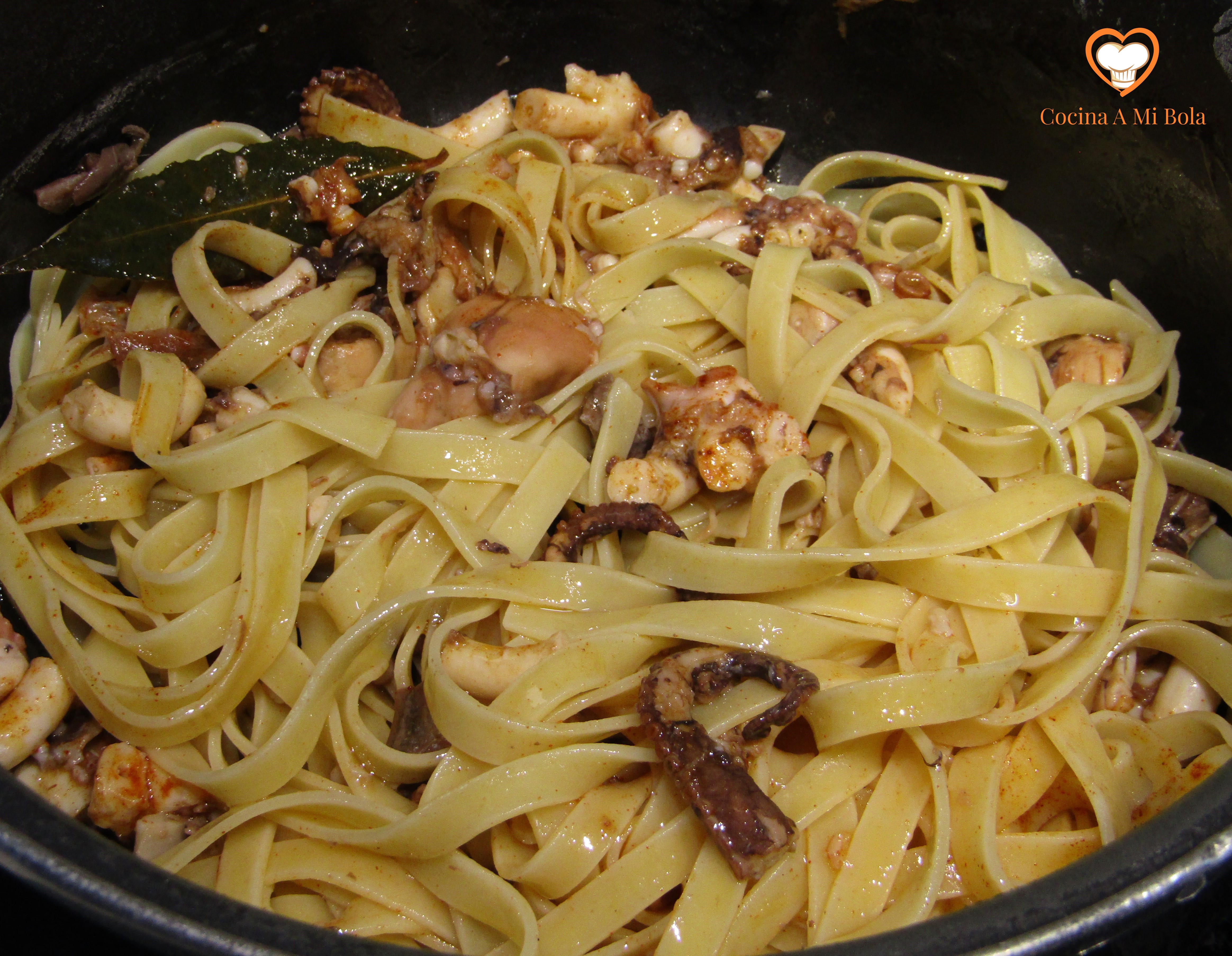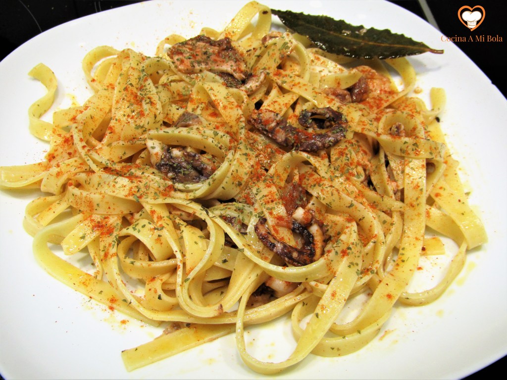 INGREDIENTES: Para 2 personas. 6 nidos de tagliatelle, 3 pulpitos, 1 lata de anchoas en aceite de oliva, aceite de oliva virgen extra, pimentón dulce ahumado y sal.