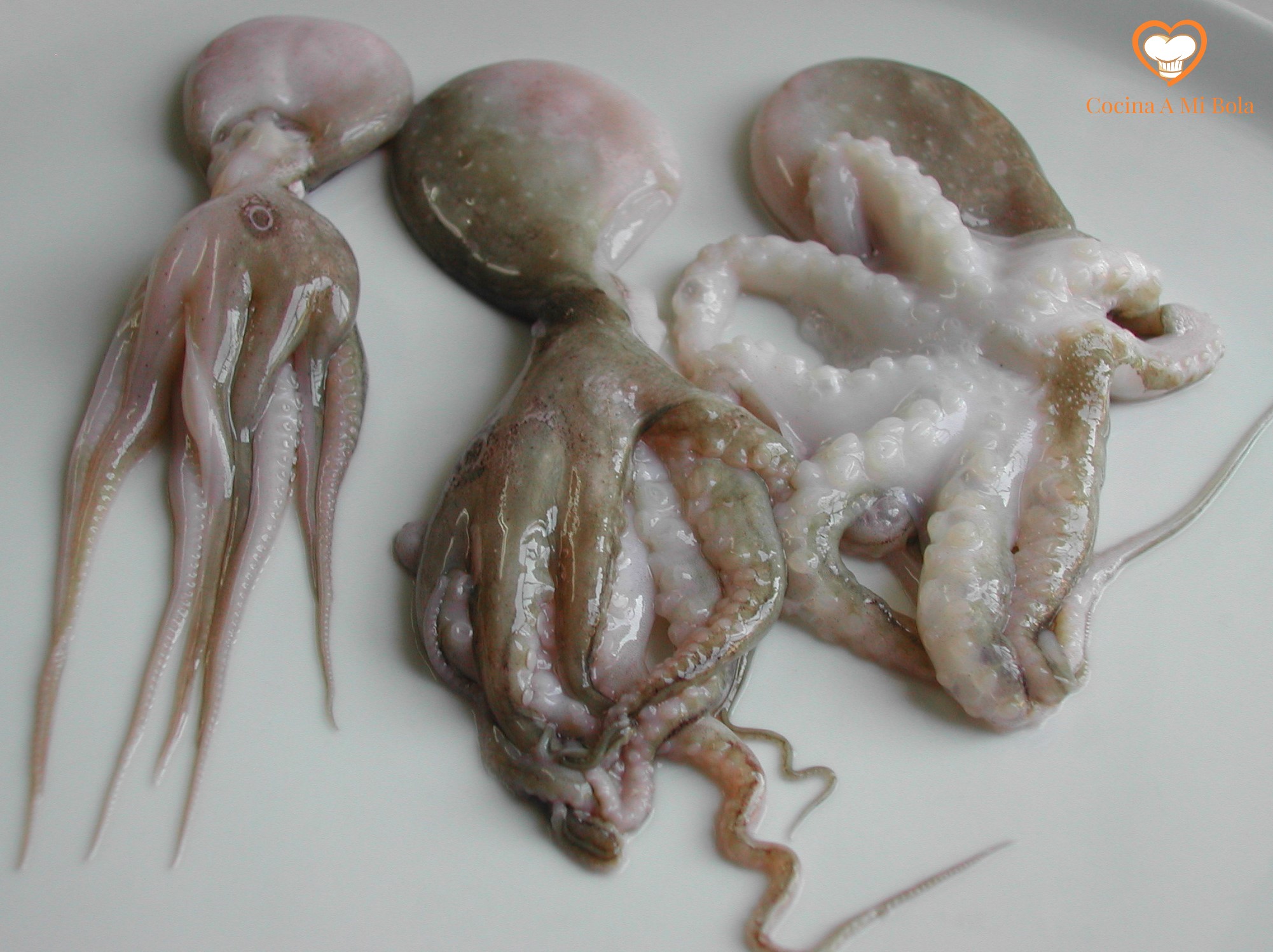 PREVIO.- Los pulpitos (eledone moschata) no deben confundirse con el pulpo común (octopus vulgaris). Su diferencia más ostensible es el tamaño, ya que aquellos no suelen pasar de 15 centímetros. Pero además diremos que son blancos, con una cabeza muy grande y con una sola hilera de ventosas en las patas. Por su parte, el pulpo común es mucho más sabroso y tiene dos hileras de ventosas en las patas. Y añado que es mucha menos cocción que los pequeños. El precio también es significativamente más reducido en estos pulpitos que vamos a usar en este plato.