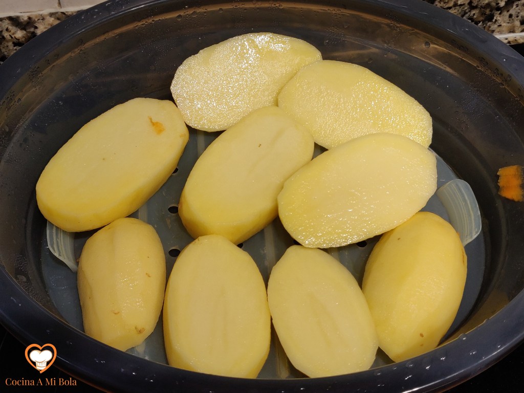 NOVENO.- la vuelta de vez en cuando. Unos 8 a10 minutos como máximo o menos aún si pones una tapa. Cuando lleve unos 7 minutos, corta por la mitad uno de los trozos para ver su punto. Si está hecho, aunque ligeramente rosado, es el momento de sacarlo. Si aún está crudo por el interior de la pieza, calcula el tiempo que te resta, pero no te excedas o se secará. Compra pan… .H2107