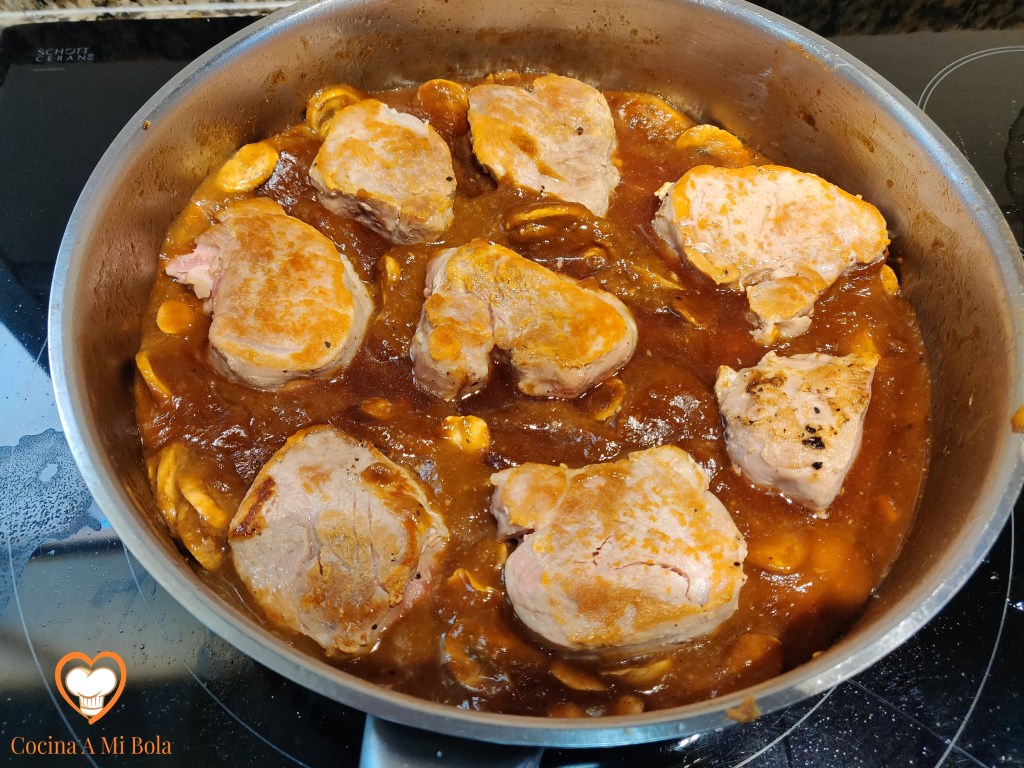 OCTAVO.- Y ya sólo queda colocar ordenadamente los trozos de carne en el fondo de la sartén, incrementar el hervor y darlos la vuelta de vez en cuando. Unos 8 a10 minutos como máximo o menos aún si pones una tapa.