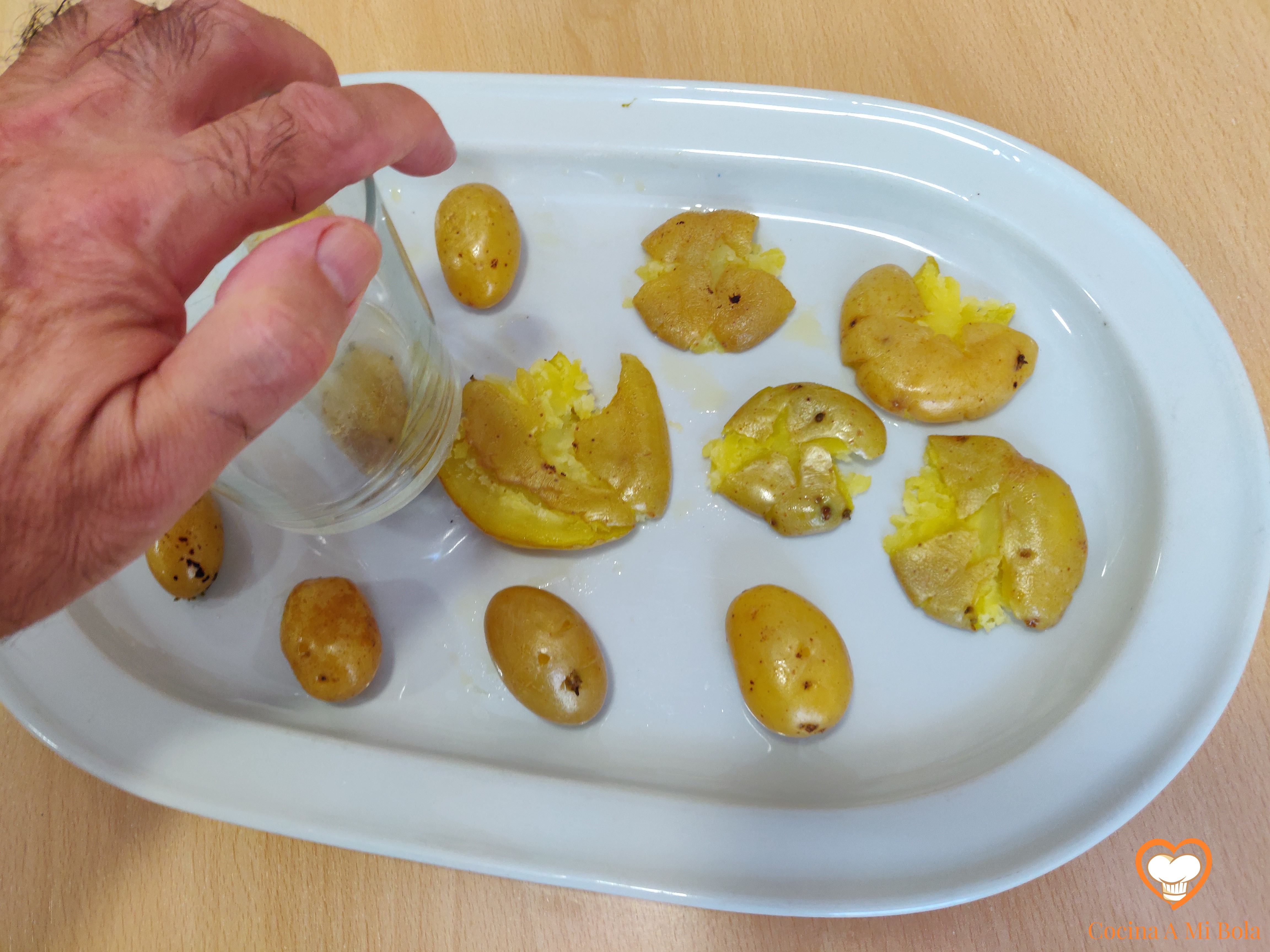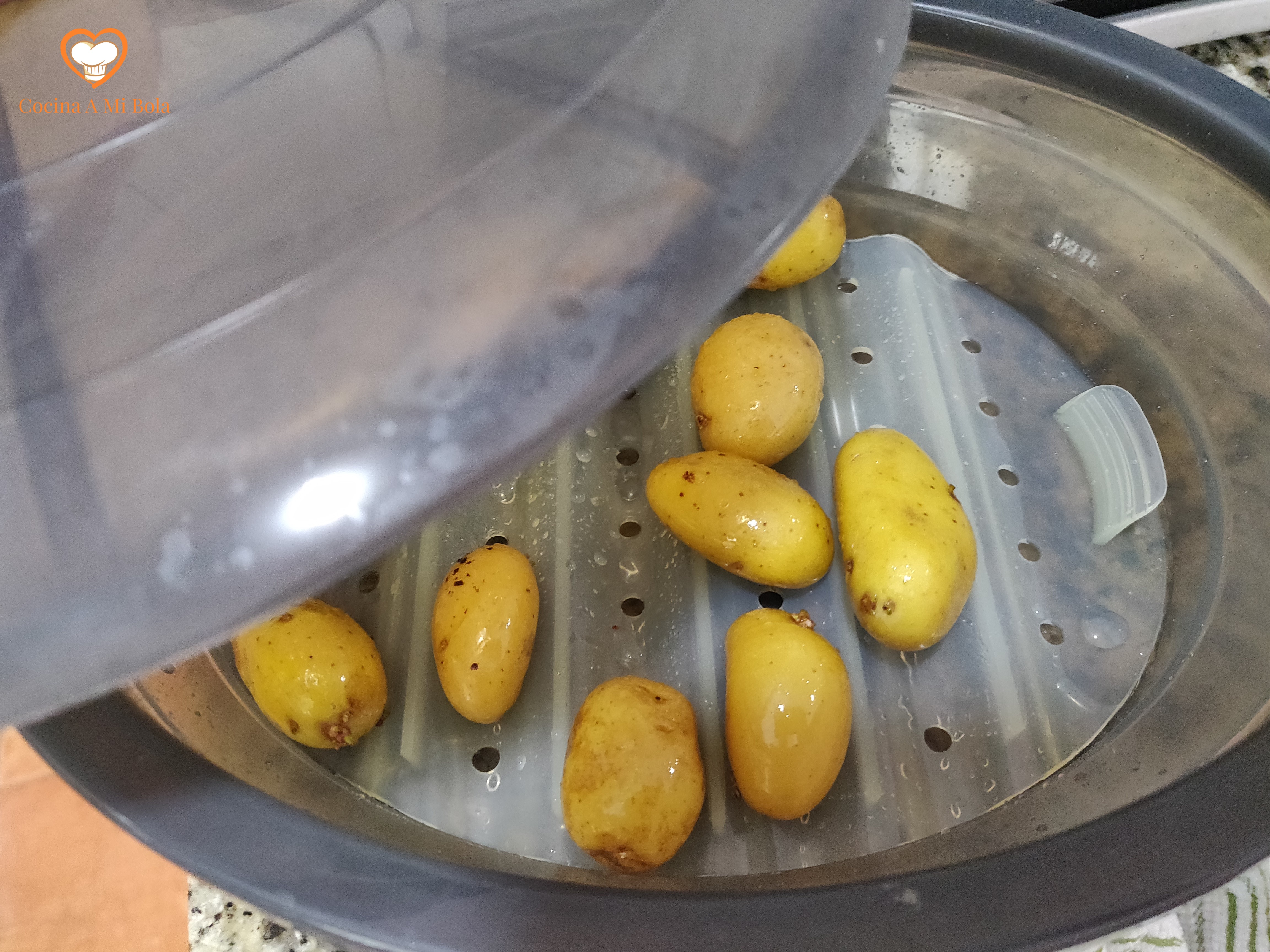 NOVENO.- la vuelta de vez en cuando. Unos 8 a10 minutos como máximo o menos aún si pones una tapa. Cuando lleve unos 7 minutos, corta por la mitad uno de los trozos para ver su punto. Si está hecho, aunque ligeramente rosado, es el momento de sacarlo. Si aún está crudo por el interior de la pieza, calcula el tiempo que te resta, pero no te excedas o se secará. Compra pan… .H2107