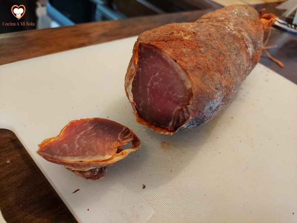 PREVIO.- Mis primeras experiencias han sido con una curación rápida y envolviendo la carne en una gasa tipo “bandiola”. El resultado es espectacular y lo recomiendo vivamente. Es un juego divertido con un riesgo mínimo y también es un reto muy entretenido que dura unas 6 semanas. Y si te ciñes al guión, el resultado es gratificante y muy esperanzador, porque desde ese instante estás pensando en elaborar el siguiente y en mejorarlo.