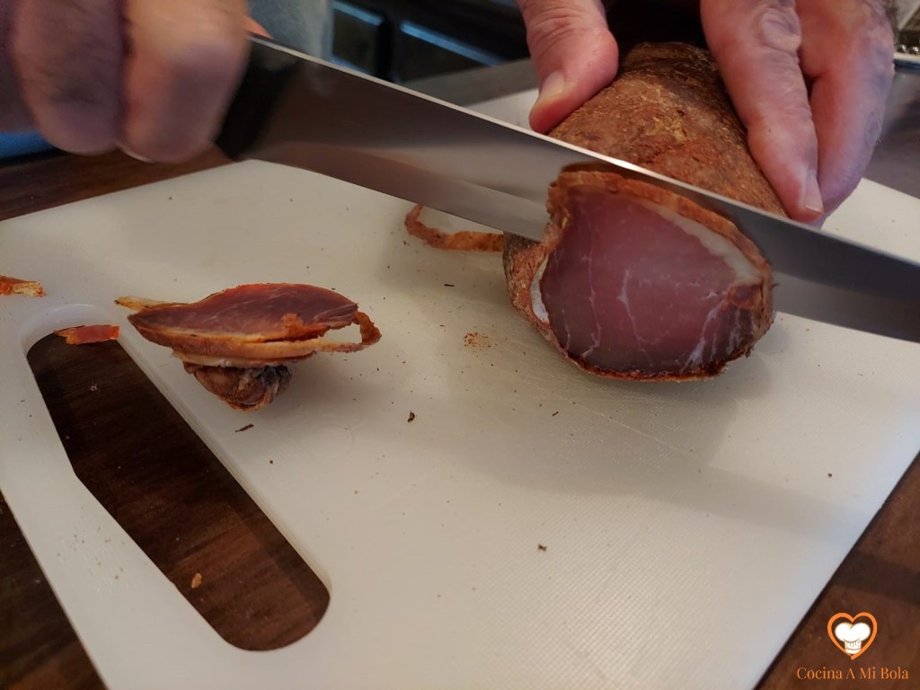 Debido a ello, voy a presentar como receta principal el lomo embuchado en su tripa, pero a continuación explicaré también la elaboración más sencilla de curación sin entripar.