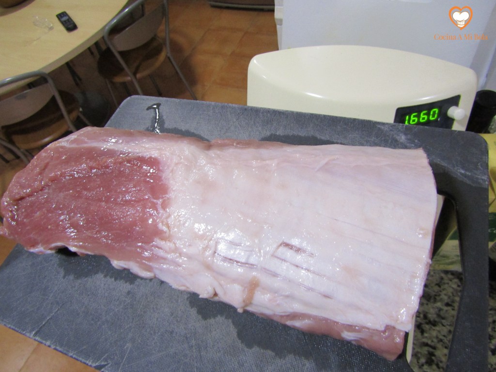 PREVIO.- El procedimiento de curar una carne en la nevera es bastante conocido en Latinoamérica como “Bandiola”. Allí lo hacen con otros tipos de carne. Nosotros lo vamos a hacer con el lomo de cerdo porque queda estupendamente y además, es barato.