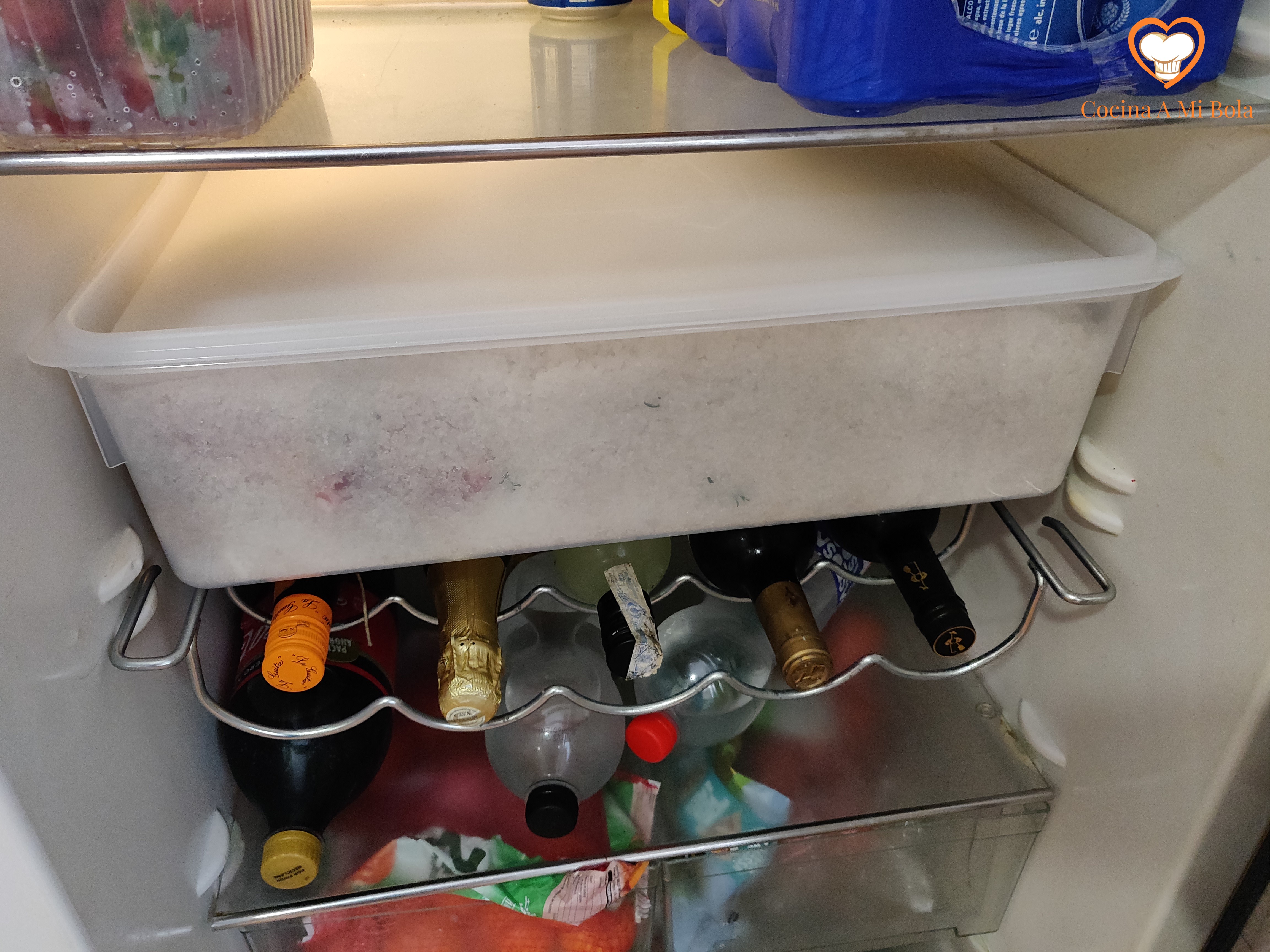 QUINTO.- Búscale un lugar vertical en la nevera para que esté colgada, si es posible. Si no, colócala horizontalmente sobre dos platitos de café puestas boca abajo para que la superficie de apoyo sea la menor posible. En este caso, tendrás que girarlo cada día para que no recaiga en los mismos puntos y circule el aire.