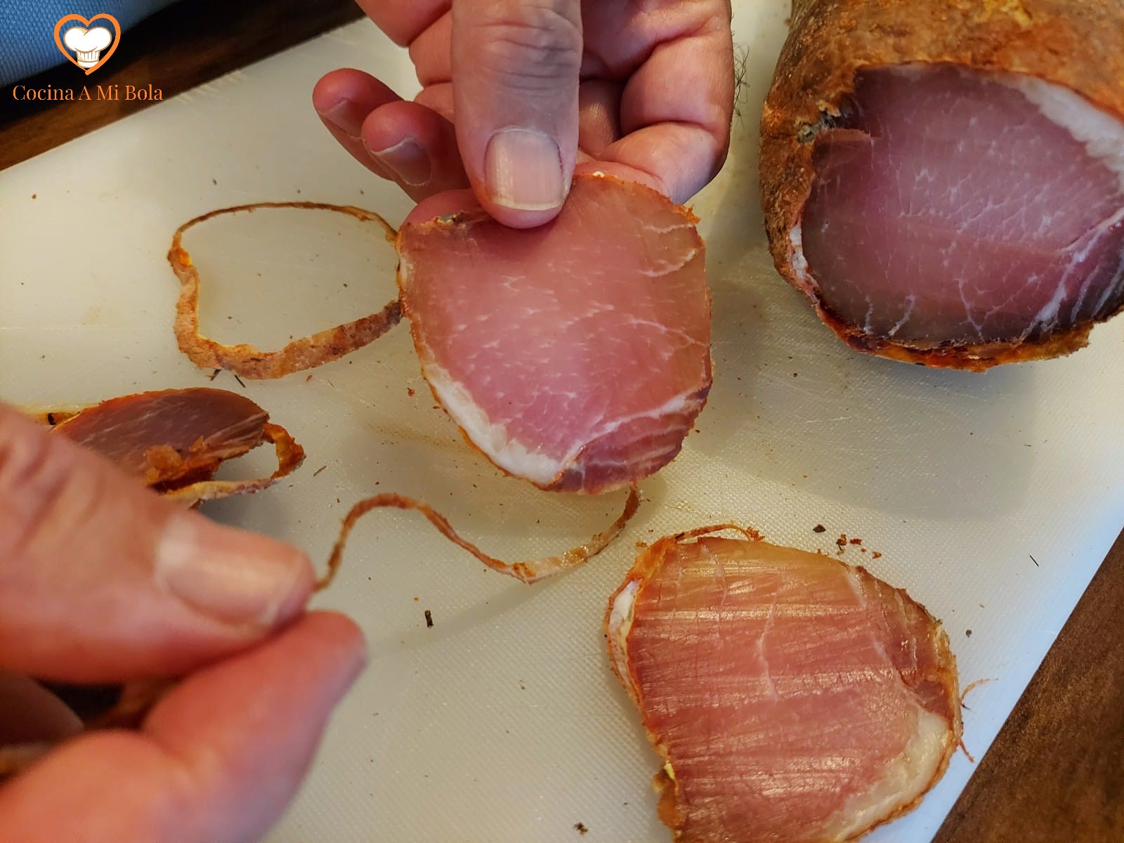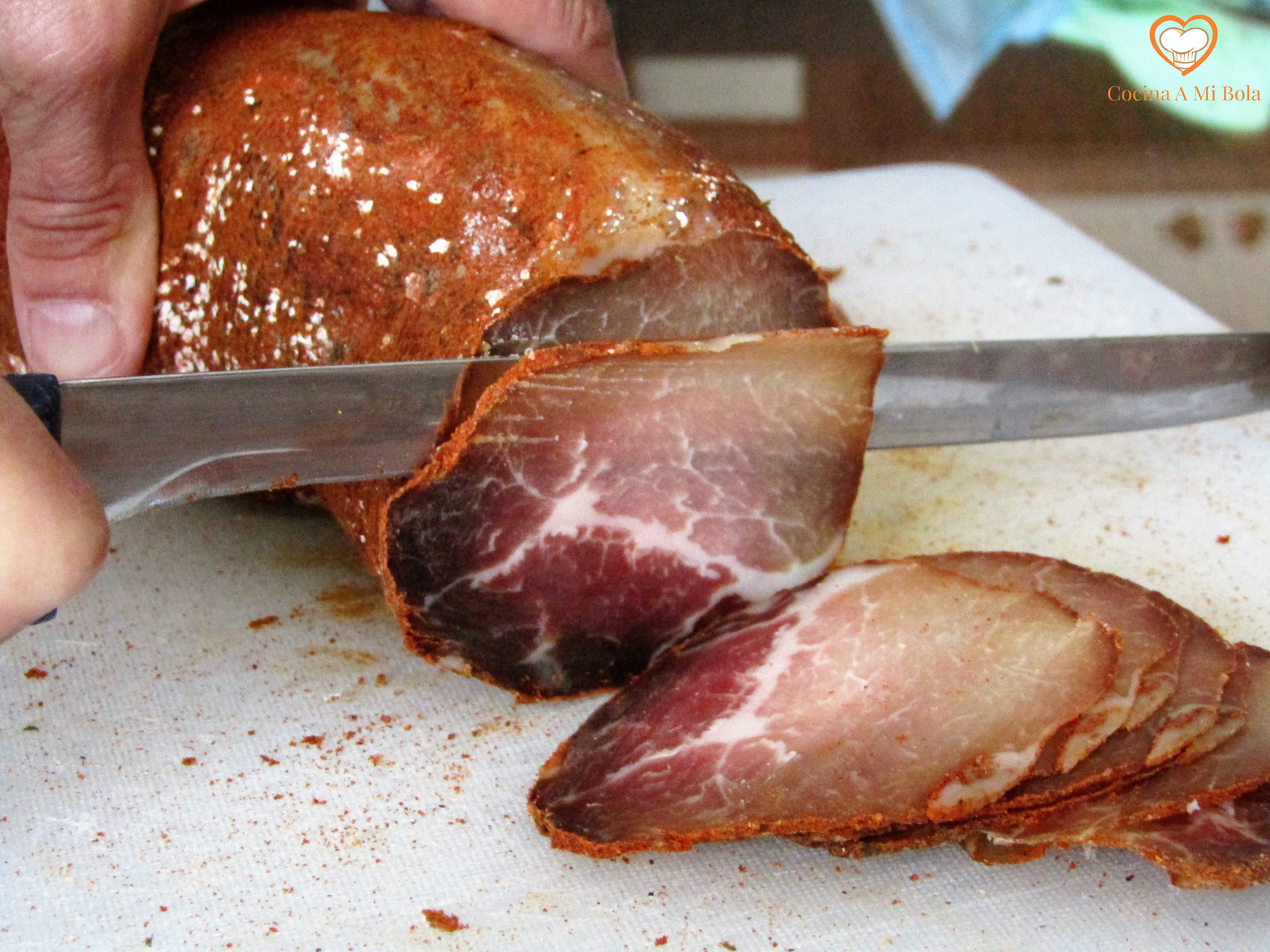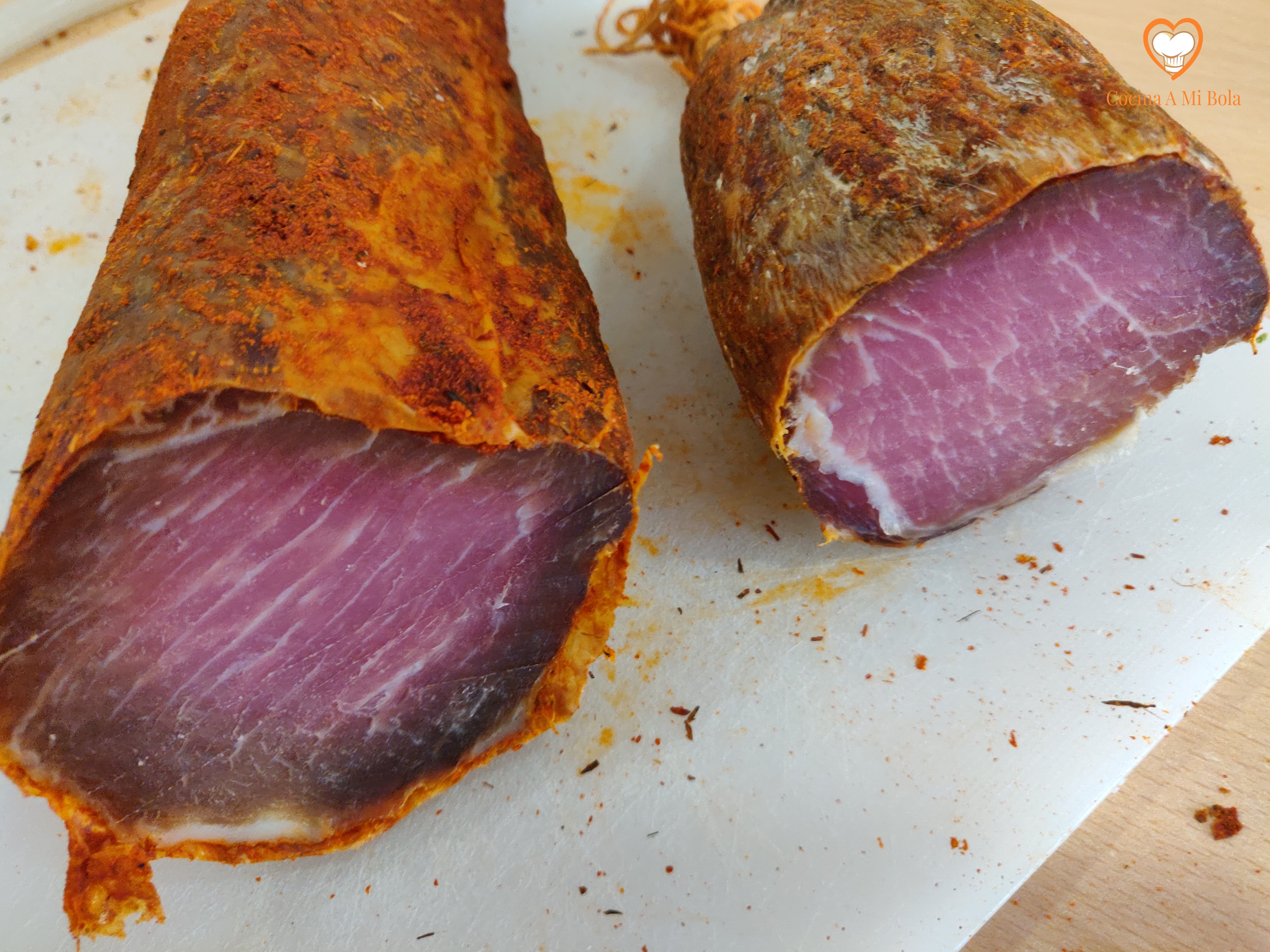 Debido a ello, voy a presentar como receta principal el lomo embuchado en su tripa, pero a continuación explicaré también la elaboración más sencilla de curación sin entripar.