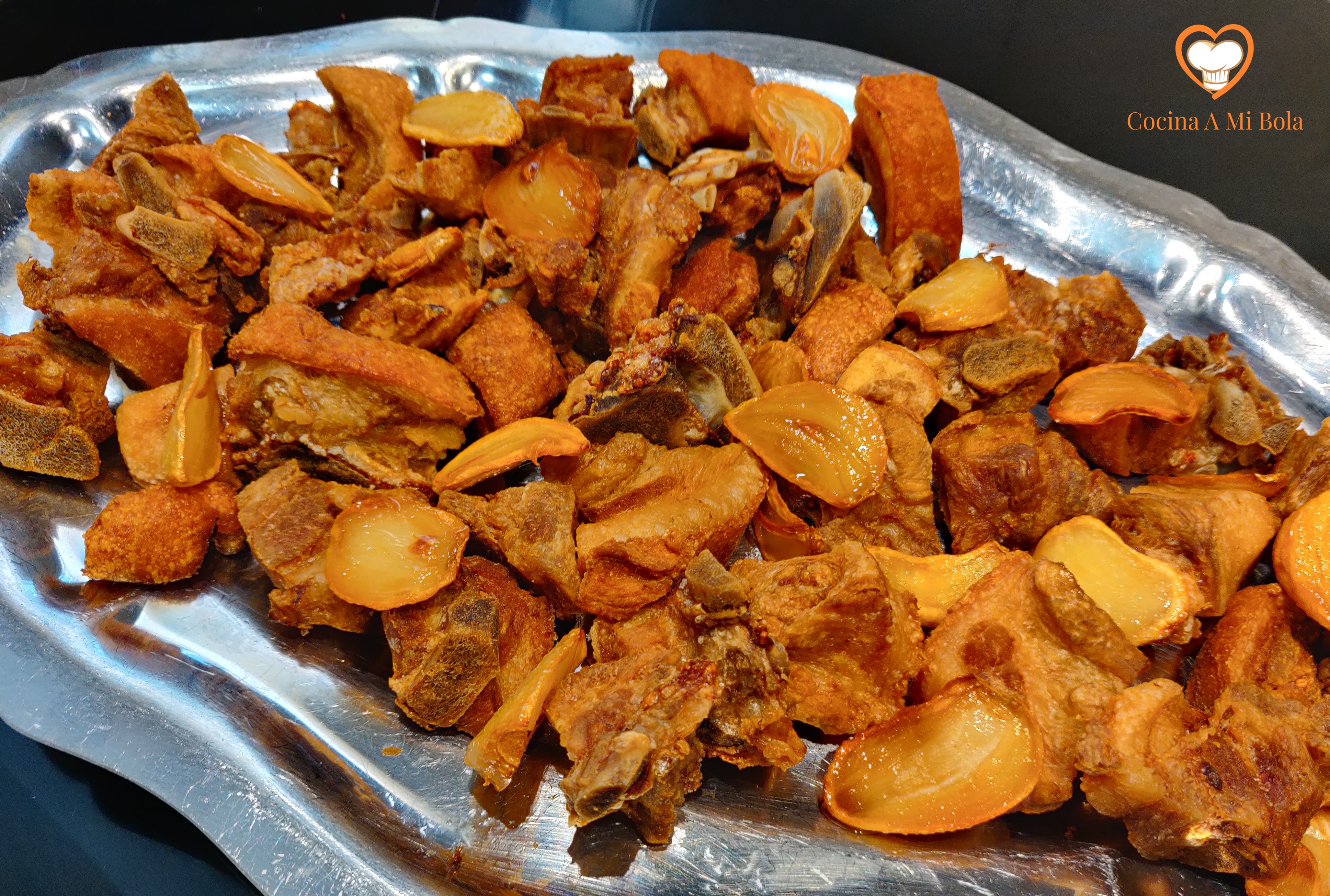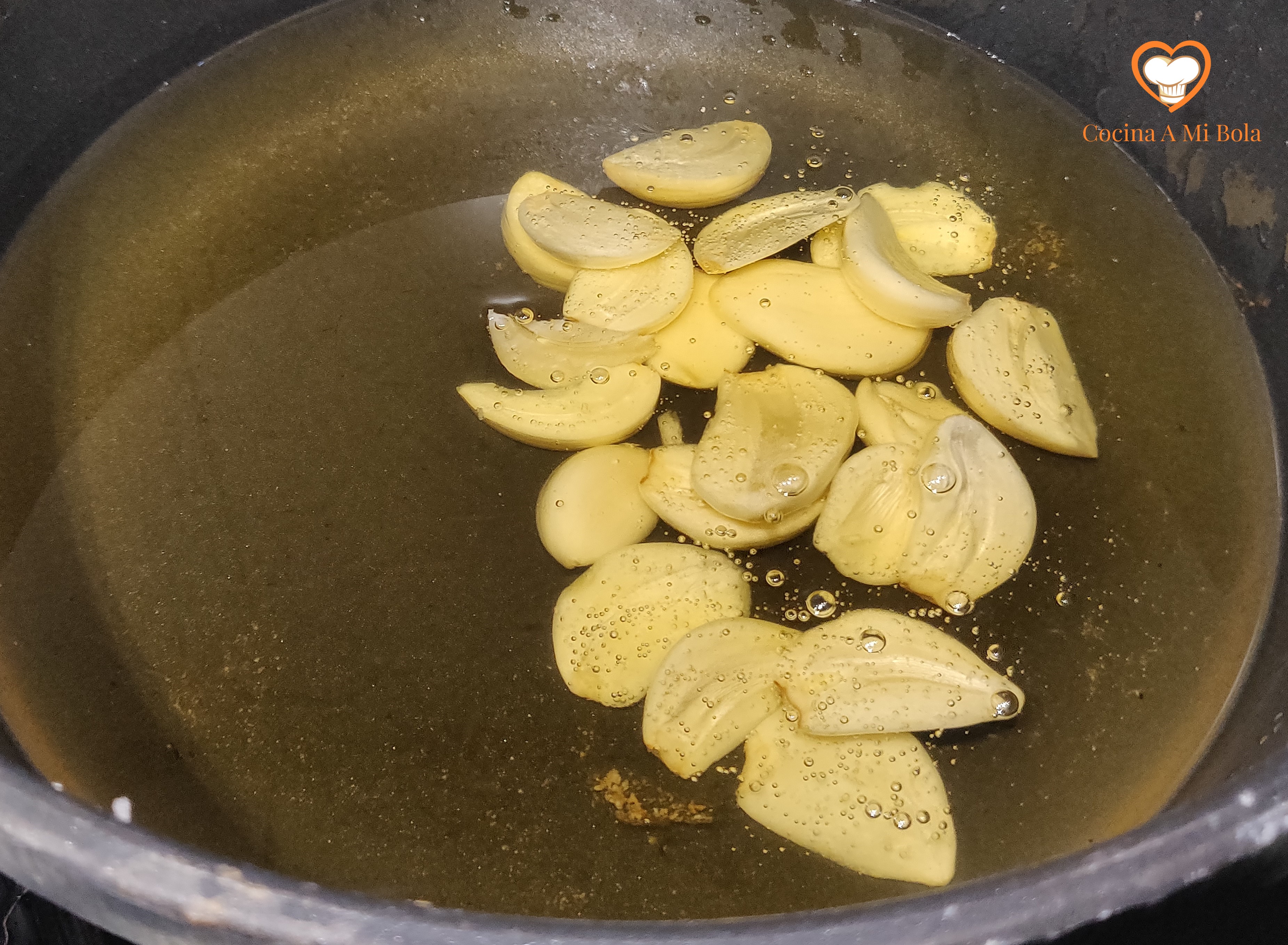 CUARTO.- Pelamos y picamos los dientes de ajo y los frotamos con las manos por toda la pieza. Lo volvemos a guardar en el recipiente tapado y éste a la nevera durante 2 horas.