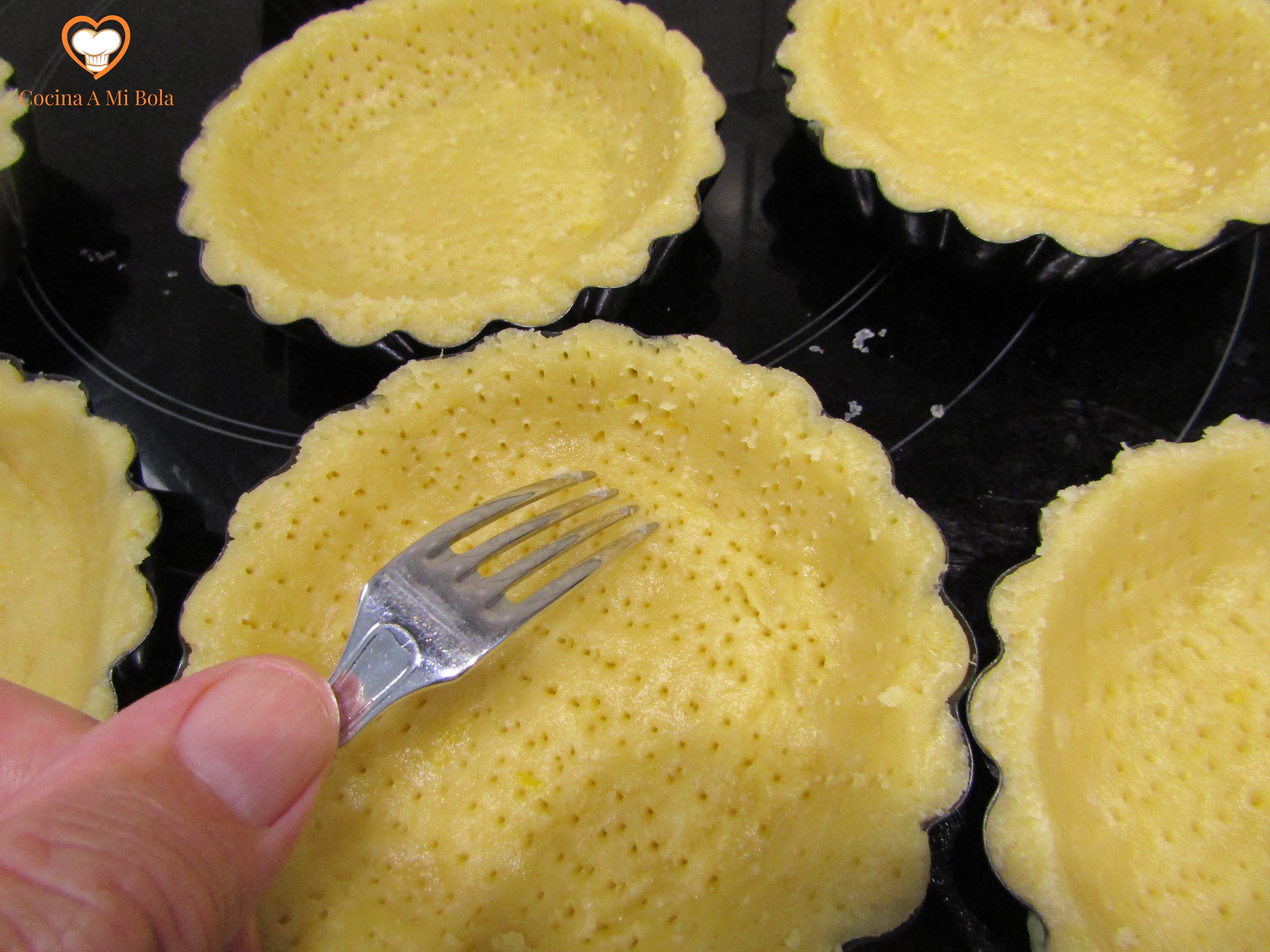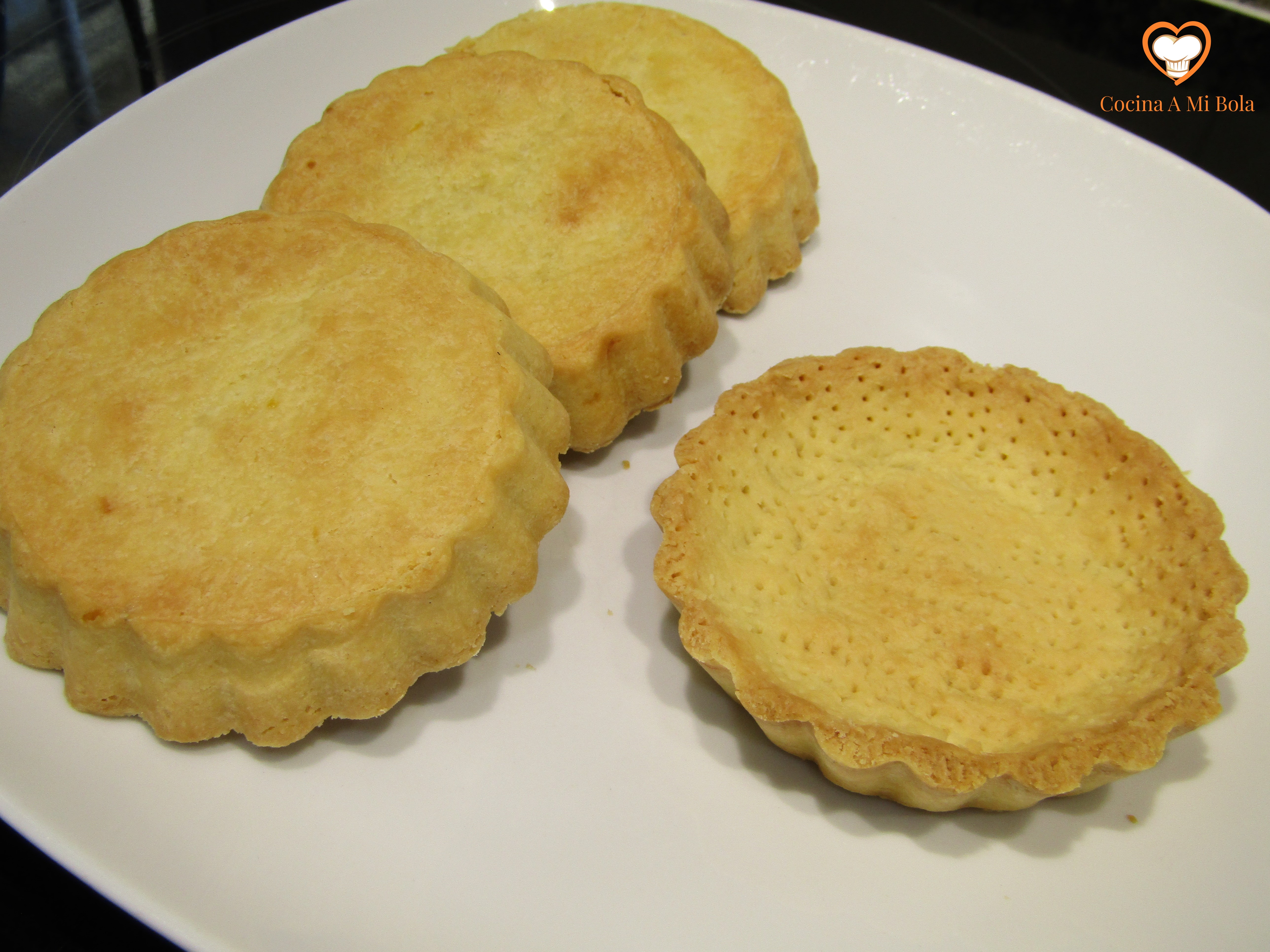 INGREDIENTES: Para 8 tartaletas de 8 cm (fondo): 225 grs mantequilla sin sal, 390 gr harina de trigo, 3 yemas de huevo, ralladura de medio limón, PARA SALADOS: 3 cucharaditas de azúcar, 1 cucharadita de sal. PARA DULCES: 4 cucharadas de azúcar y eliminar la sal.