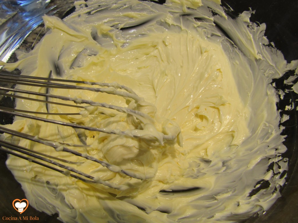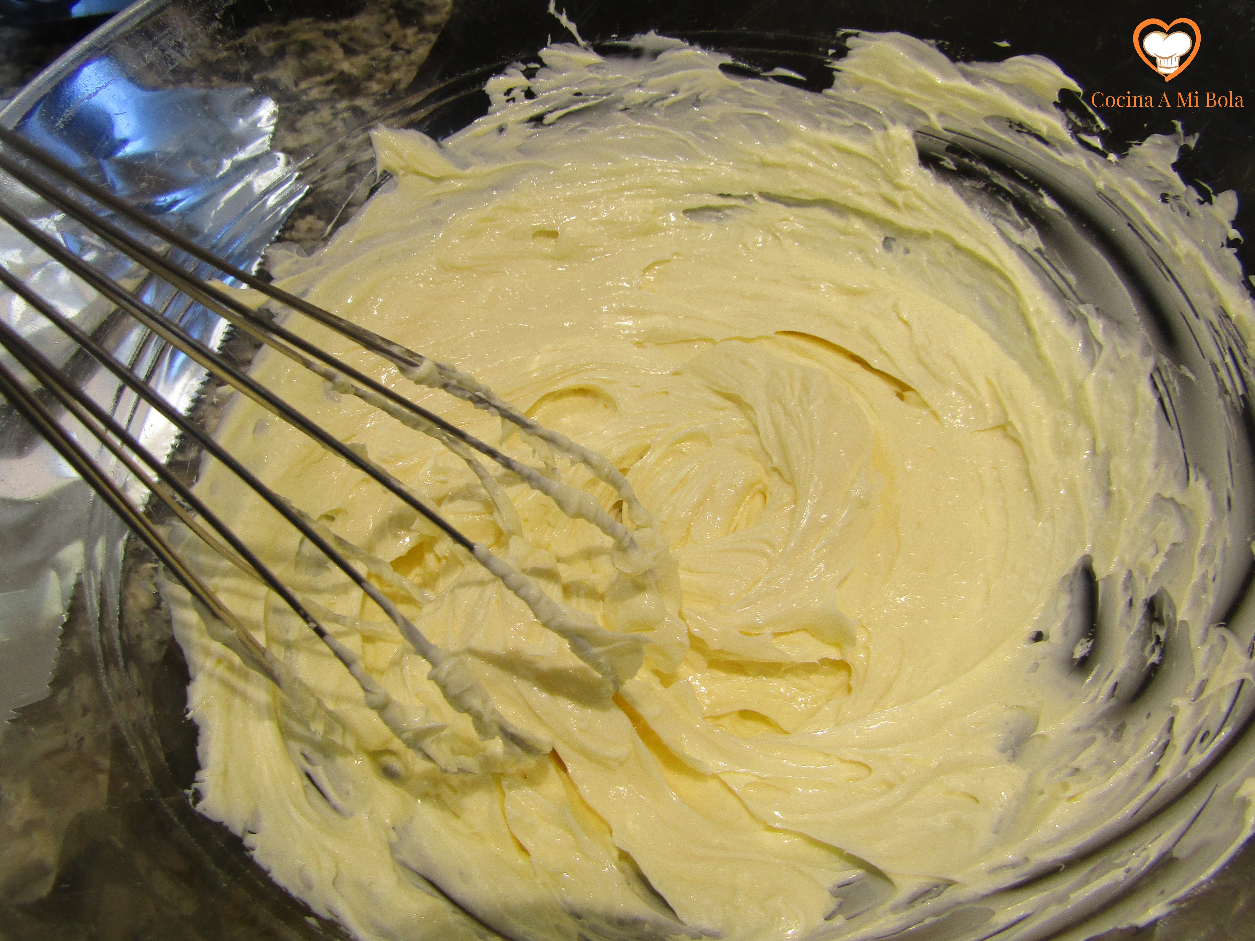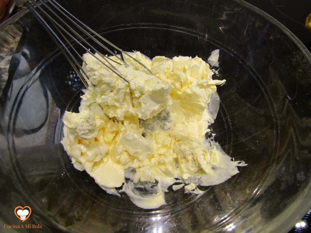 PRIMERO.- Saca la mantequilla de la nevera y una vez que alcance la temperatura ambiente, la moveremos con una varilla o con una espátula hasta conseguir la textura conocida como “punto pomada”. Cuando lo consigas (sólo hay que removerla un ratito), entenderás por qué se llama “pomada”.