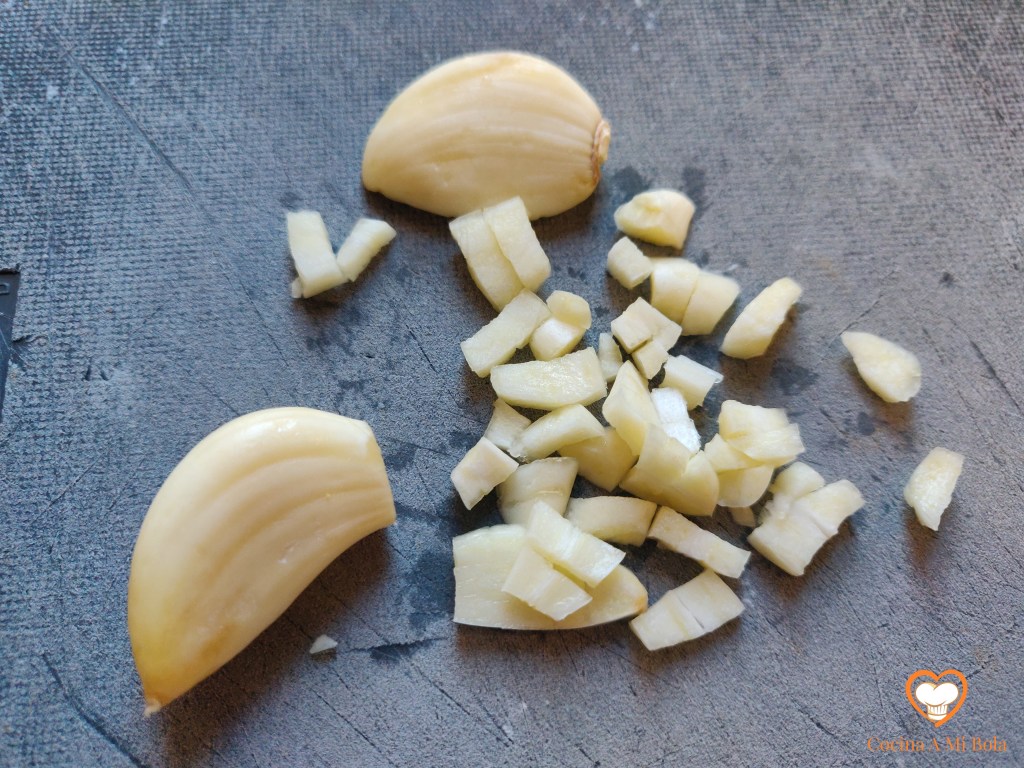 PRIMERO.- Como te podrás imaginar, no hay muchas instrucciones que dar. Vierte los vinos y el aceite en un vaso batidor Pica bien los ajos y échalos también junto al cilantro que, si no dispones de él, puedes sustituirlo por perejil fresco. Ponle tabasco al gusto si es para pollo o cerdo, pero no te excedas. Si es ternera, puedes incluso prescindir de él.