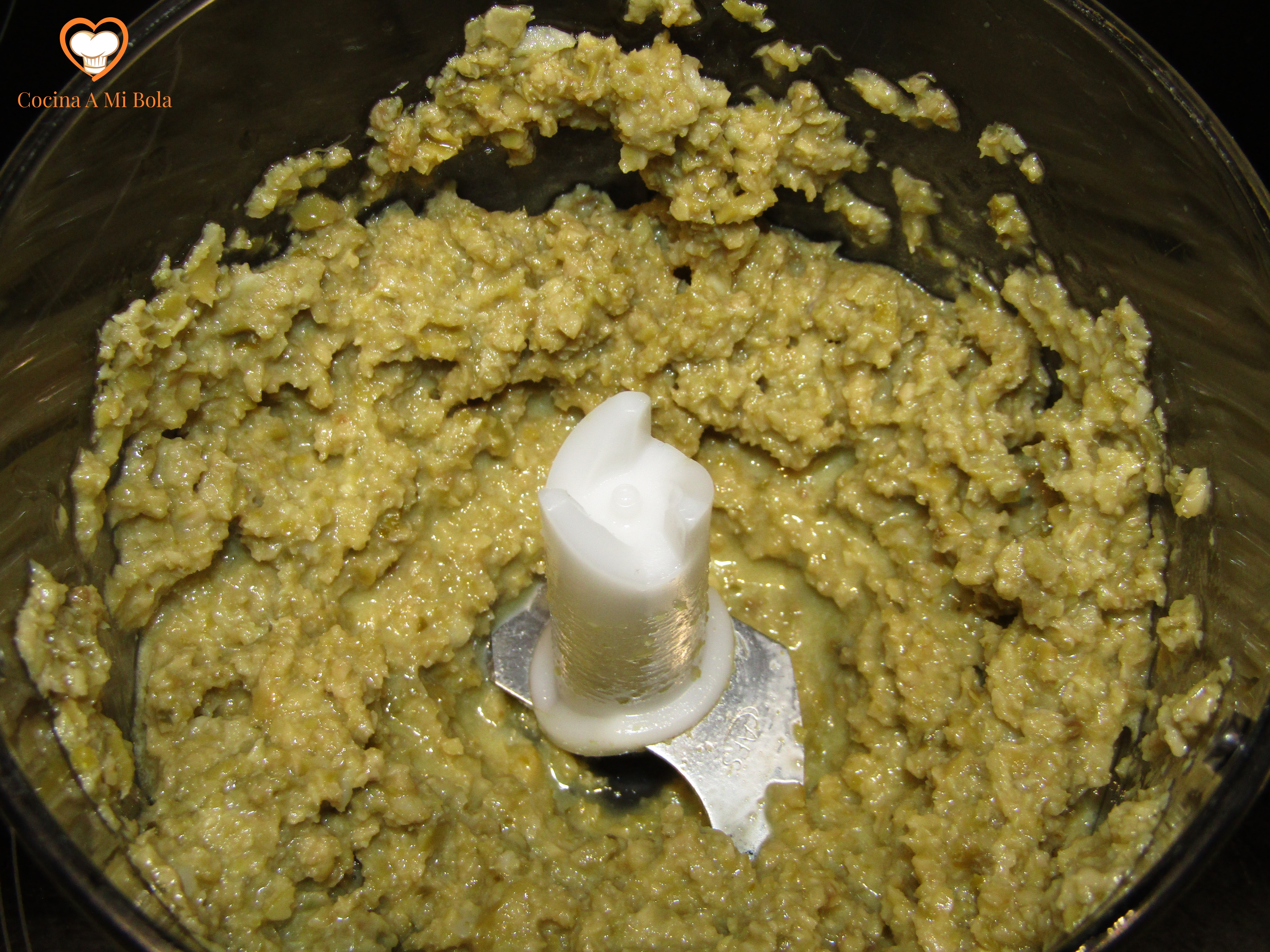 SEGUNDO.- Para elaborar la olivada verde deshuesa 150 gr aceitunas verdes aloreñas aliñadas, prénsalas entre dos platos para extraer y eliminar la mayor cantidad de jugo posible y échalas al vaso batidor con 1 diente de ajo, 40 alcaparras (también prensadas), 1 ramita de albahaca fresca, 2 anchoas, el zumo de ½ limón y dos cucharadas de aceite de oliva virgen extra. Tritura hasta que emulsione en una pasta gruesa. En este link tienes la receta.