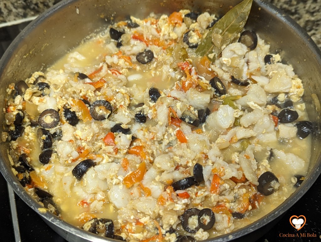 OCTAVO.- Incorpórala bien escurrida a la cazuela del pescado y añade también el jugo del pimiento, que teníamos reservado, mezcla con cuidado y ya lo tienes listo para servir. H2303