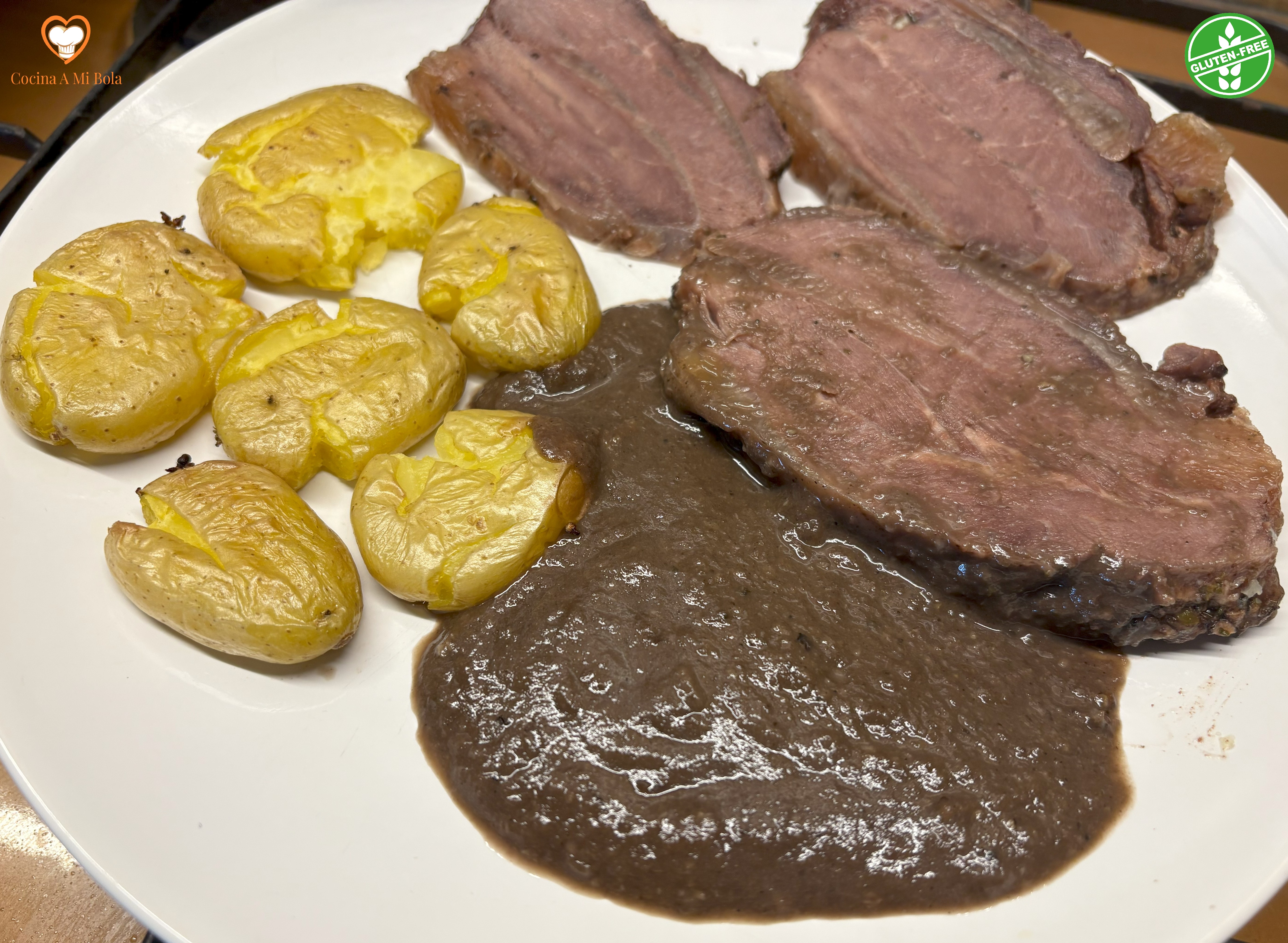 El morcillo, como le ocurre al roastbeef, puede tomarse templado e incluso frío, pero si lo prefieres algo más caliente, lo mejor es calentar mucho la salsa en vez de secar la carne. Este plato es perfectamente apto para personas