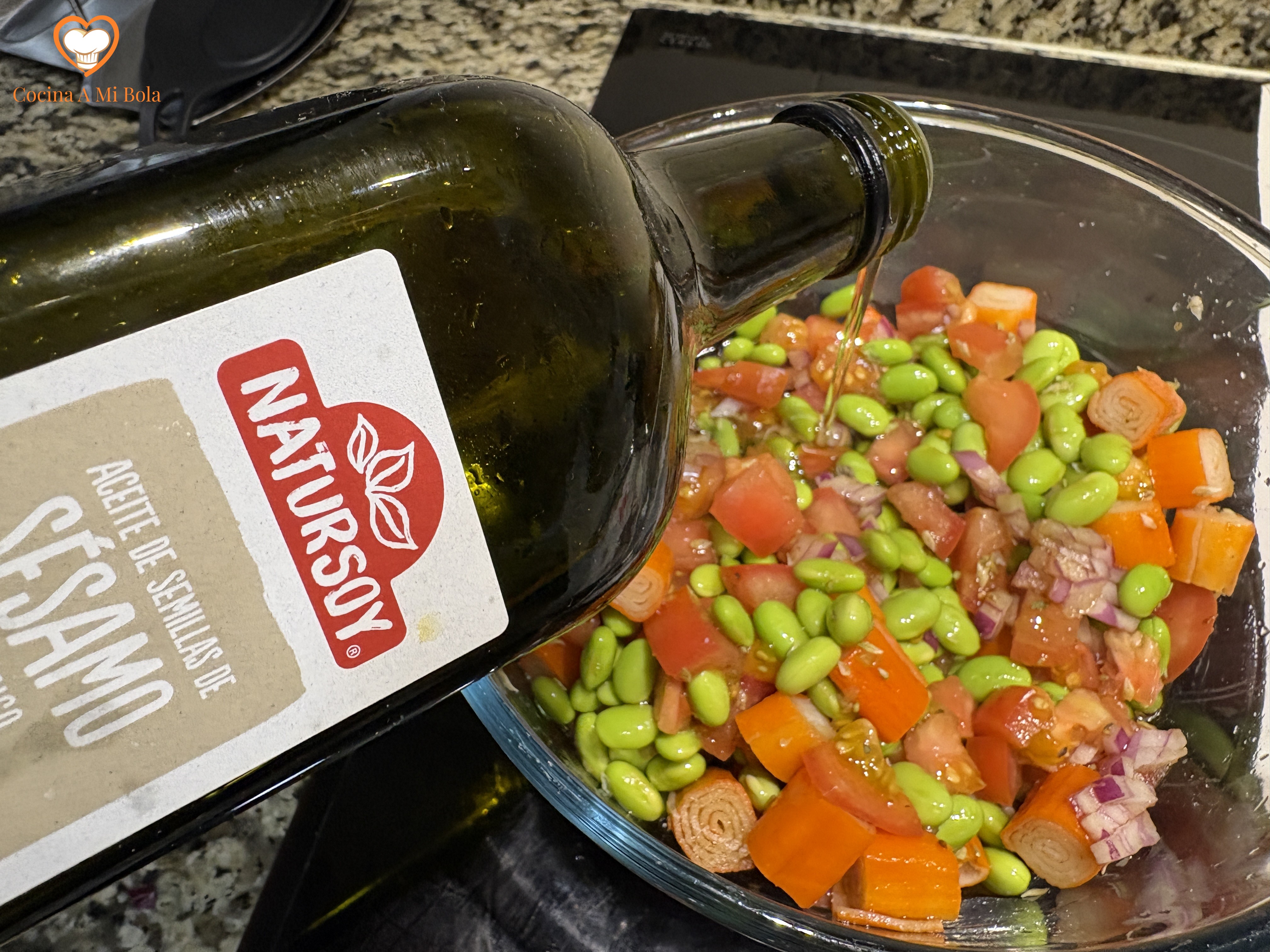 gluten, aceite de sésamo, orégano, vinagre de manzana y sal ahumada.