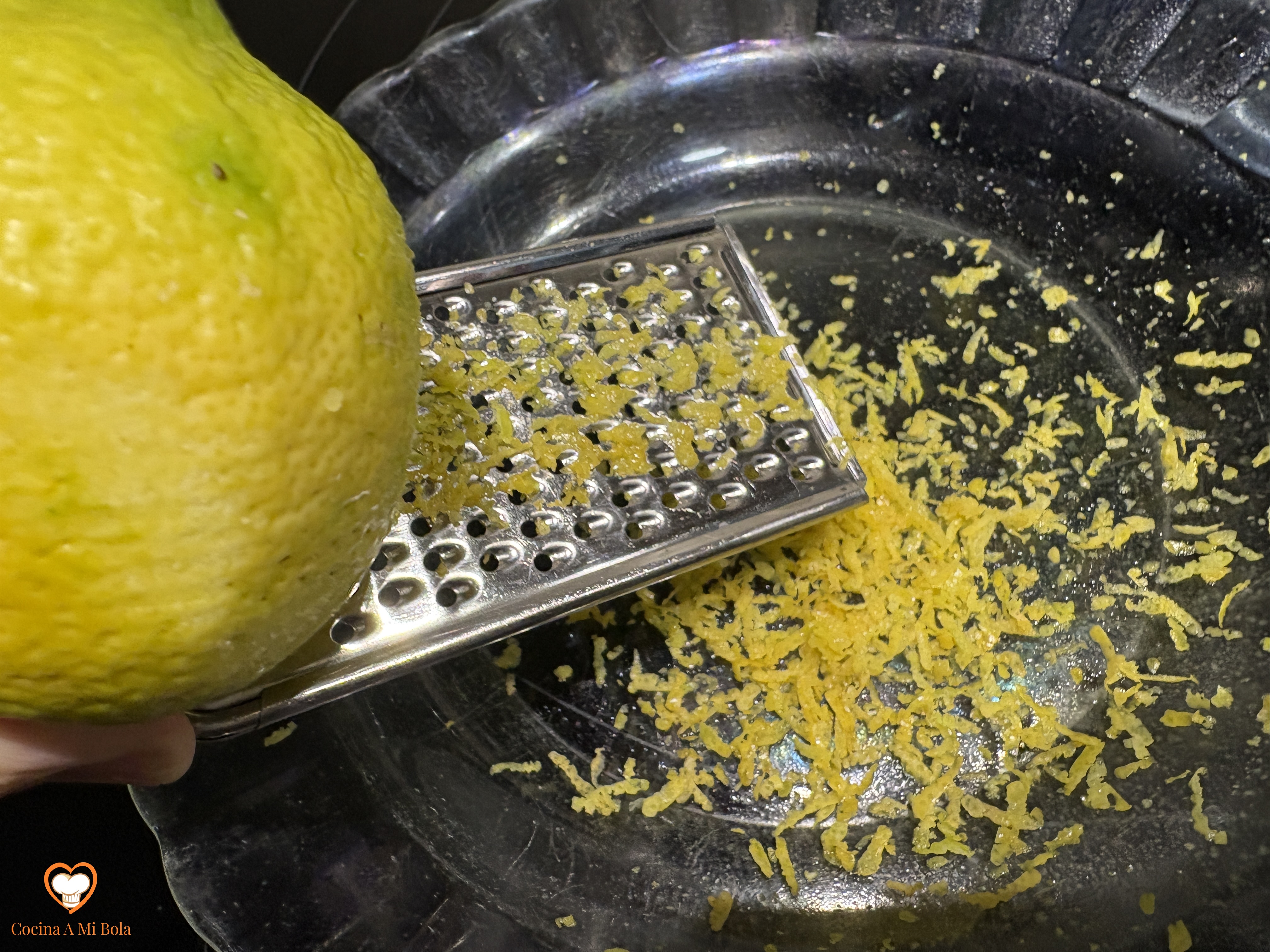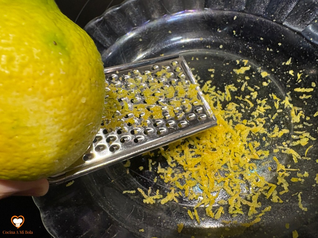 PRIMERO.- Lavar bien los limones y rallarlos de un modo muy ligero de forma que evitemos la piel blanca, sino sólo la amarilla, que es muy fina. Reservar.